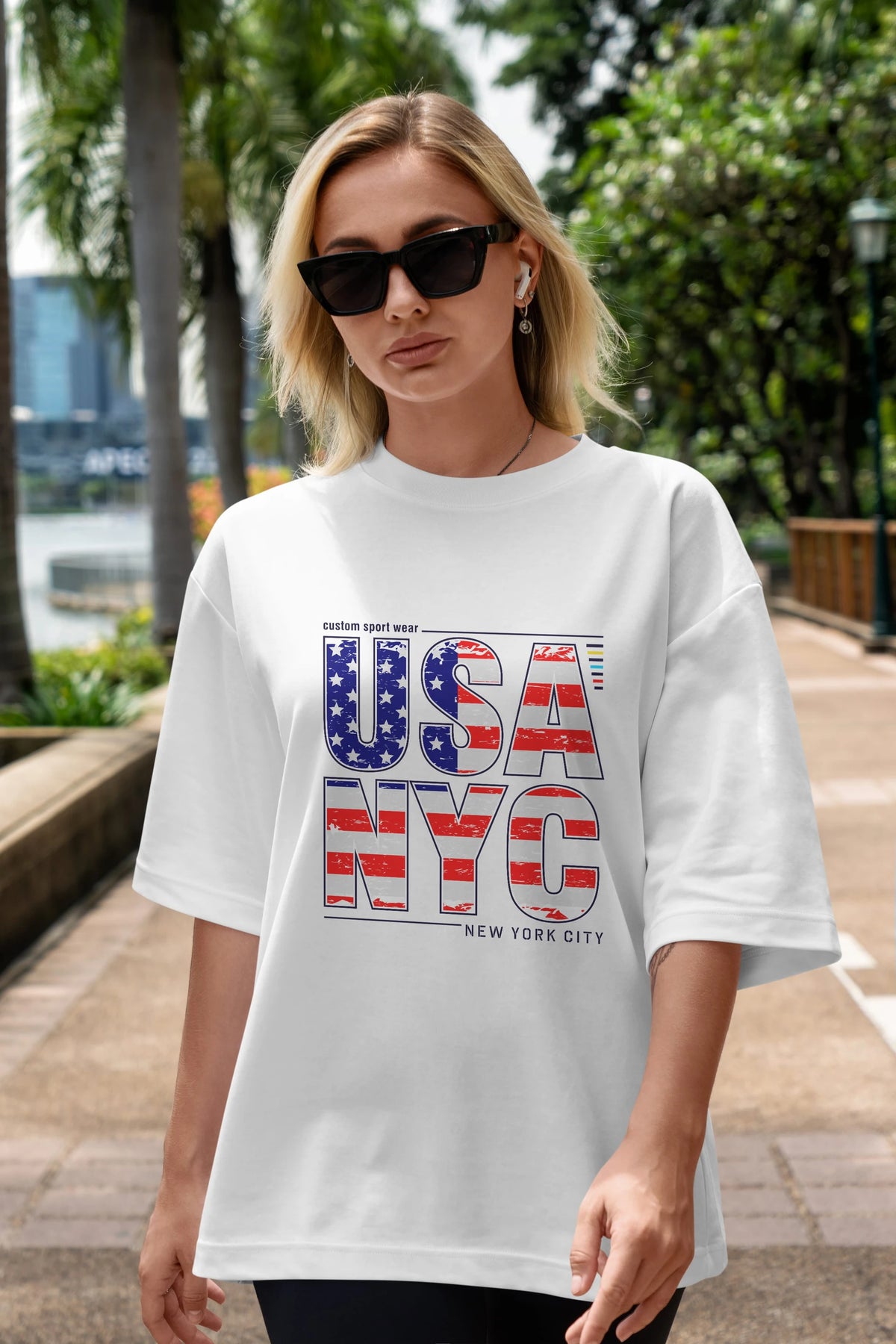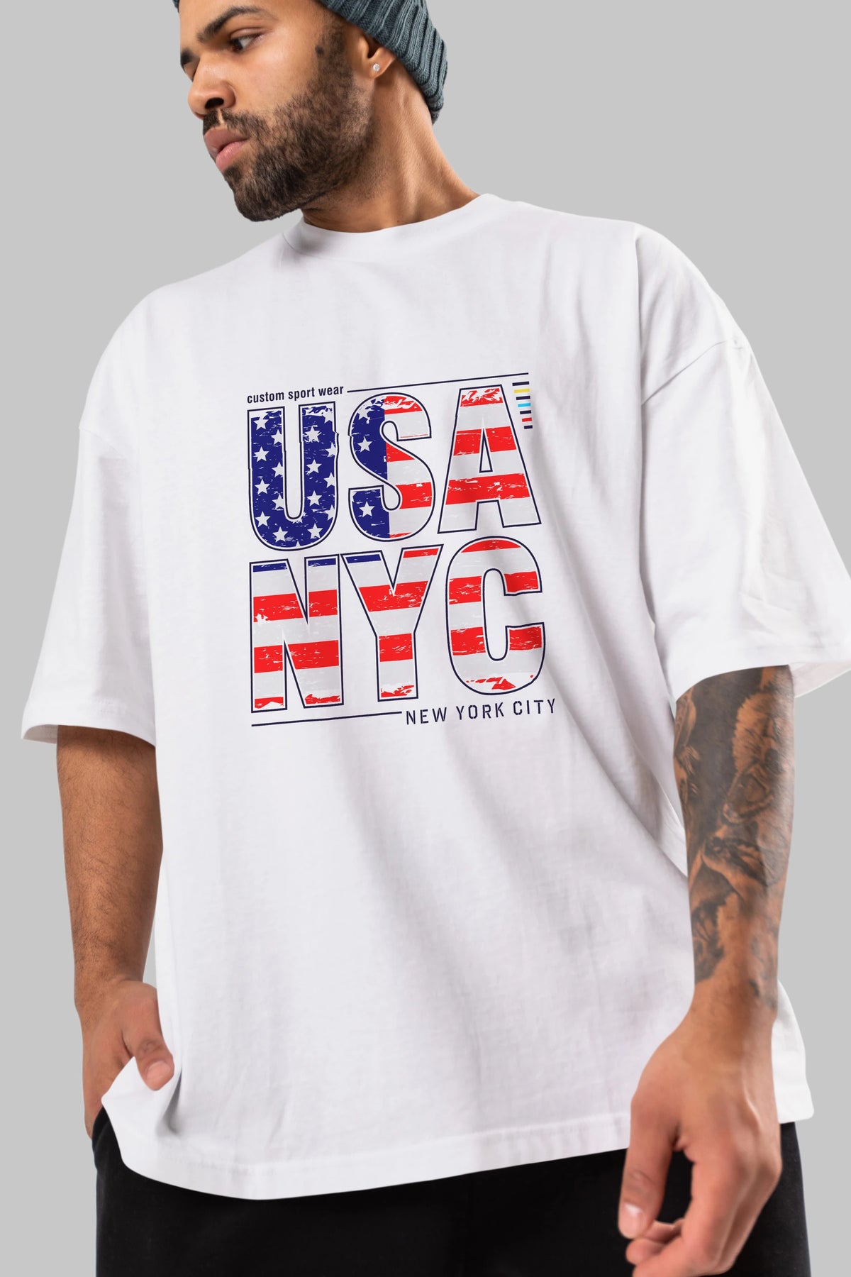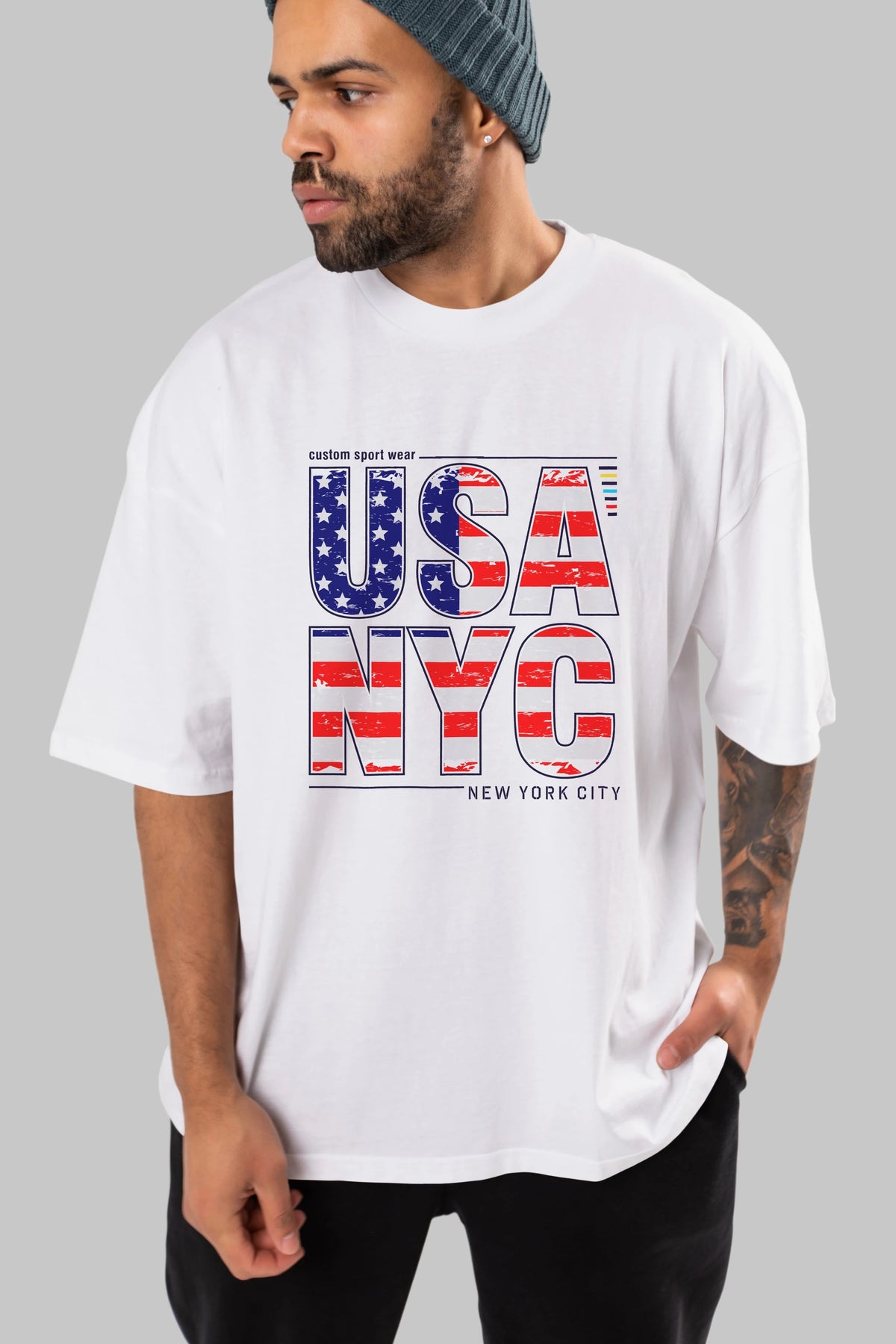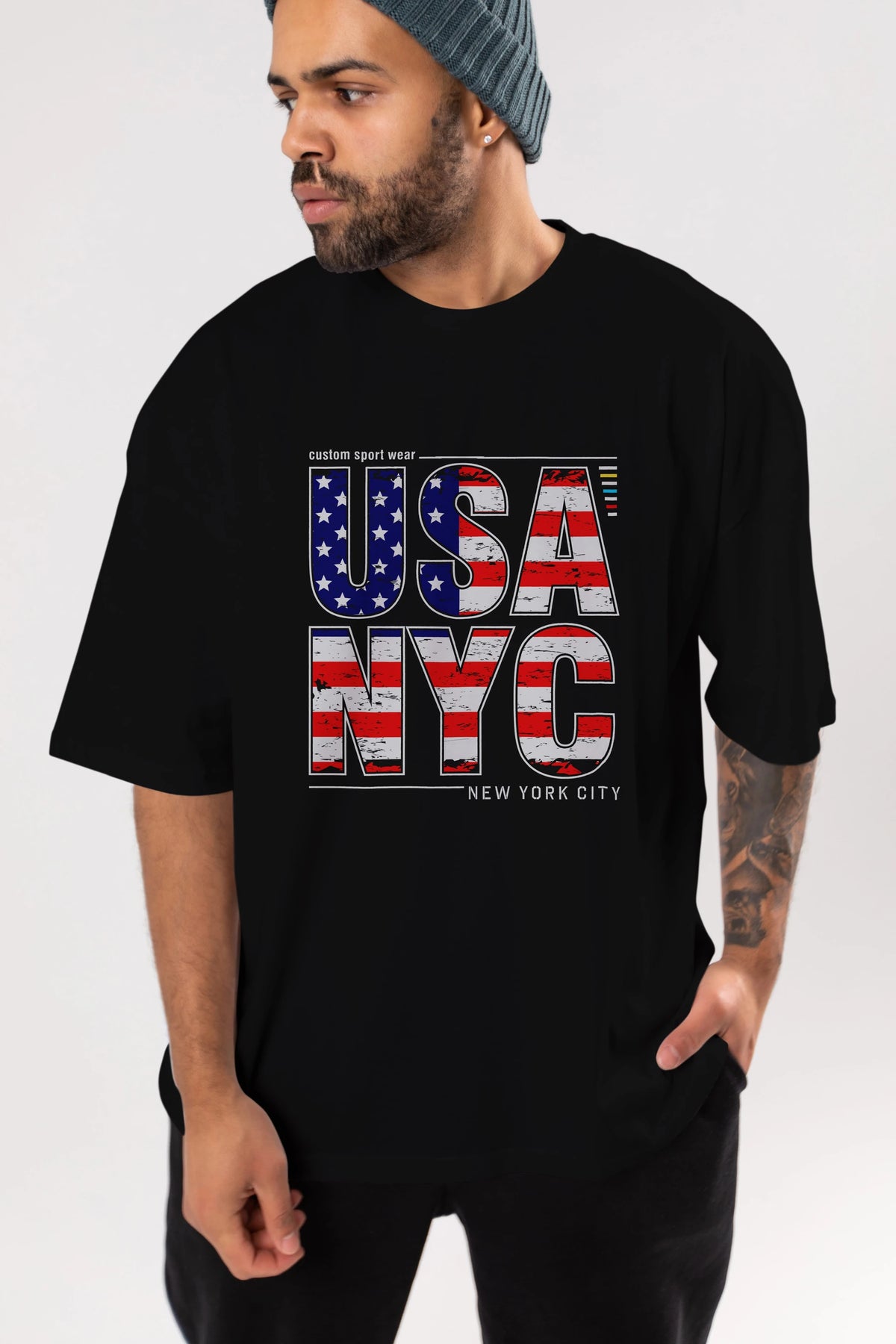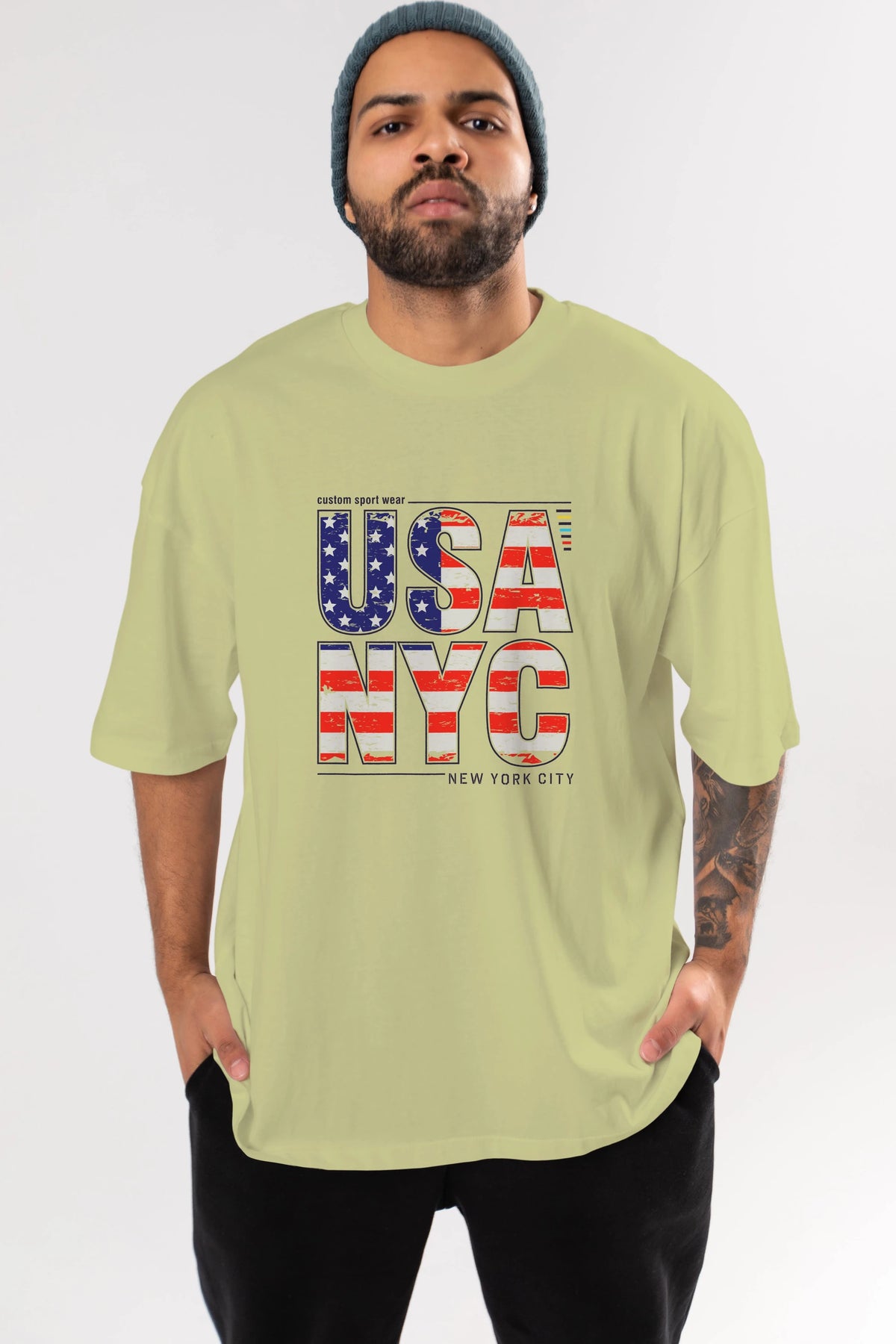 Usa NYC Ön Baskılı Oversize t-shirt Erkek Kadın Unisex
