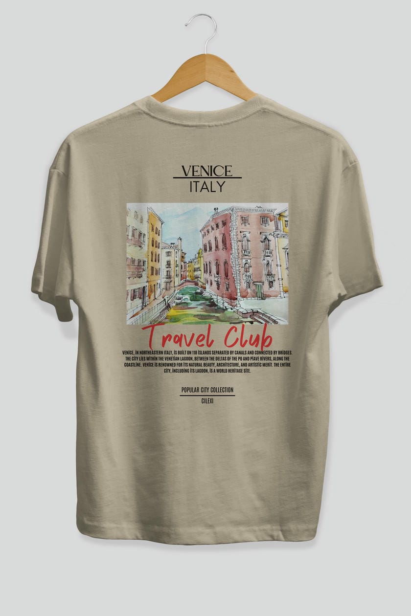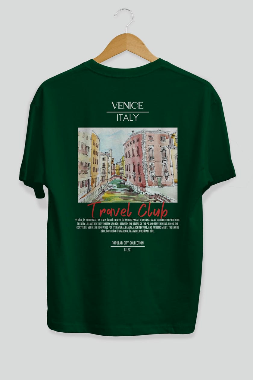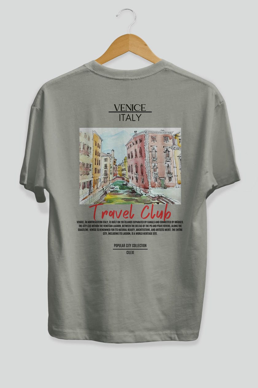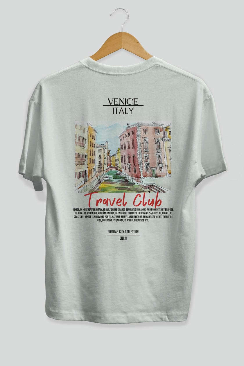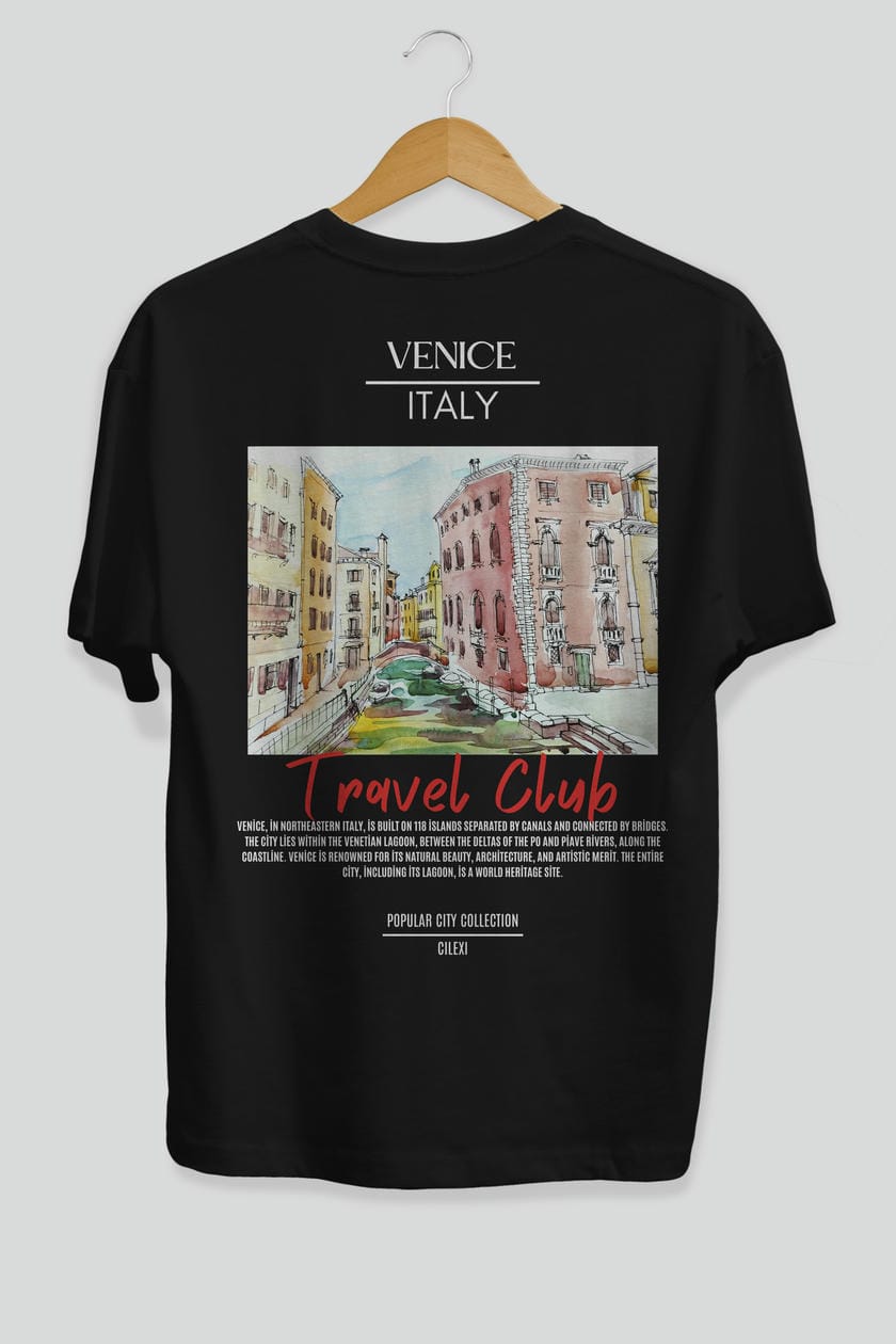 Venice İtaly Arka Baskılı Oversize t-shirt Erkek Kadın Pamuk Bisiklet Yaka tişort
