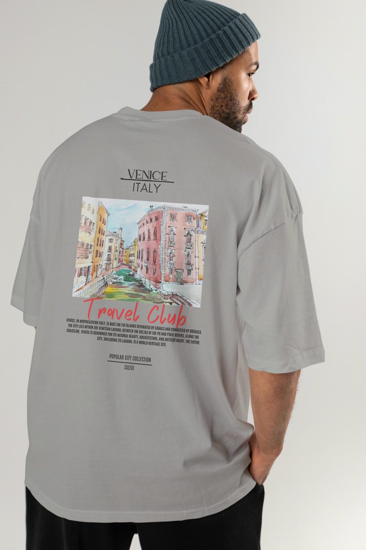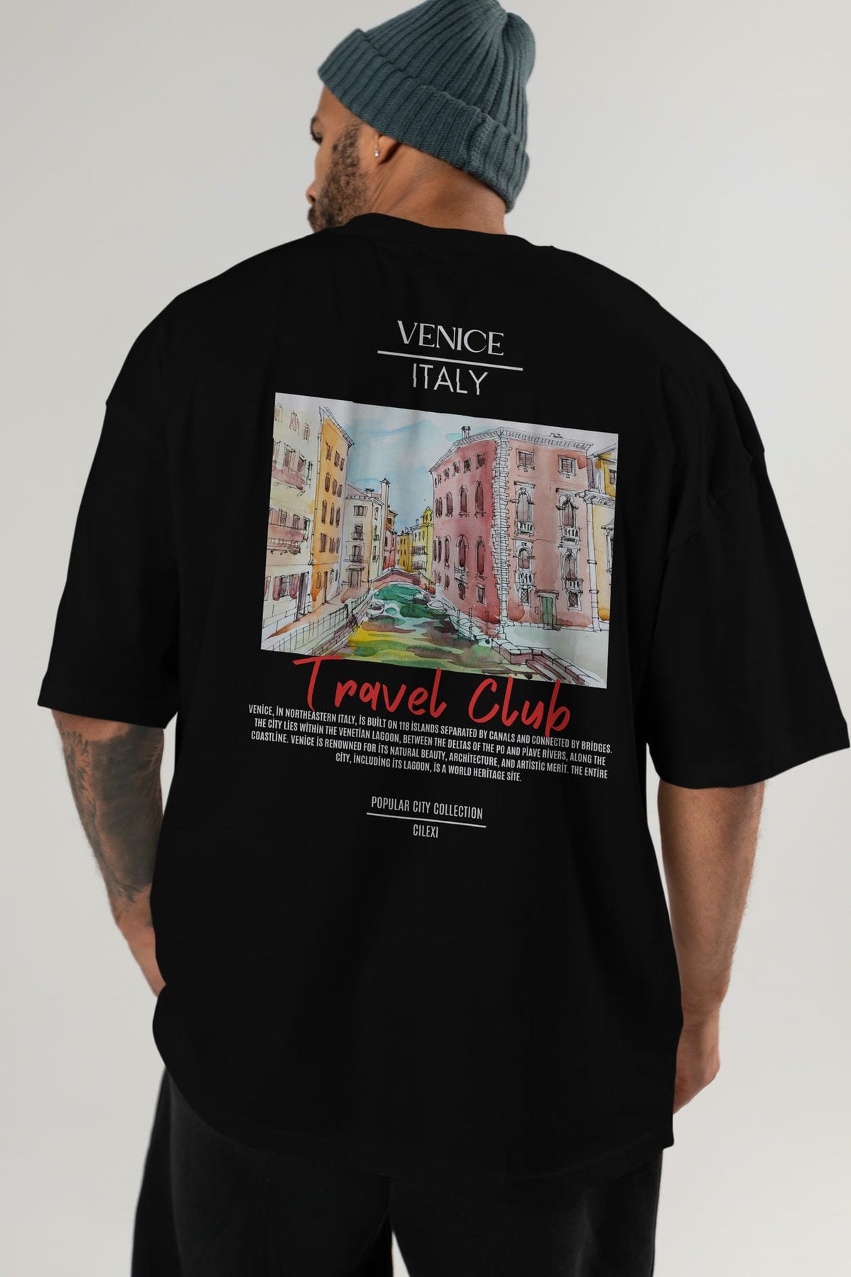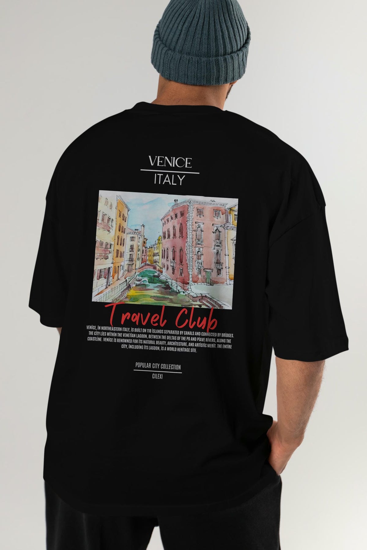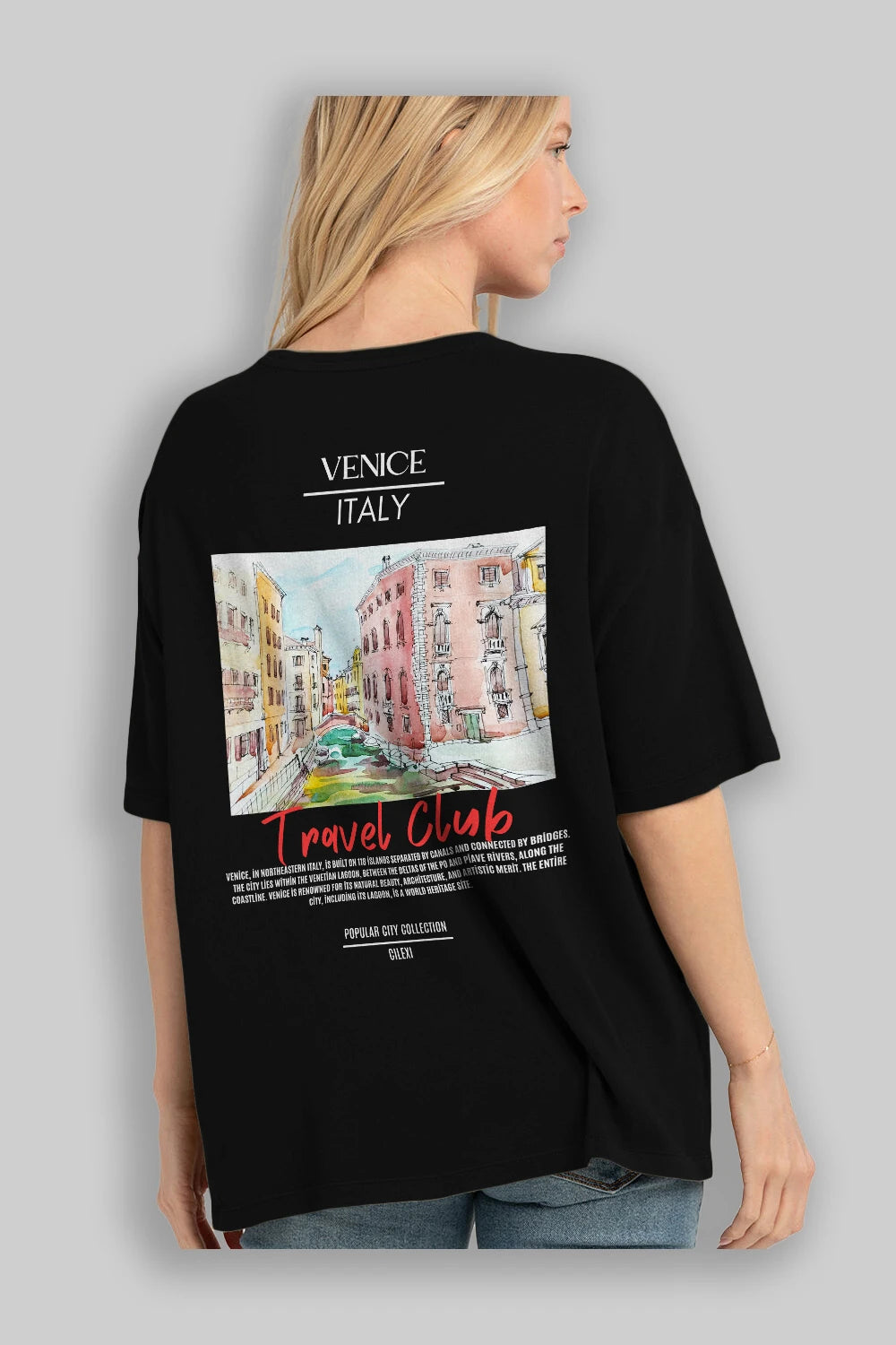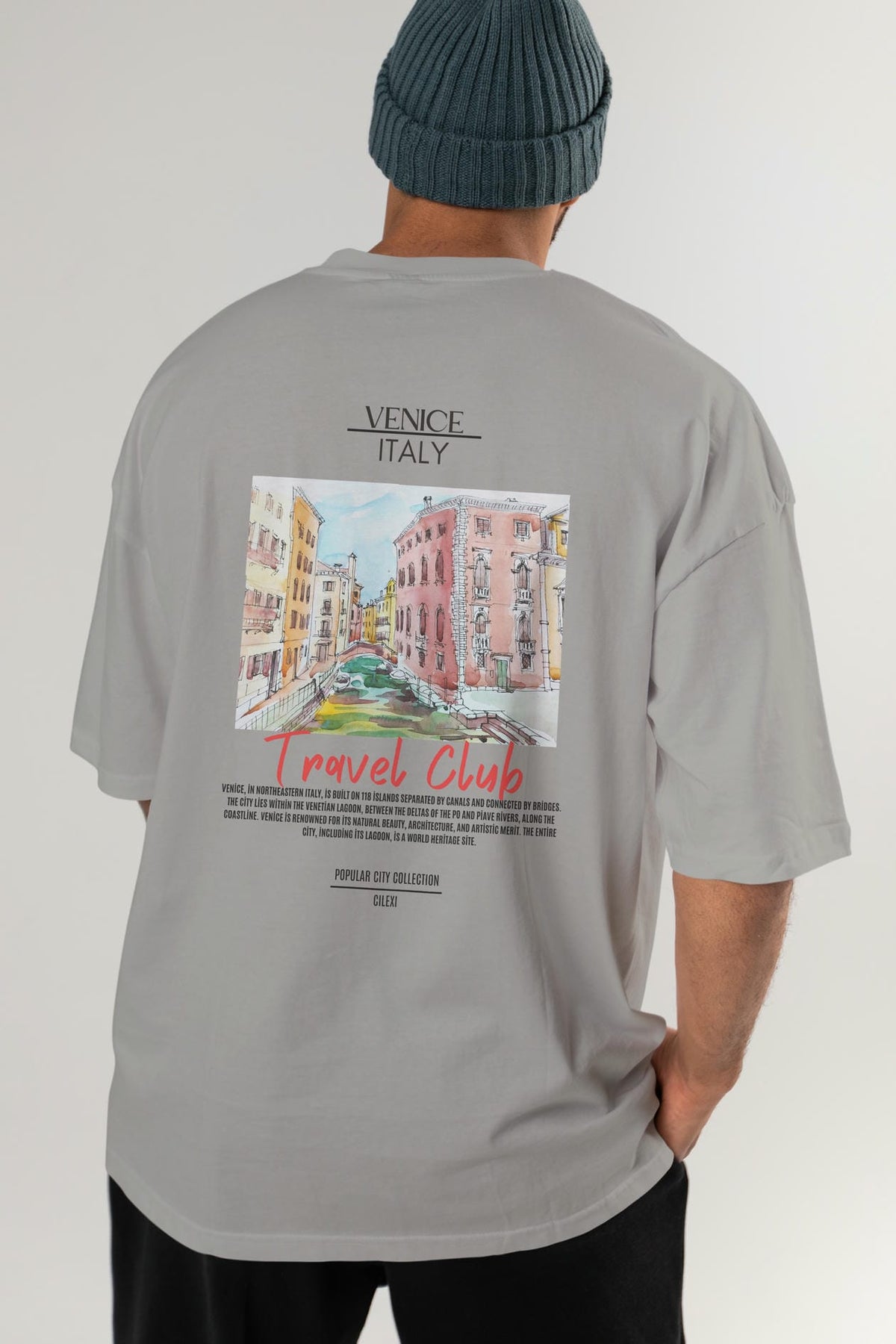 Venice İtaly Arka Baskılı Oversize t-shirt Erkek Kadın Pamuk Bisiklet Yaka tişort