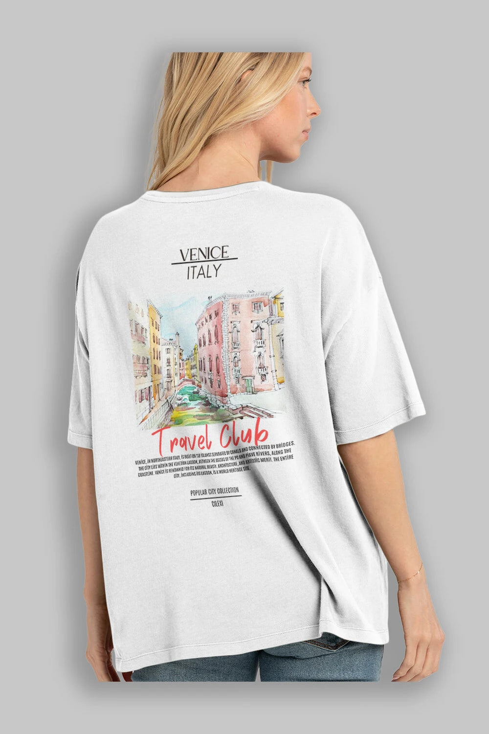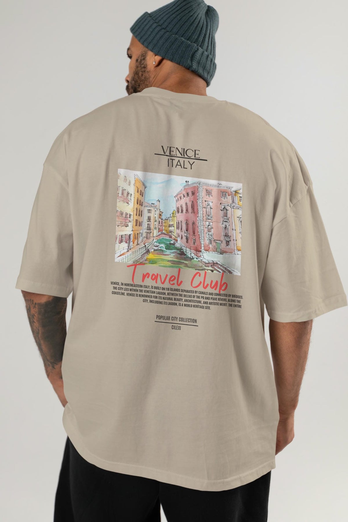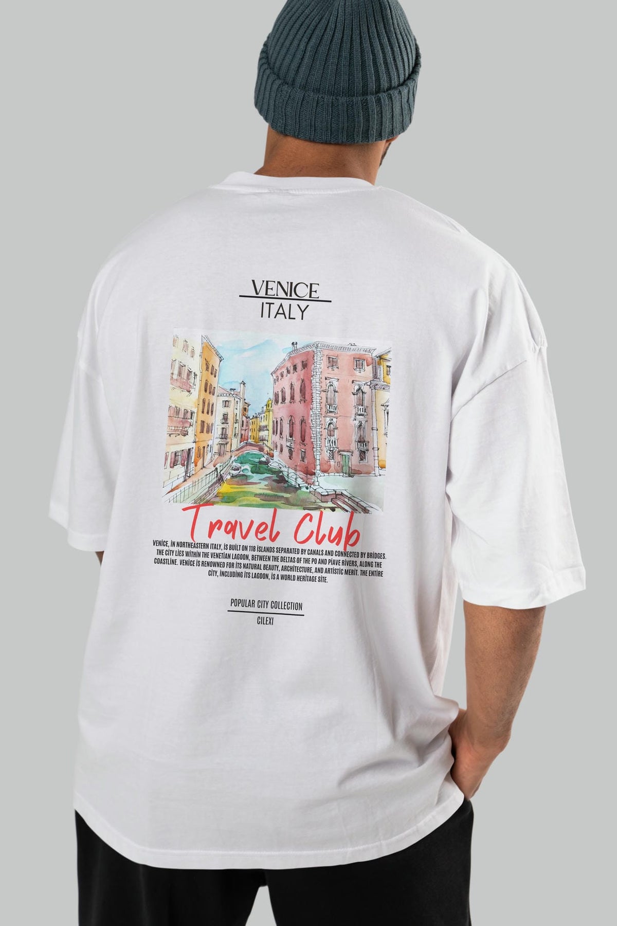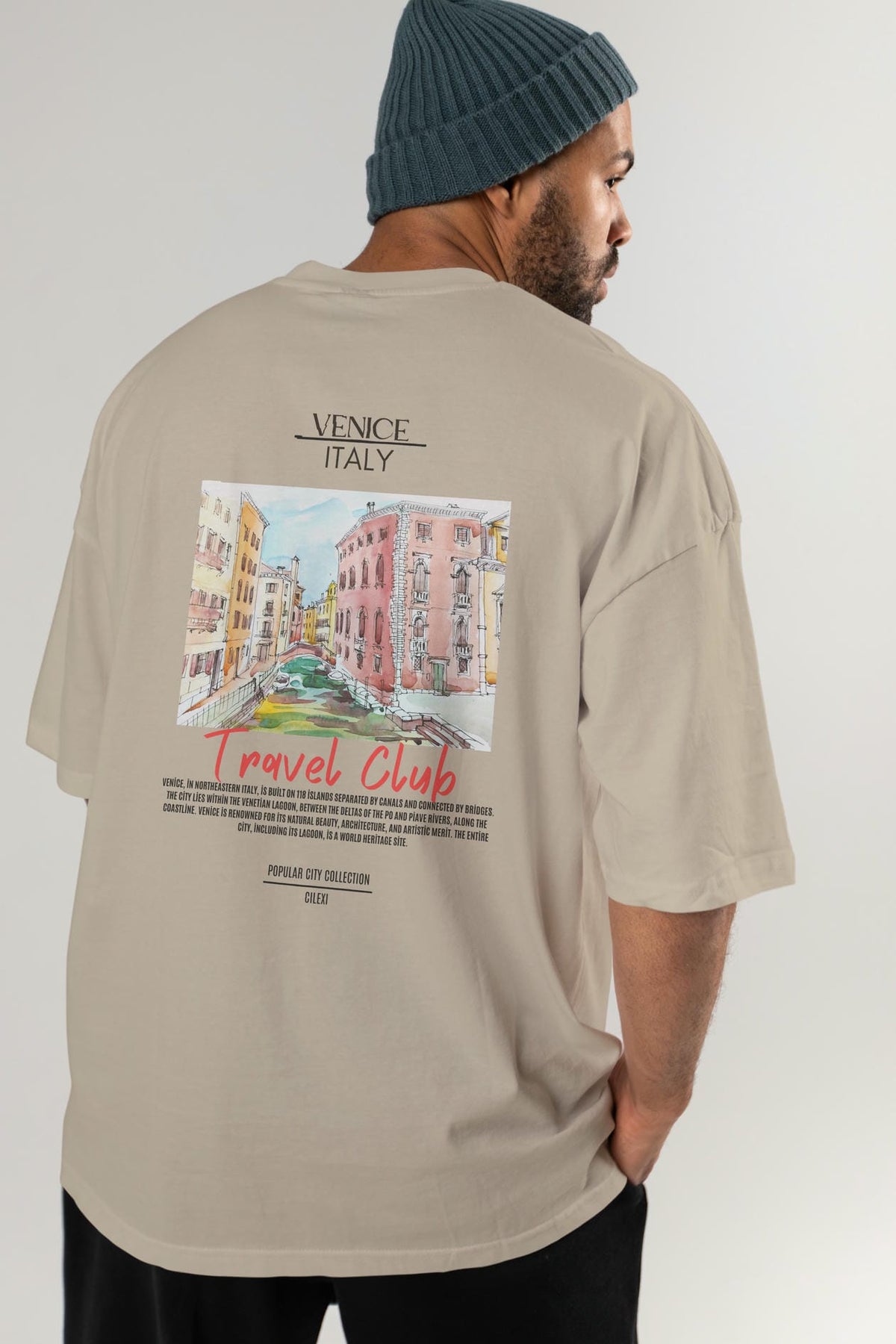 Venice İtaly Arka Baskılı Oversize t-shirt Erkek Kadın Pamuk Bisiklet Yaka tişort