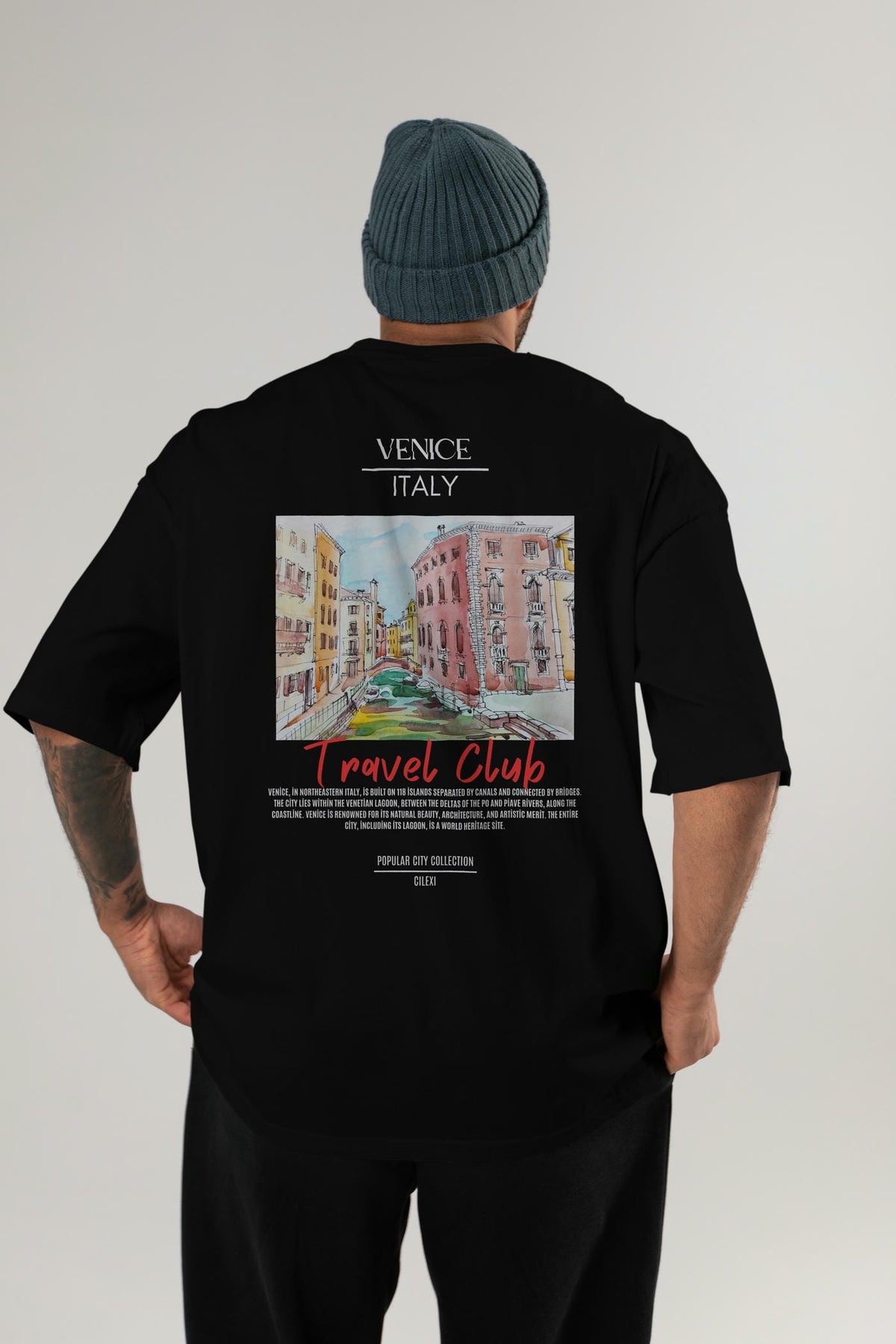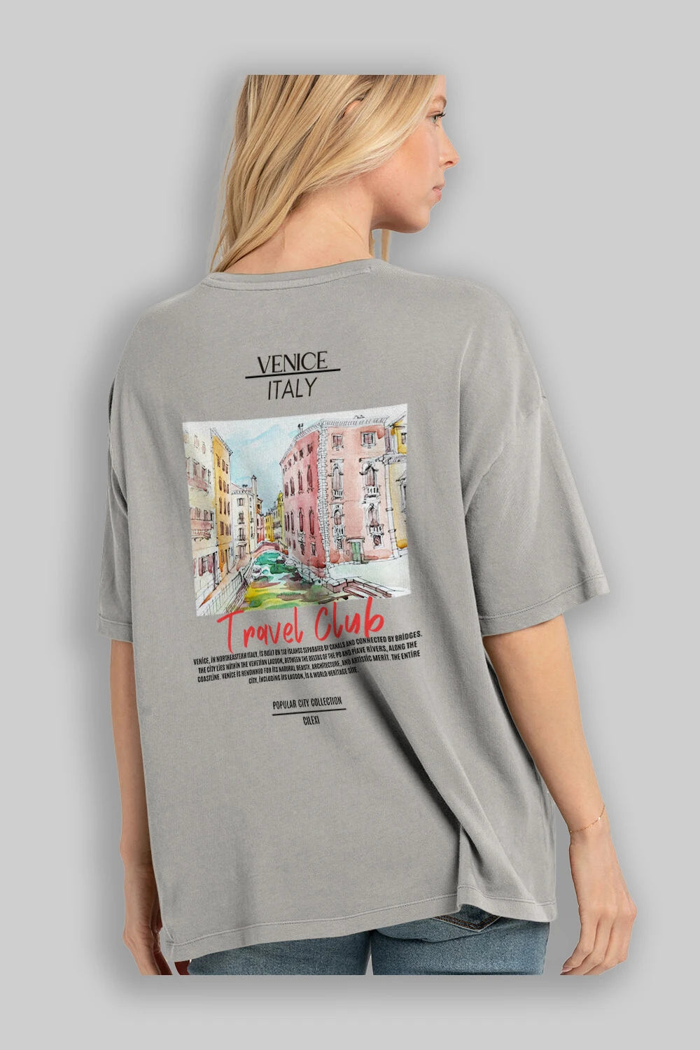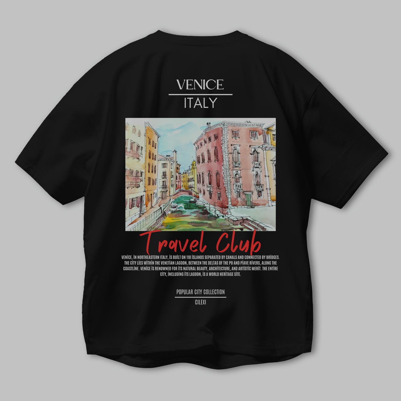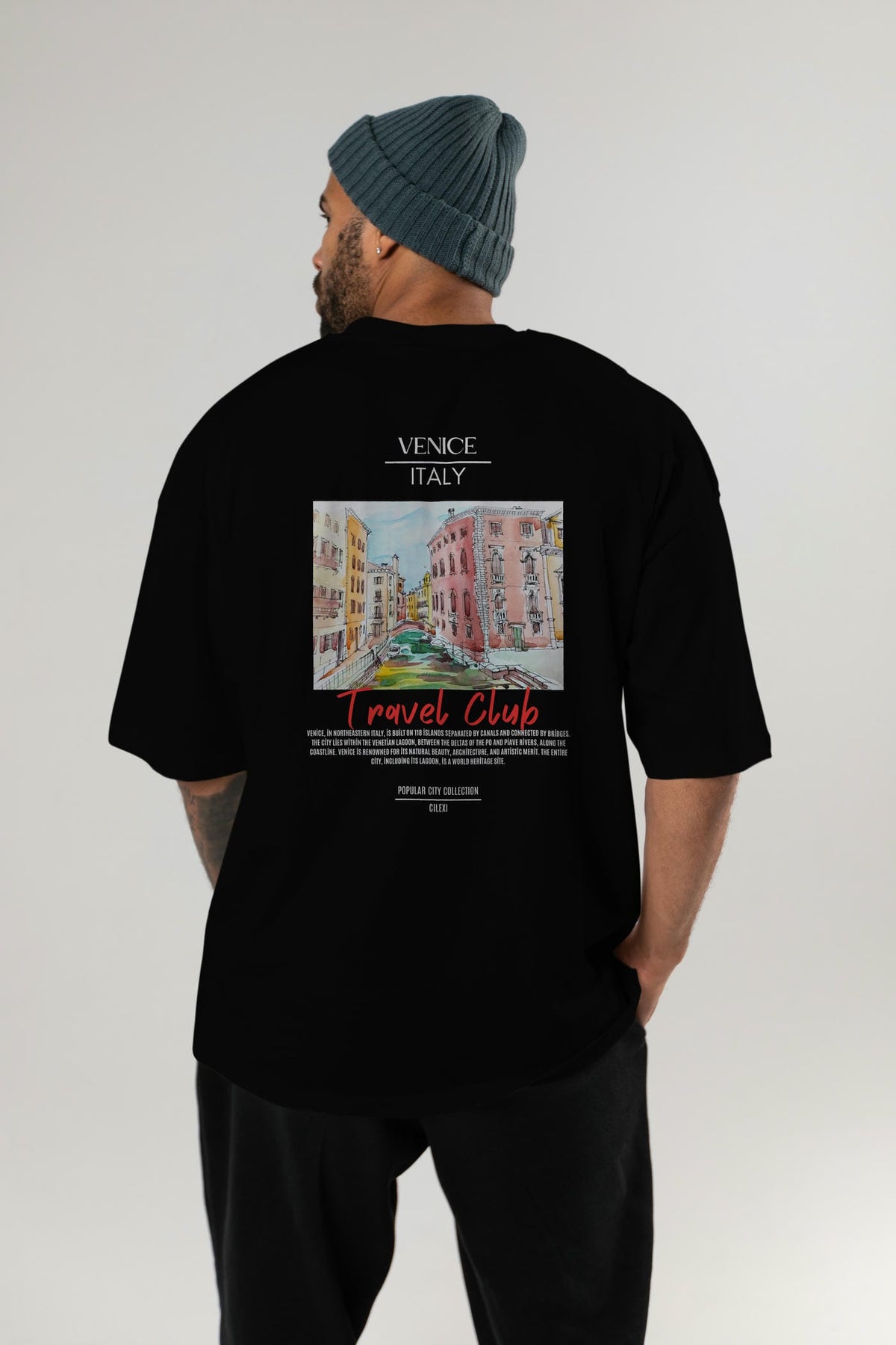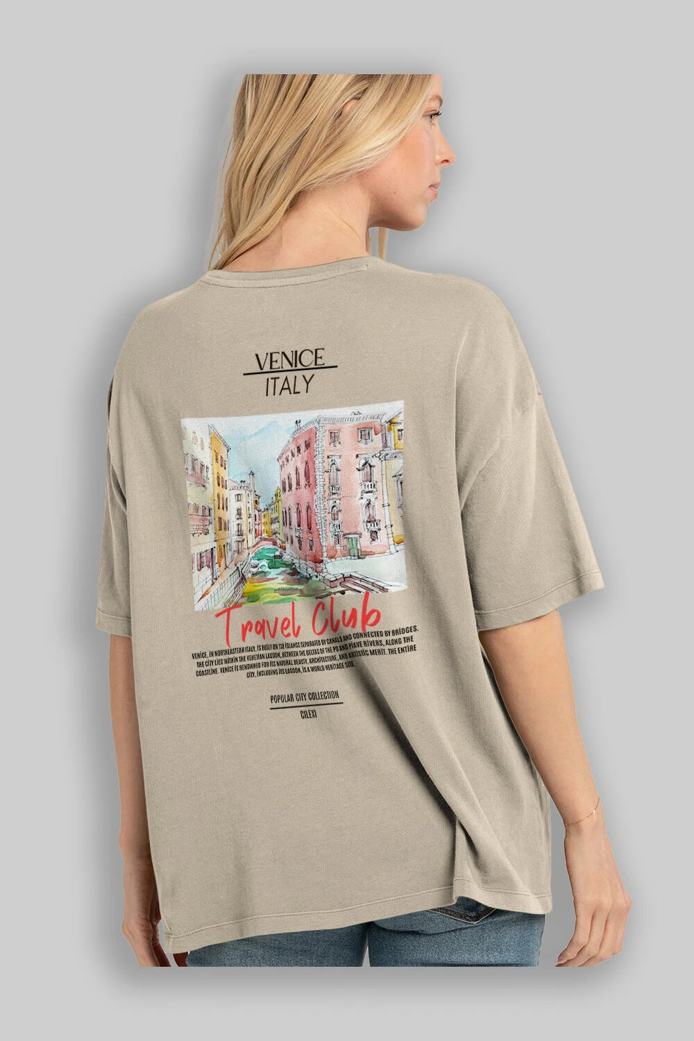 Venice İtaly Arka Baskılı Oversize t-shirt Erkek Kadın Pamuk Bisiklet Yaka tişort