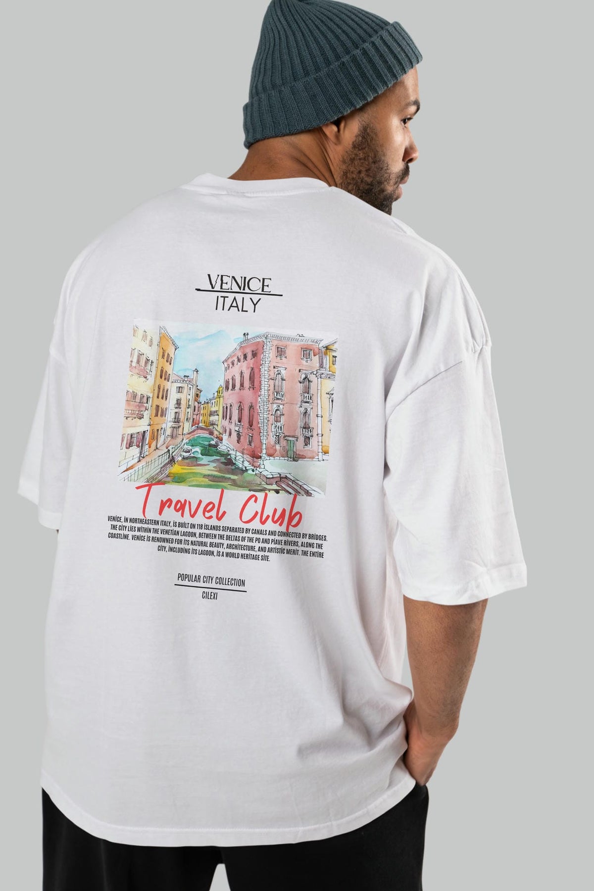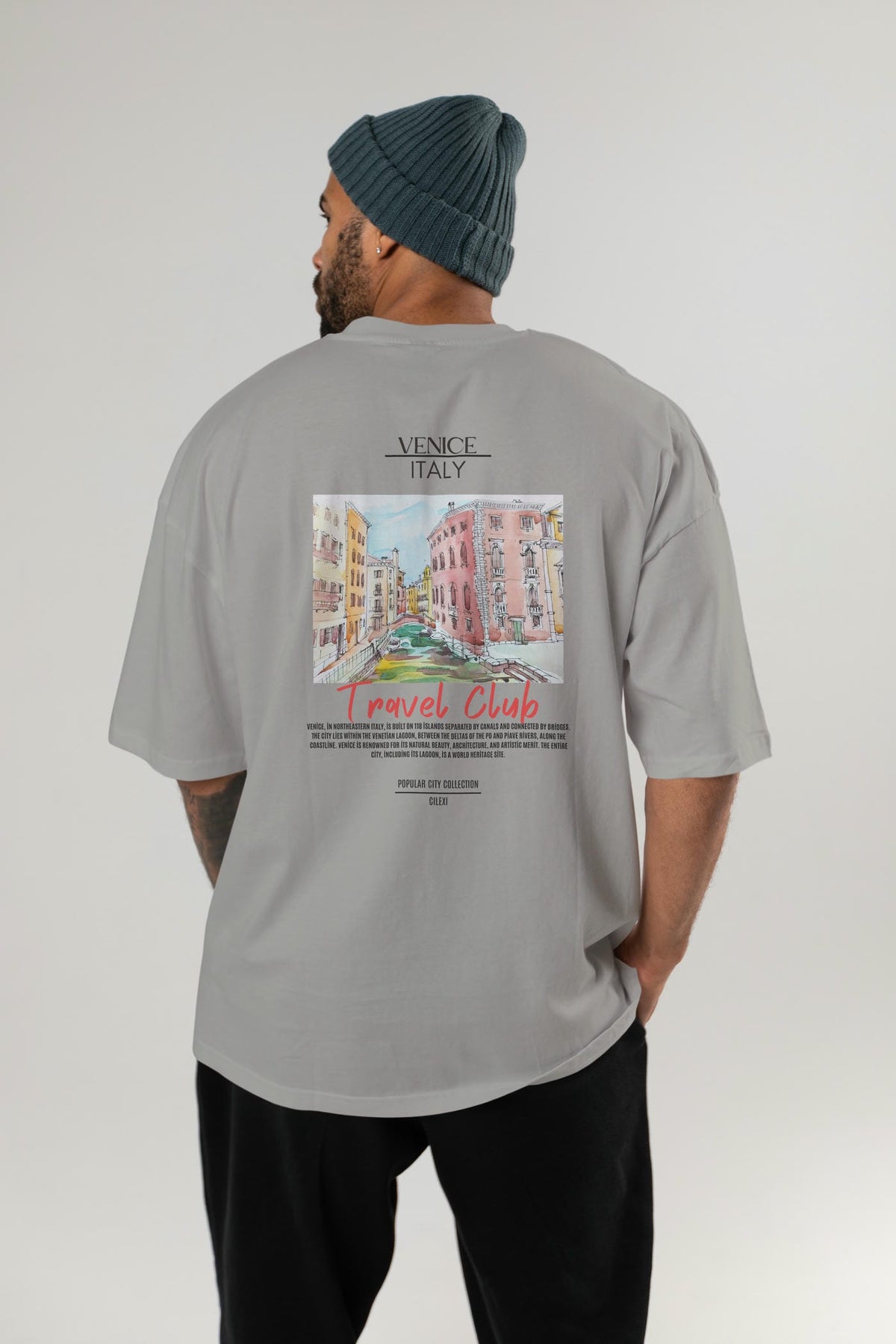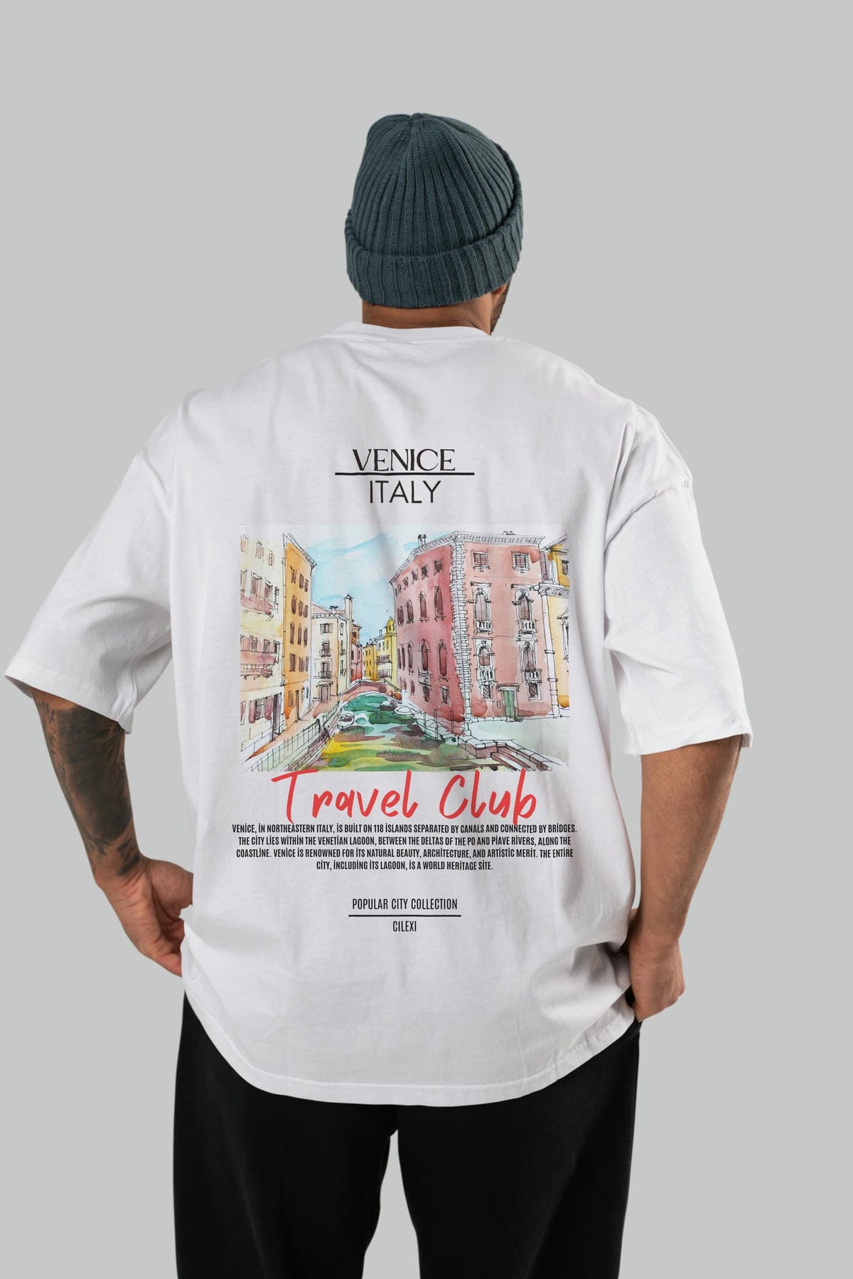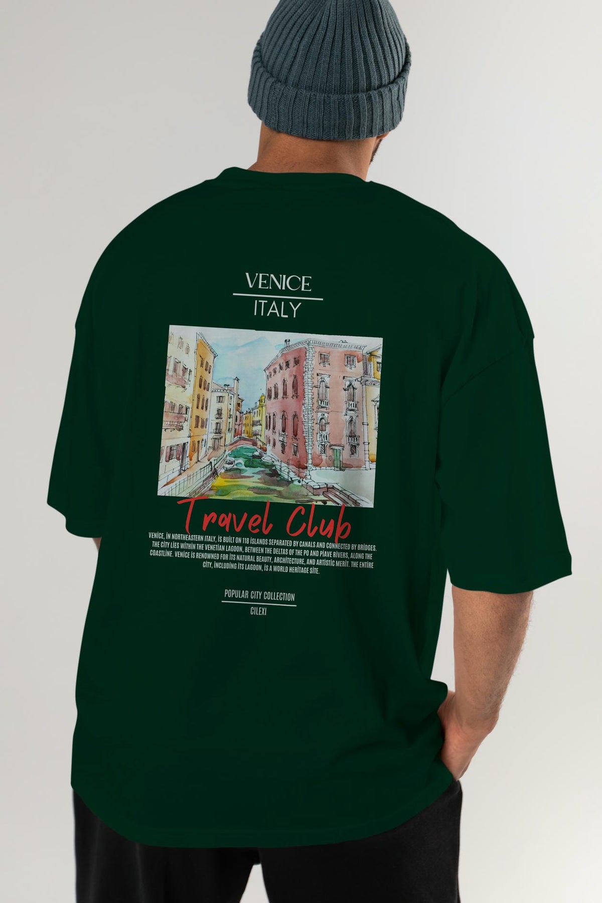 Venice İtaly Arka Baskılı Oversize t-shirt Erkek Kadın Pamuk Bisiklet Yaka tişort
