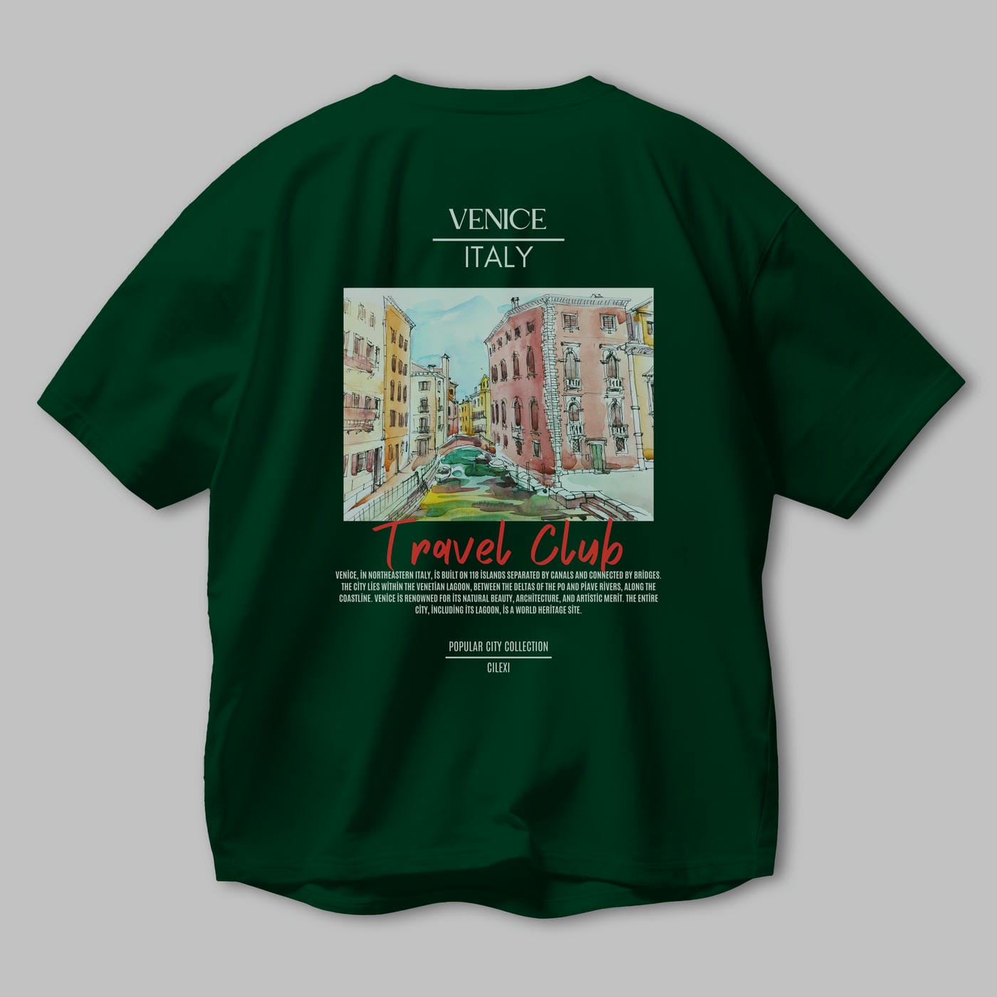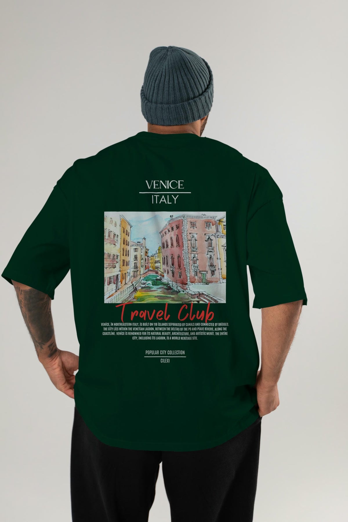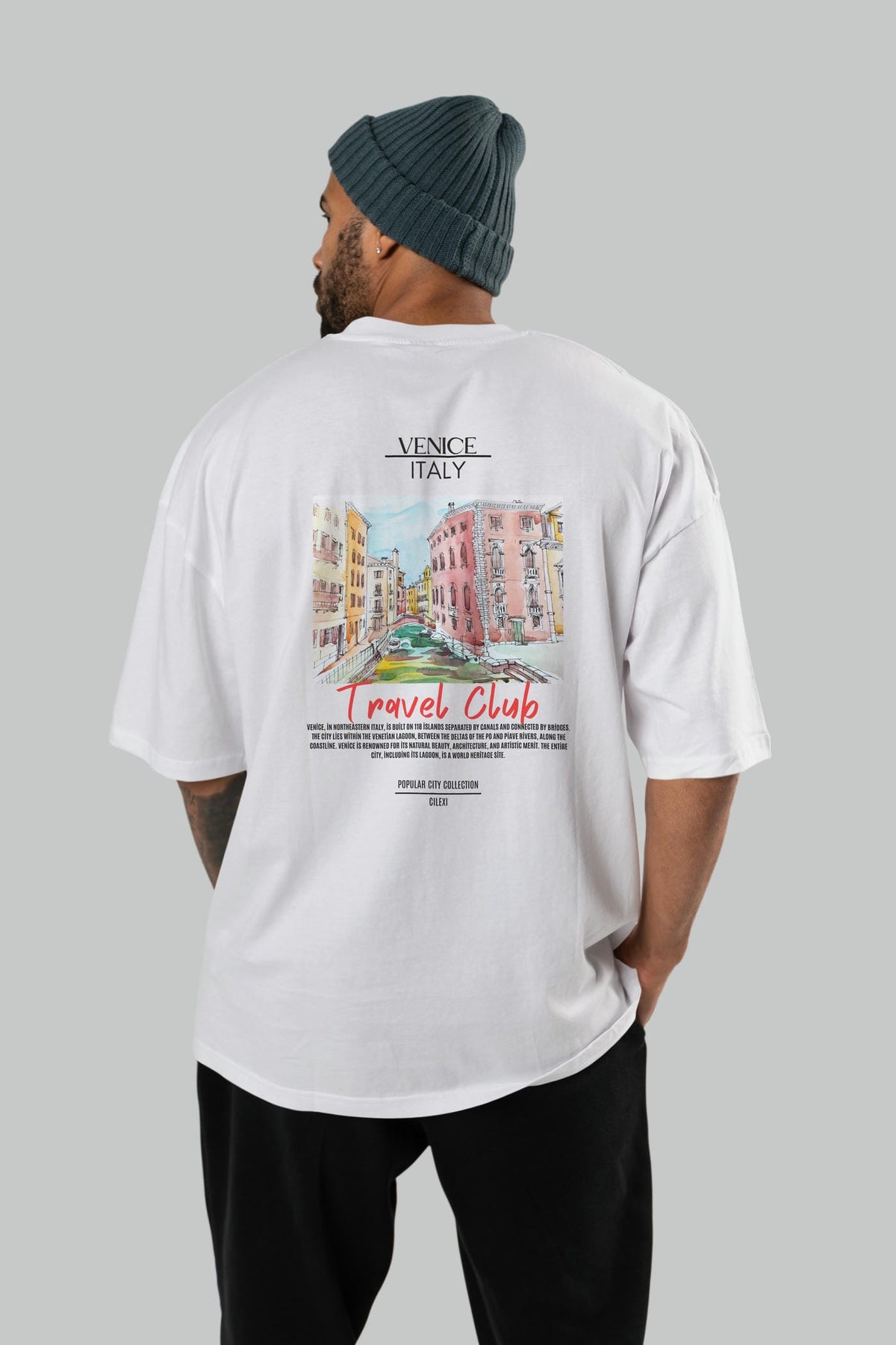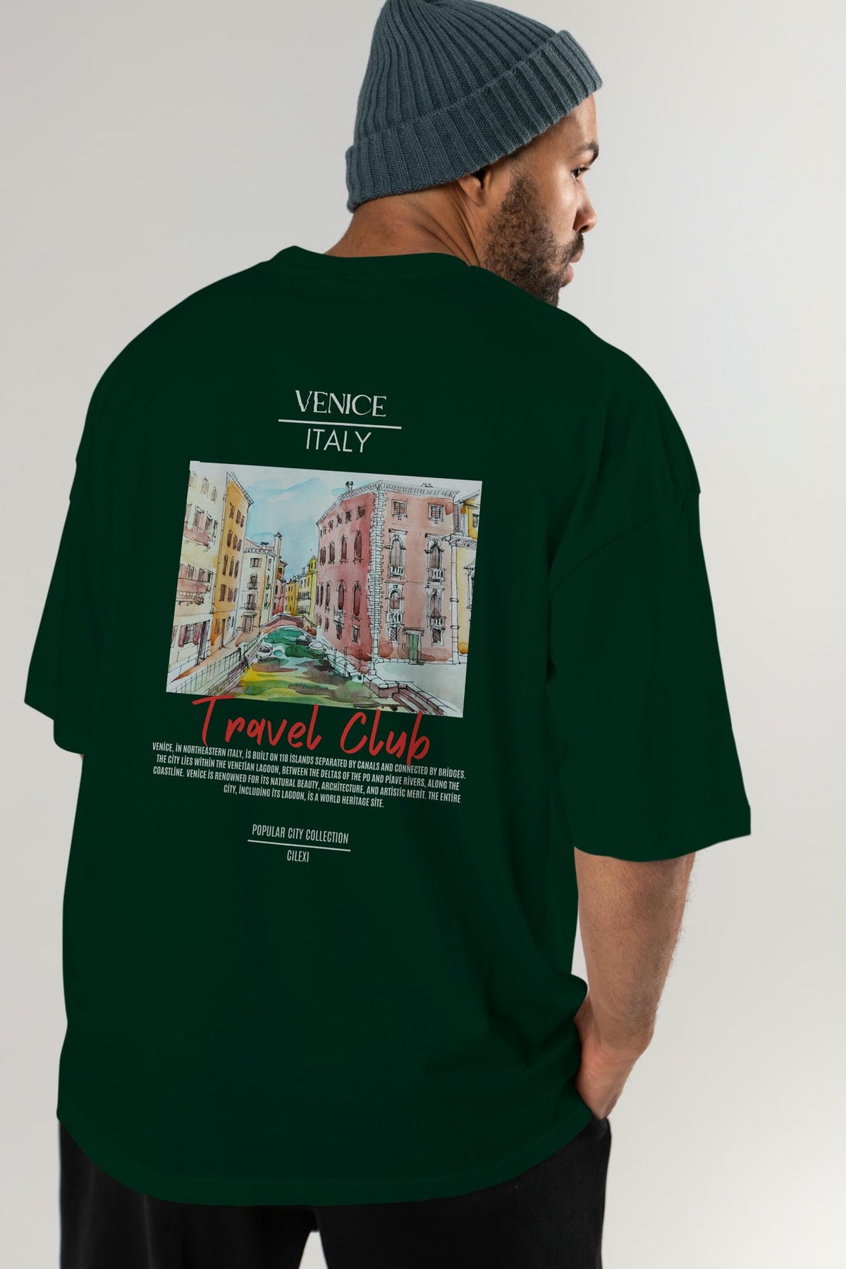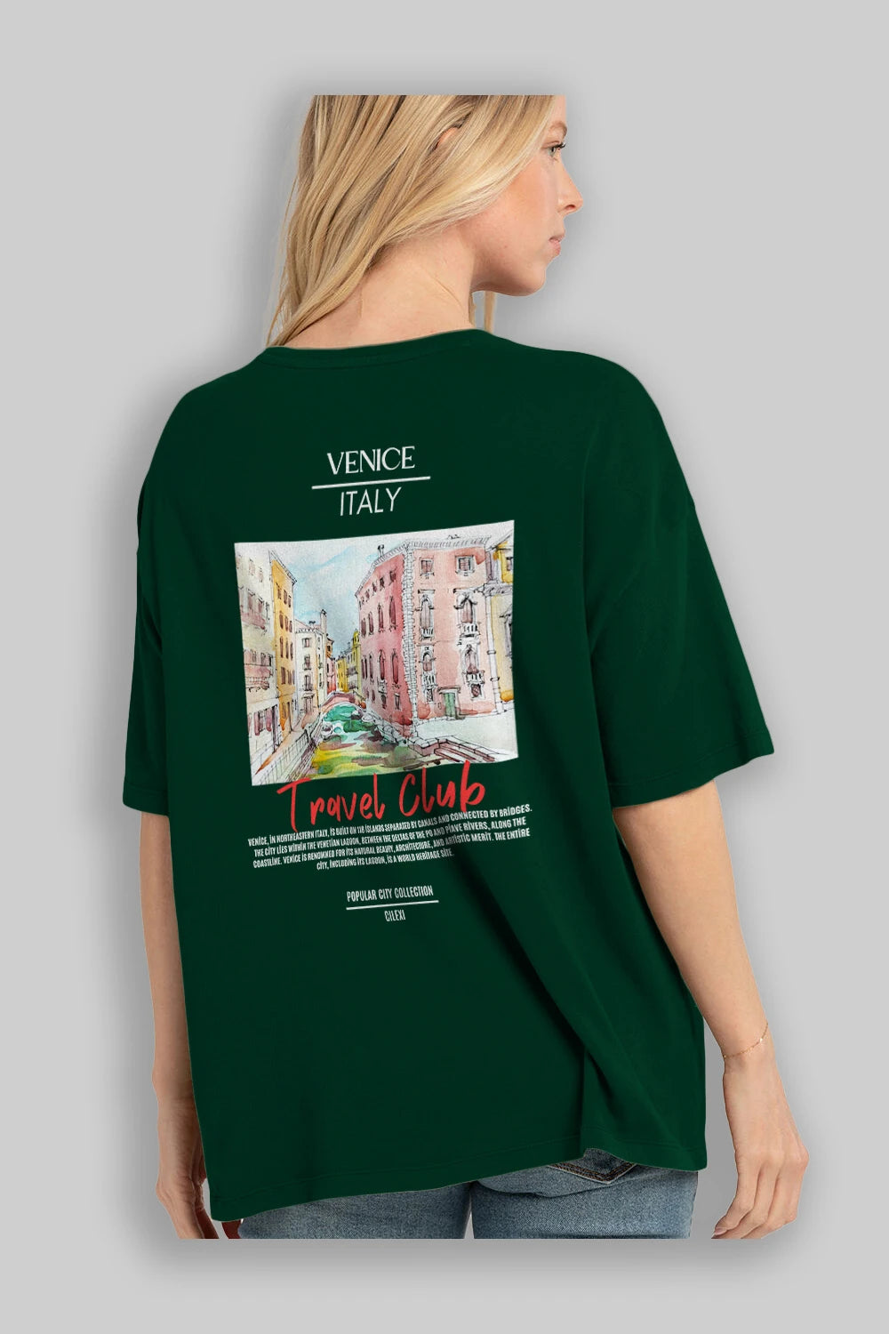 Venice İtaly Arka Baskılı Oversize t-shirt Erkek Kadın Pamuk Bisiklet Yaka tişort