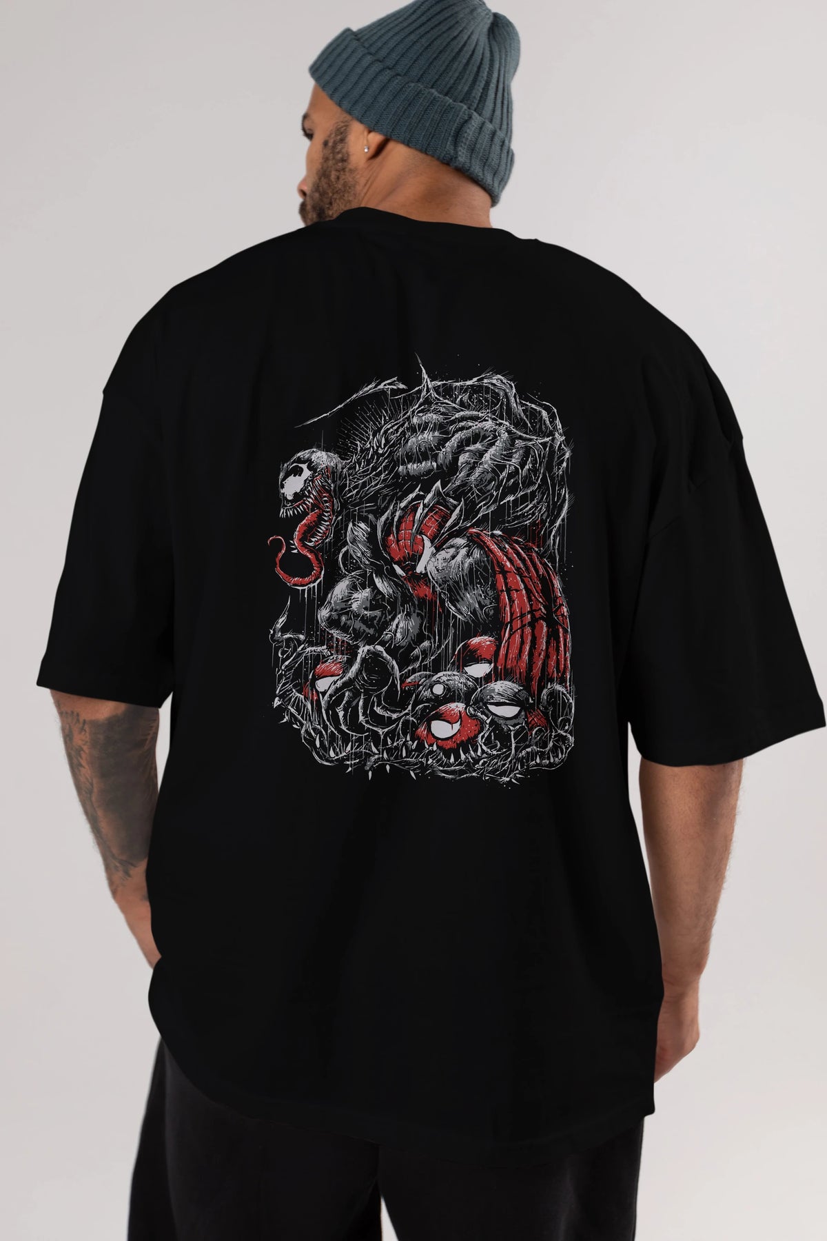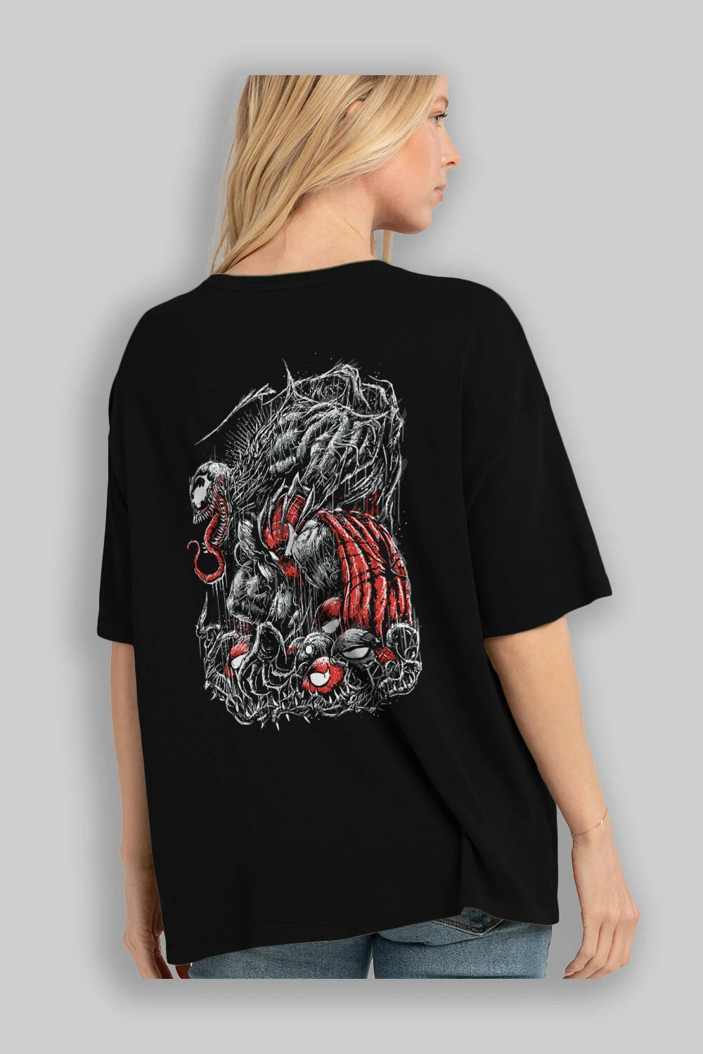 Venom (14) Arka Baskılı Oversize t-shirt Erkek Kadın Unisex %100 Pamuk Bisiklet Yaka tişort