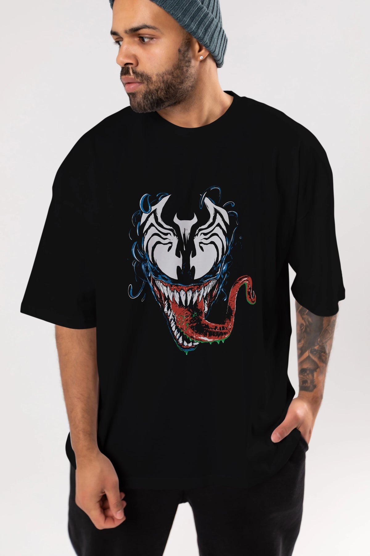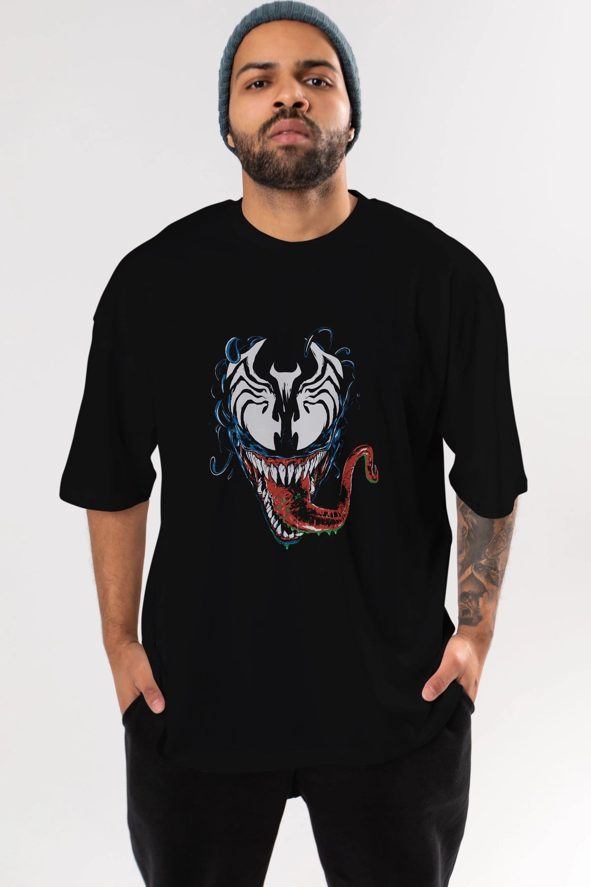 Venom (2) Ön Baskılı Oversize t-shirt Erkek Kadın Unisex %100 Pamuk Bisiklet Yaka tişort