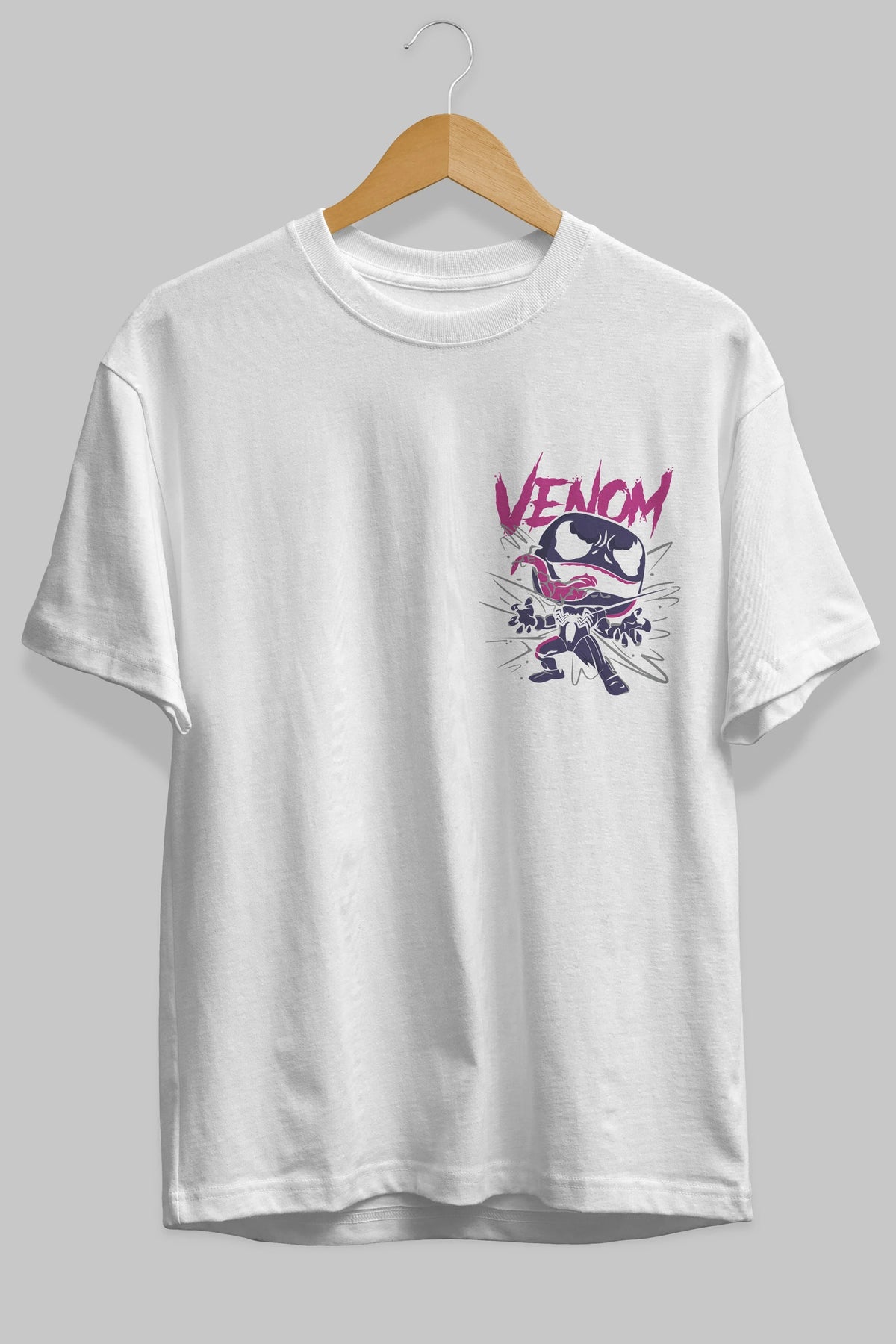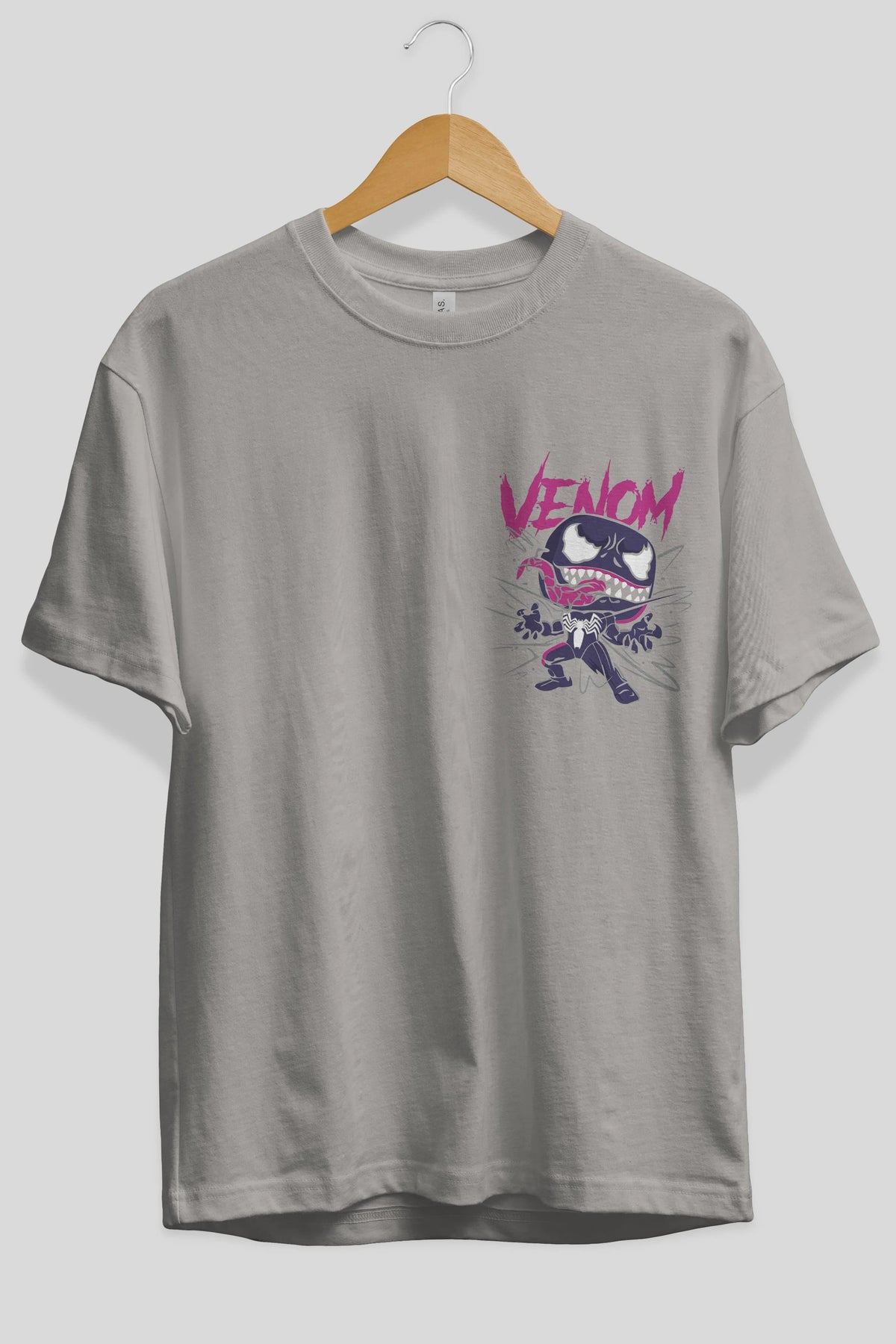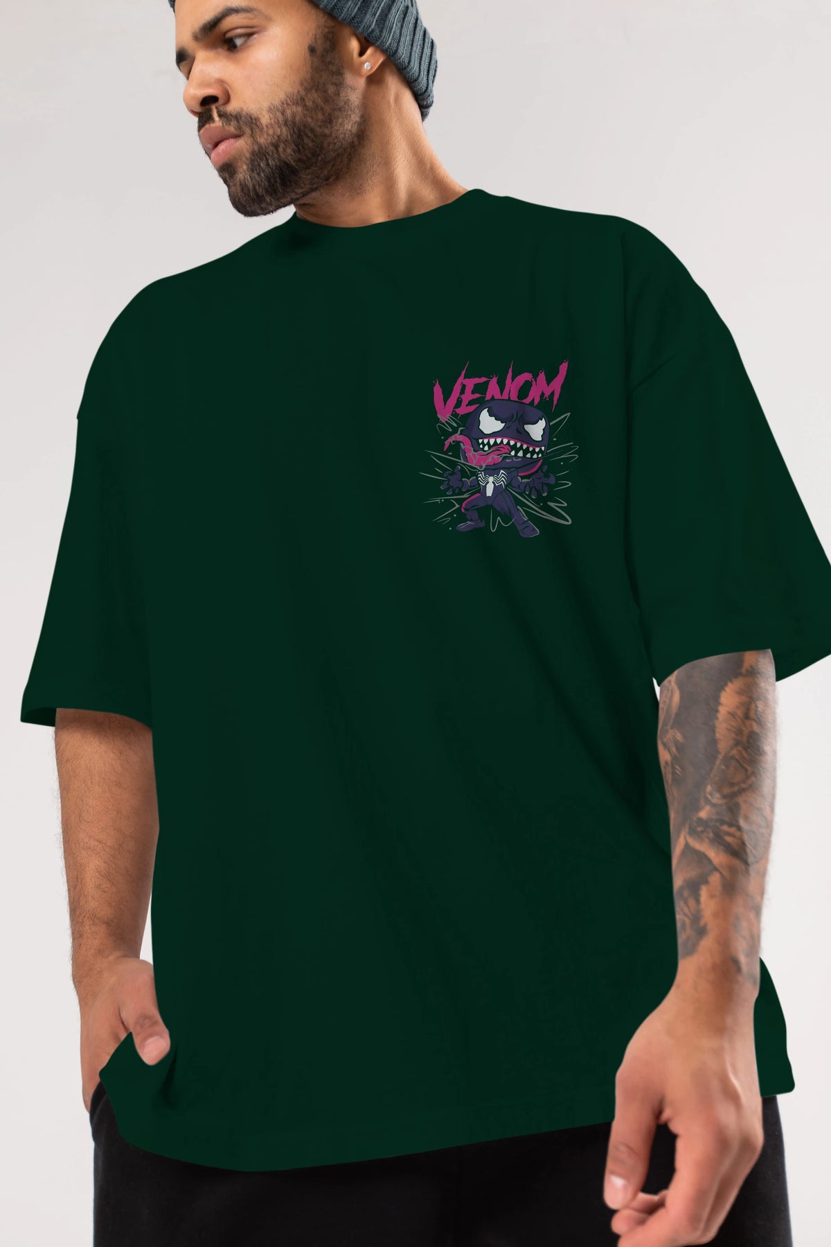 Venom (20) Ön Sol Baskılı Oversize t-shirt Erkek Kadın Unisex %100 Pamuk Bisiklet Yaka tişort