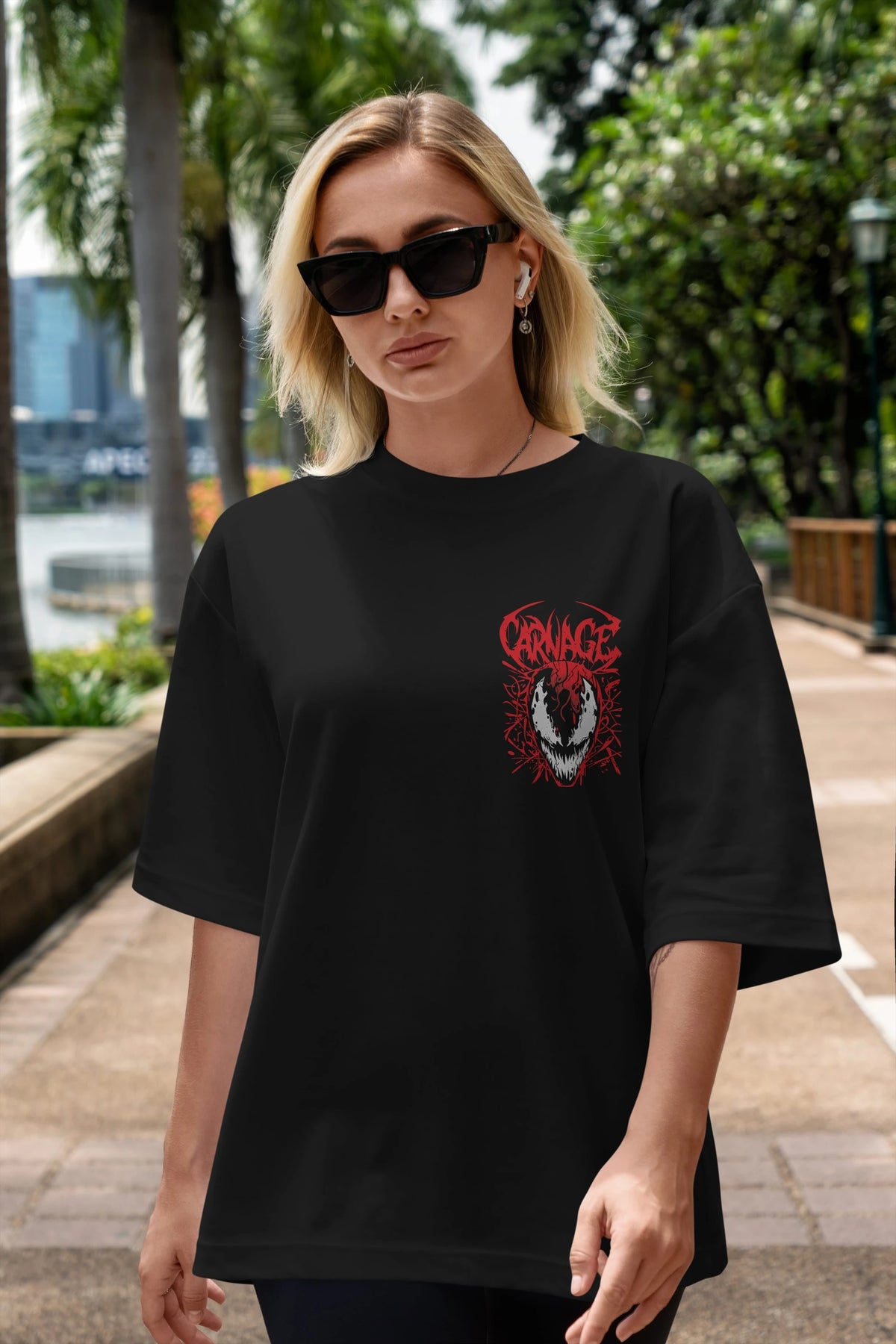 Venom (22) Ön Sol Baskılı Oversize t-shirt Erkek Kadın Unisex %100 Pamuk Bisiklet Yaka tişort