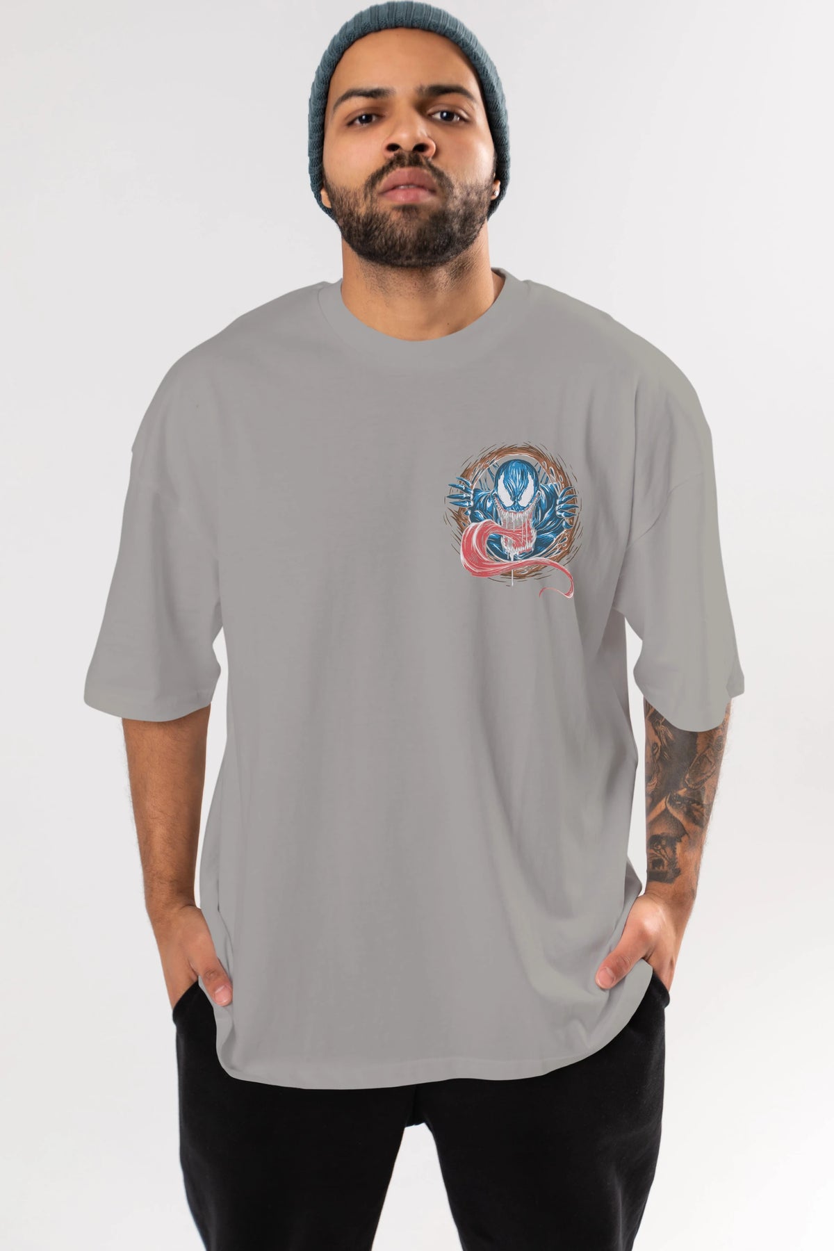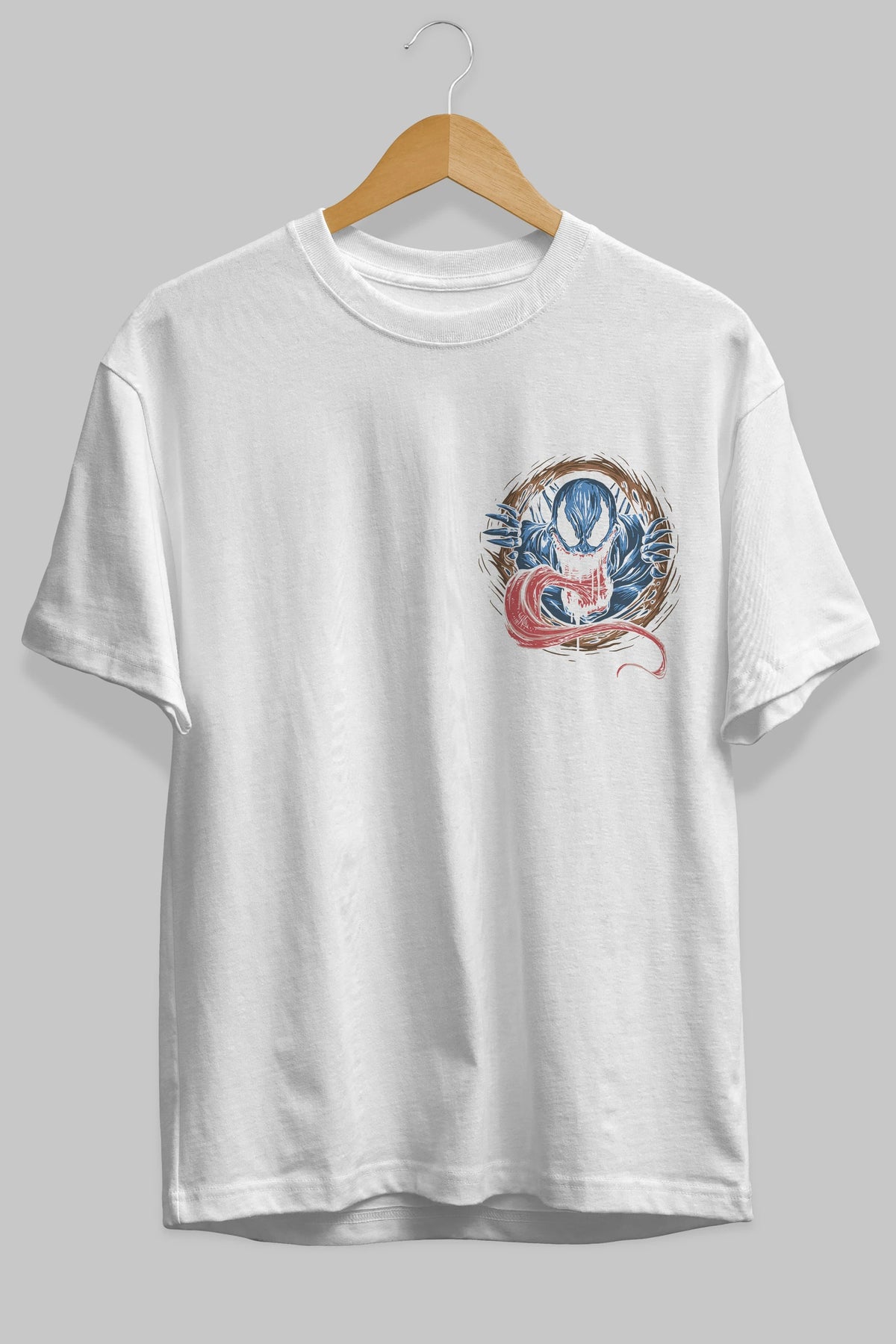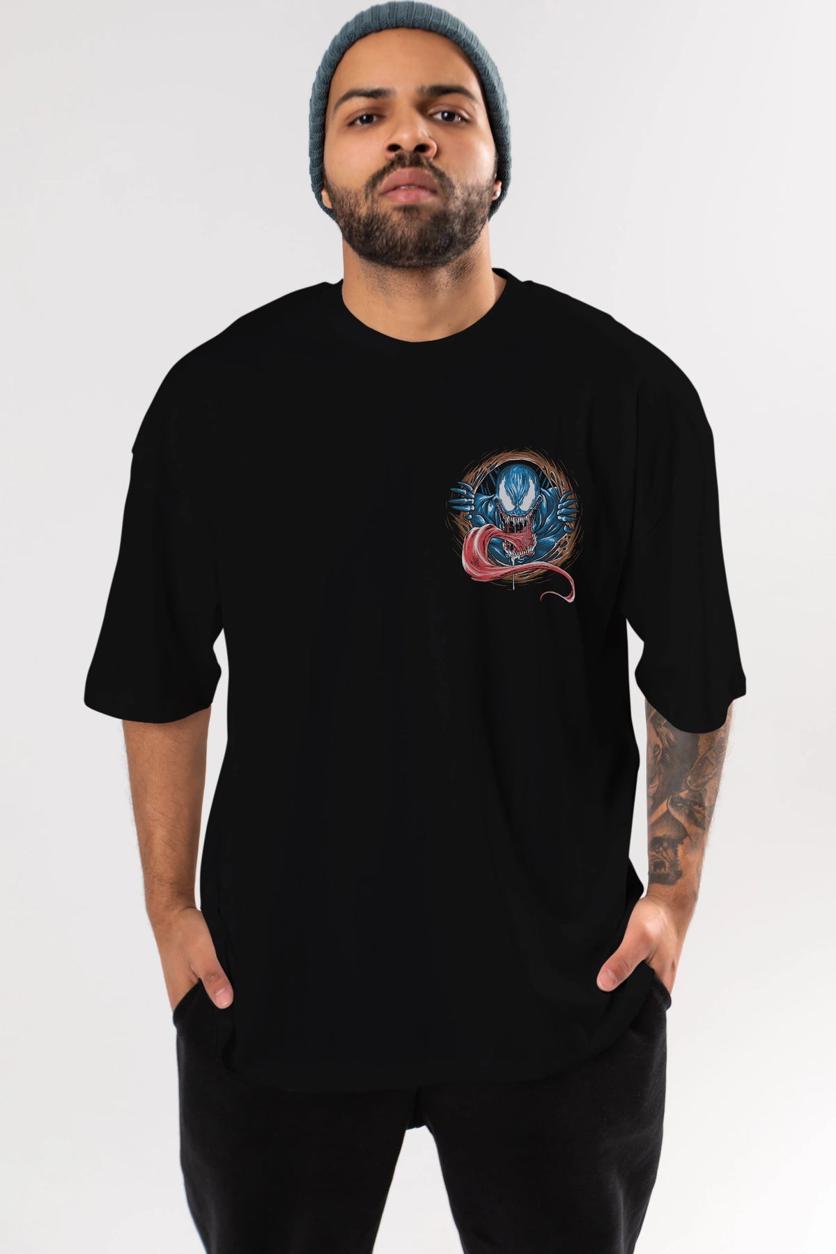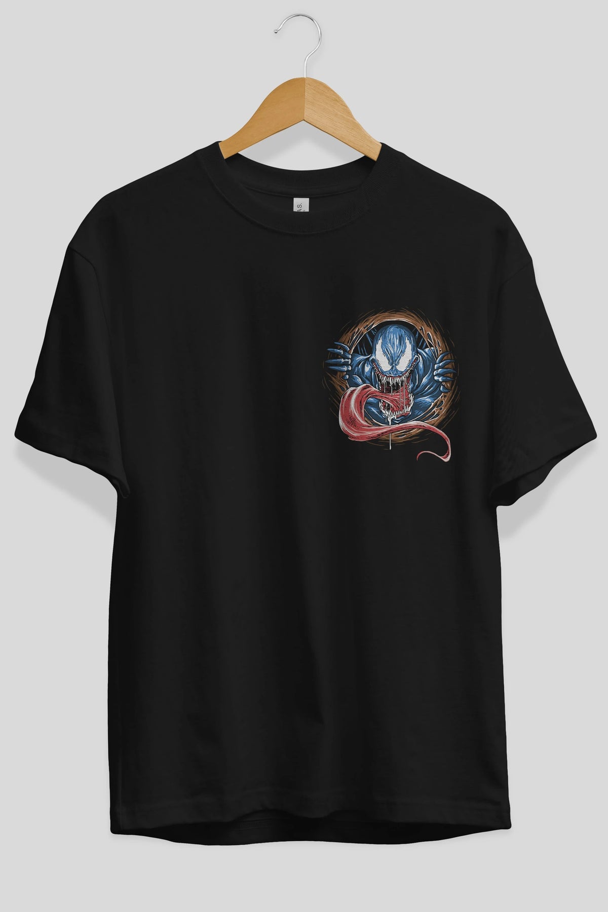 Venom (7) Ön Sol Baskılı Oversize t-shirt Erkek Kadın Unisex %100 Pamuk Bisiklet Yaka tişort