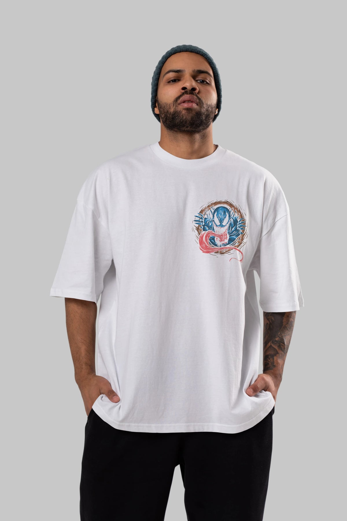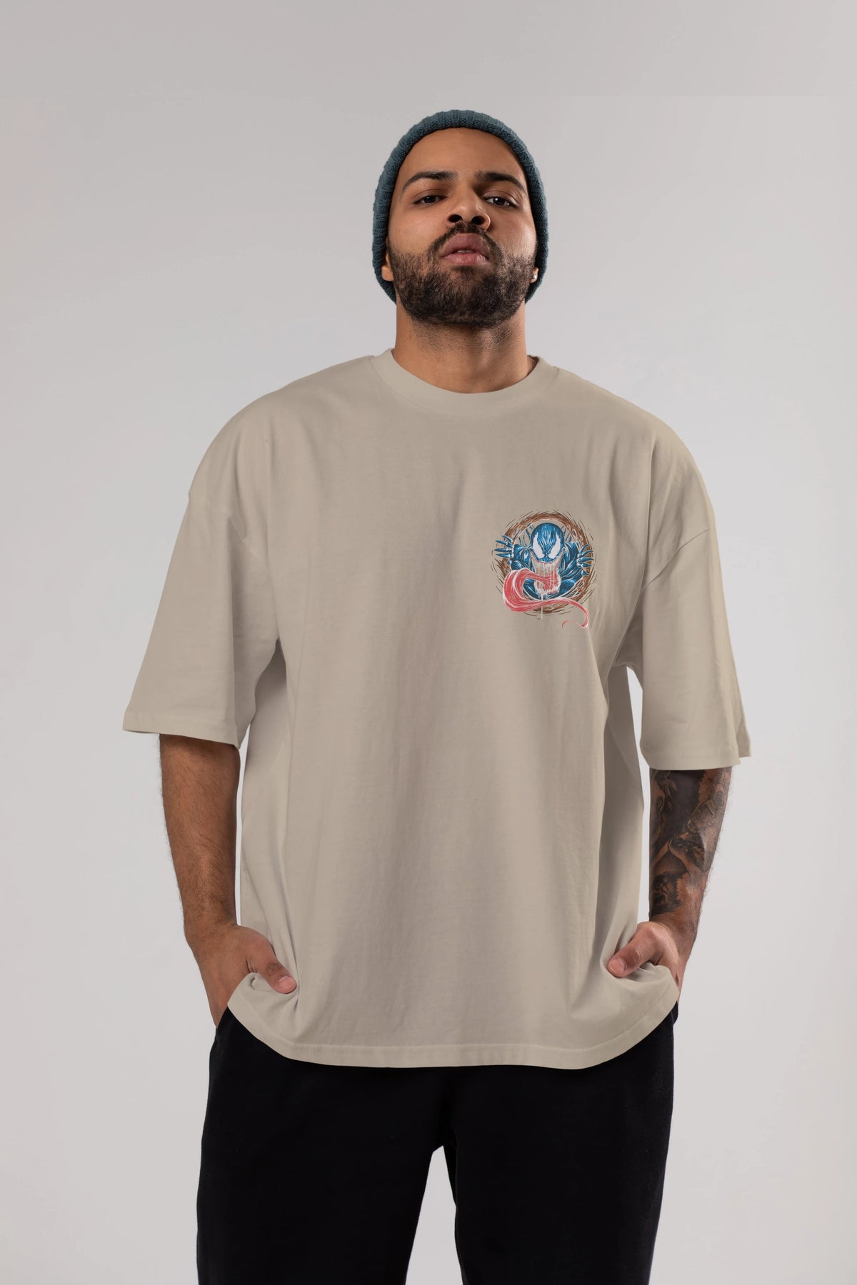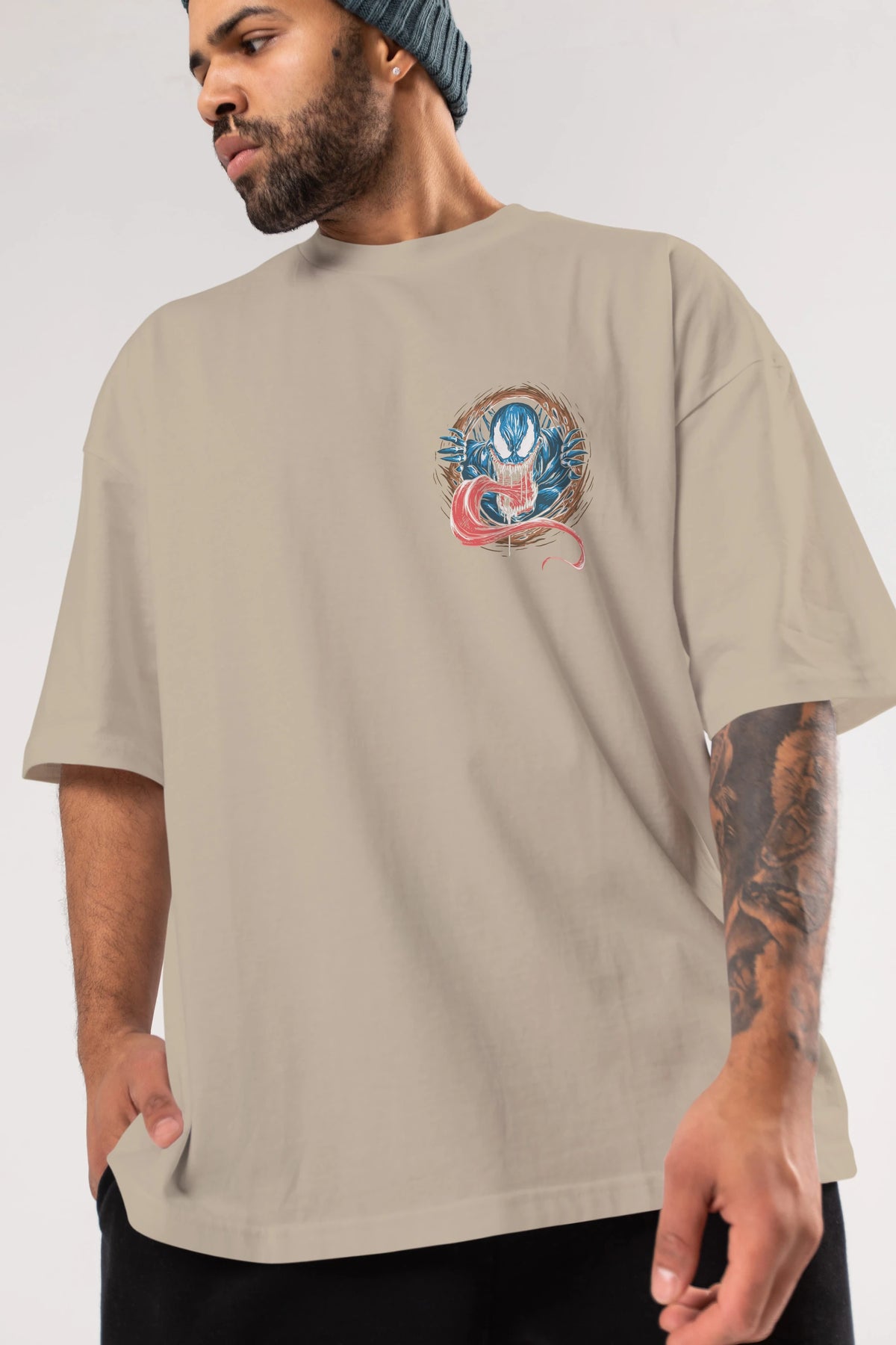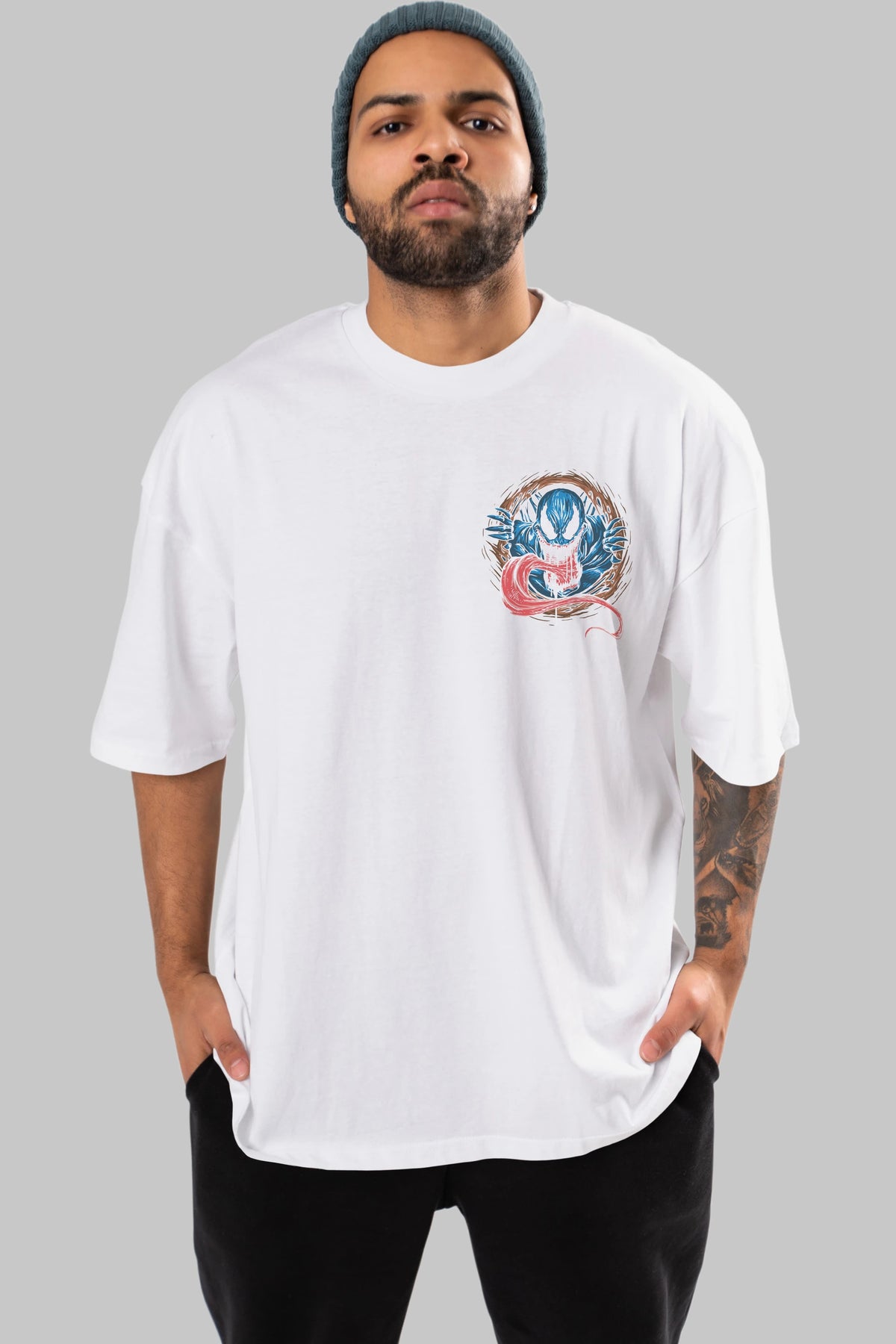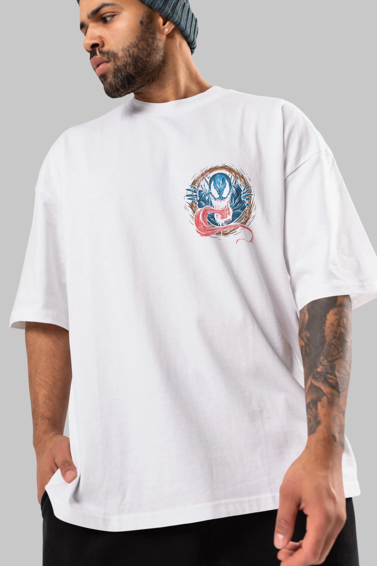 Venom (7) Ön Sol Baskılı Oversize t-shirt Erkek Kadın Unisex %100 Pamuk Bisiklet Yaka tişort