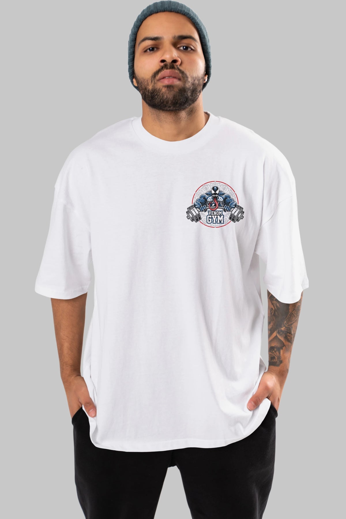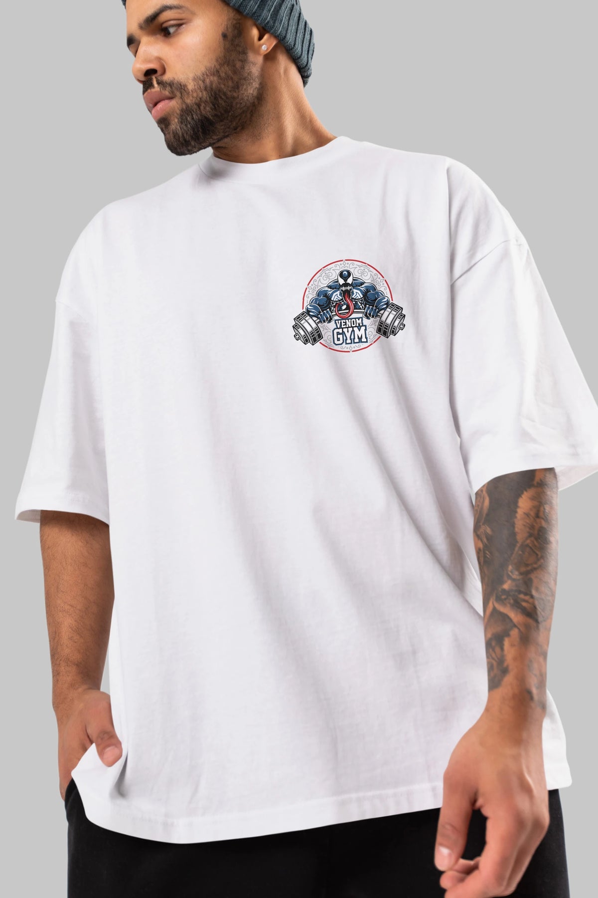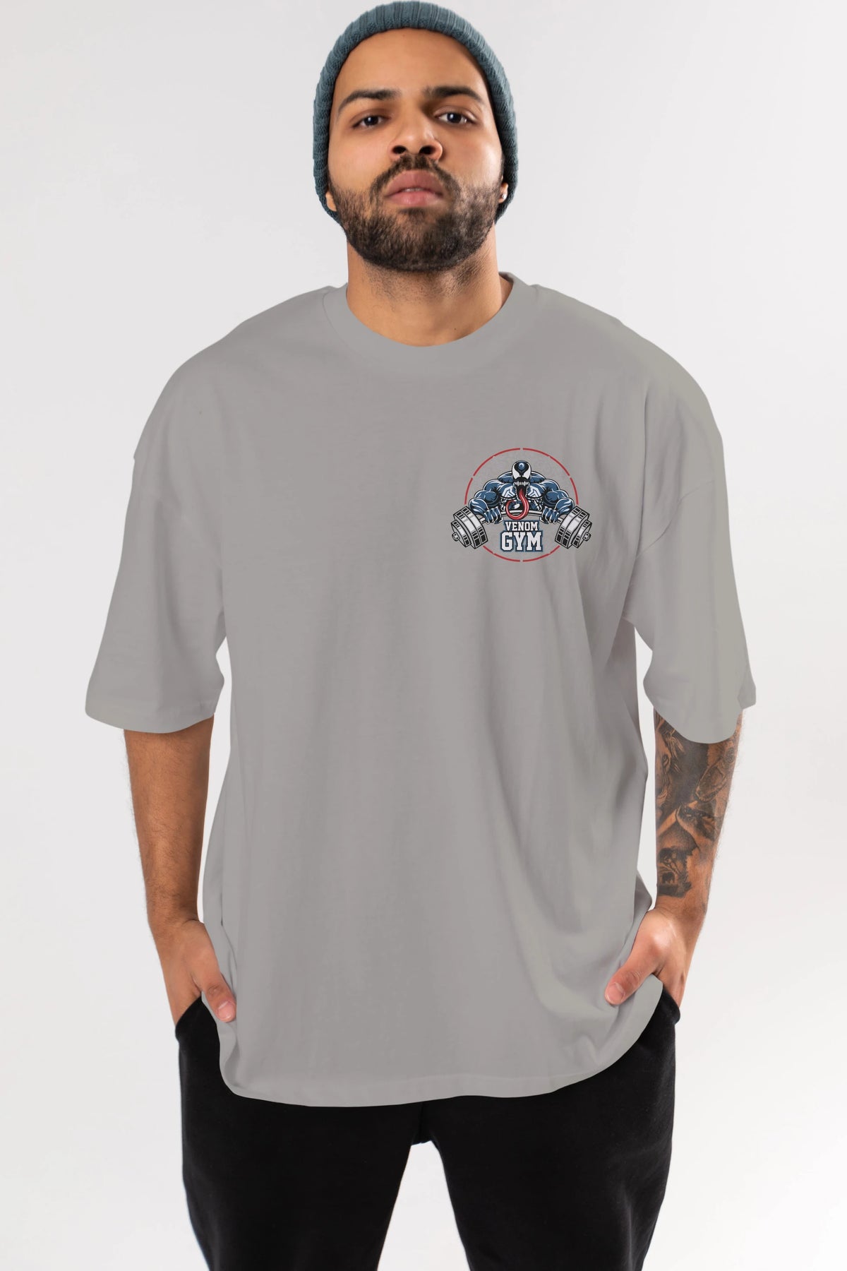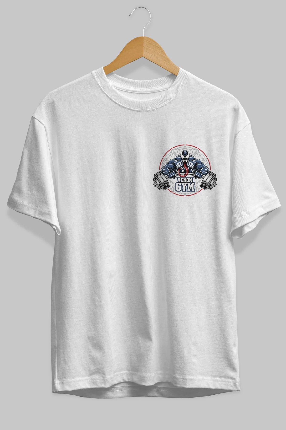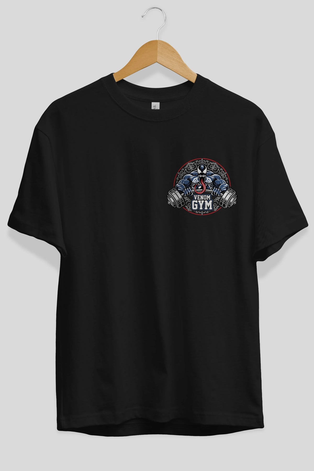 Venom GYM Ön Sol Baskılı Oversize t-shirt Erkek Kadın Unisex %100 Pamuk Bisiklet Yaka tişort
