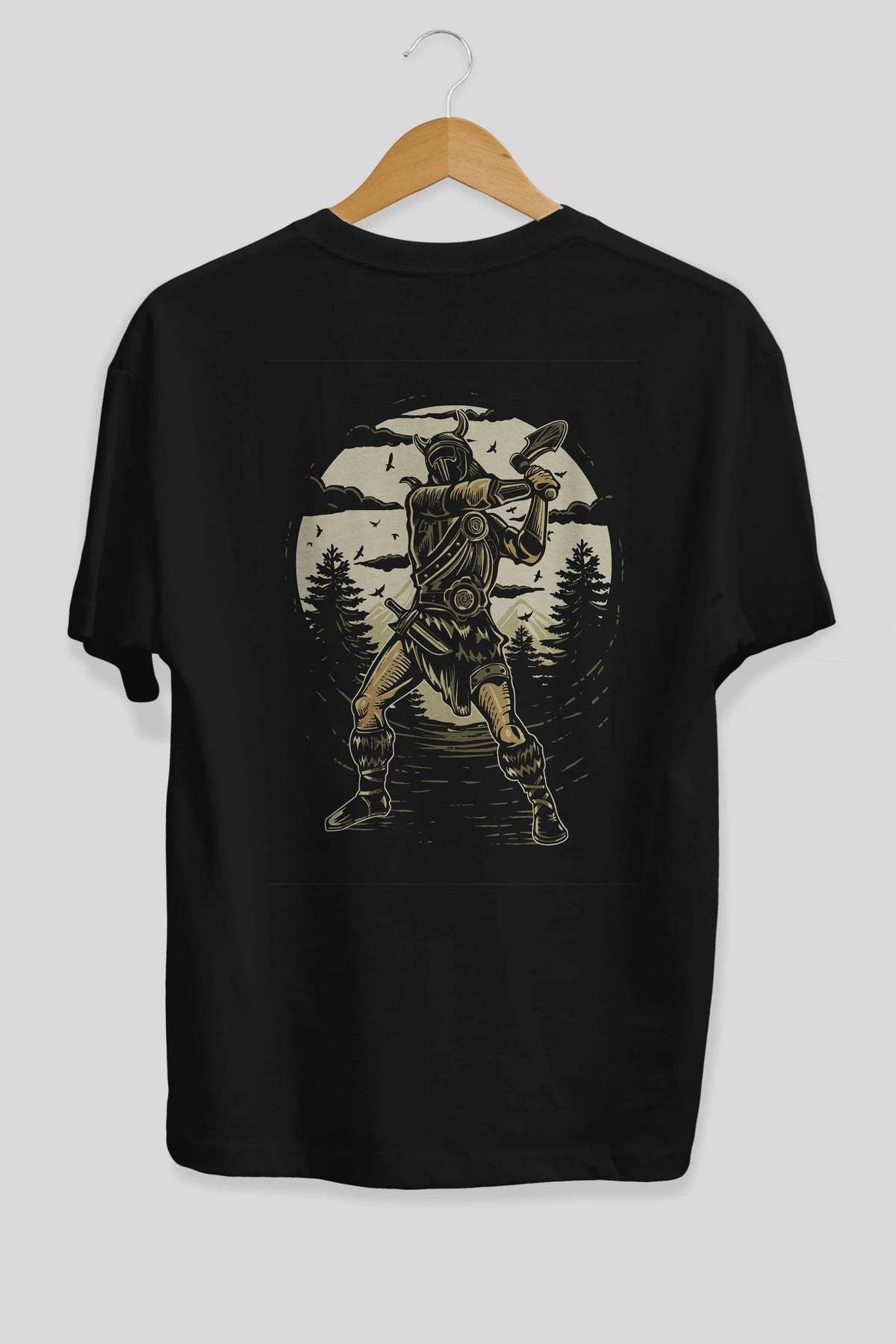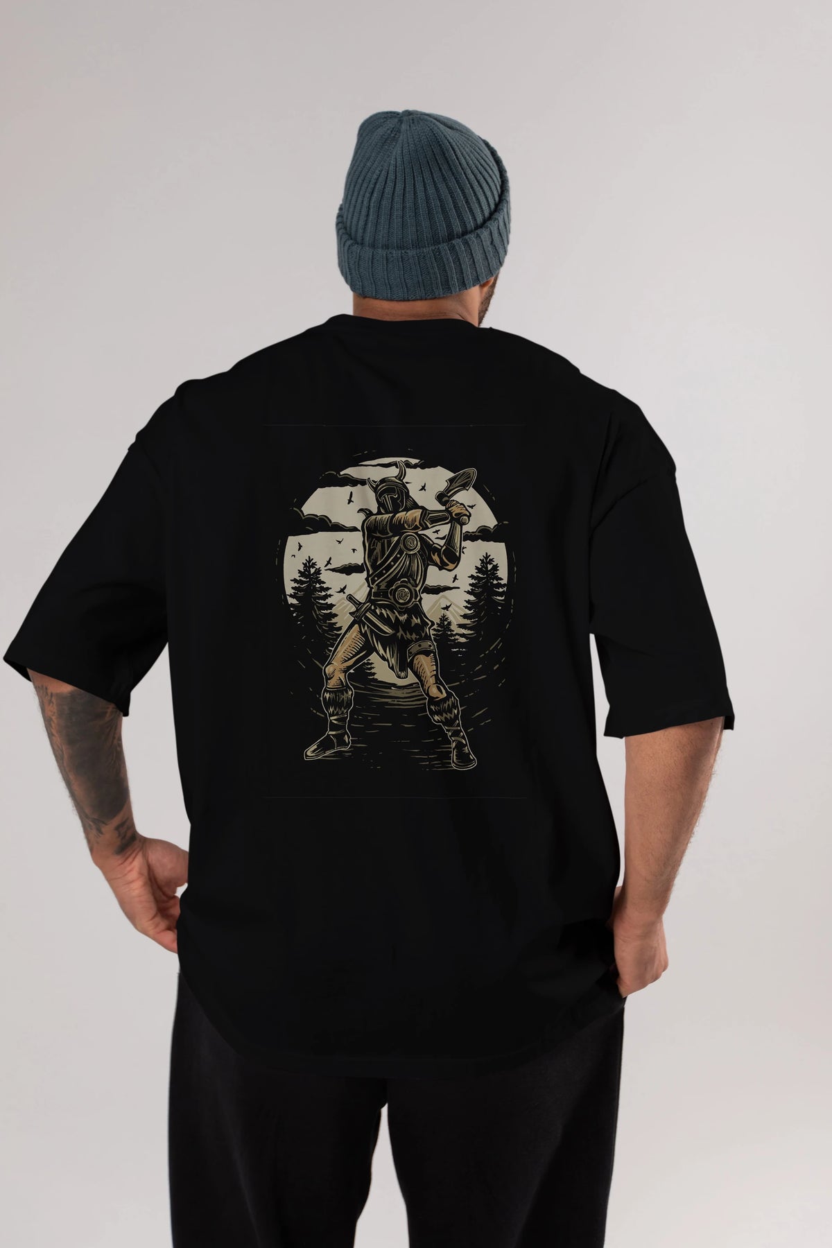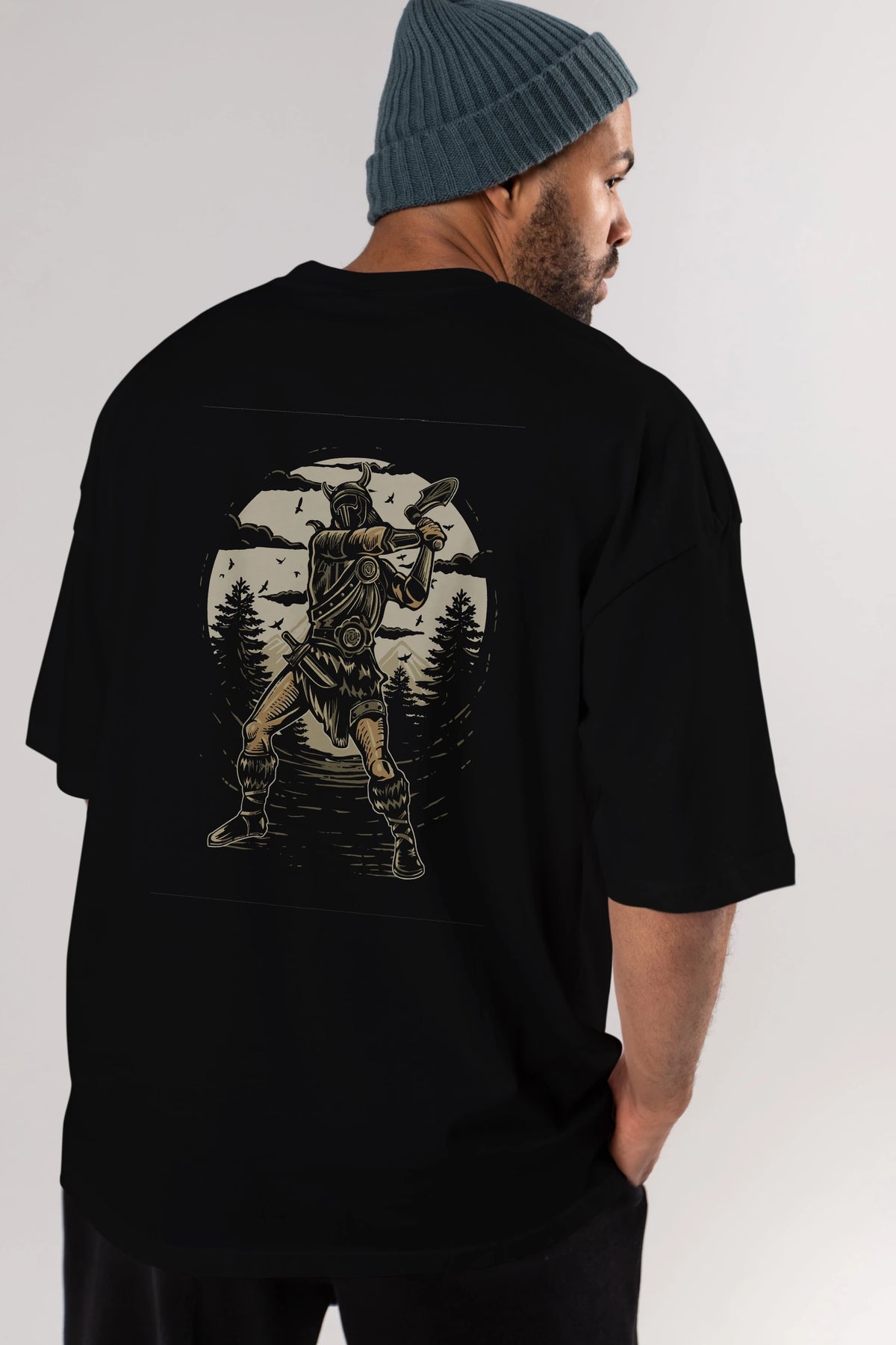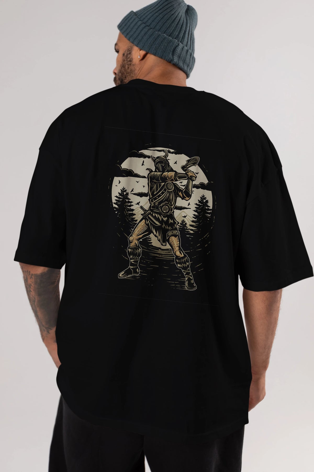 Viking Arka Baskılı Oversize t-shirt Erkek Kadın Unisex %100 Pamuk
