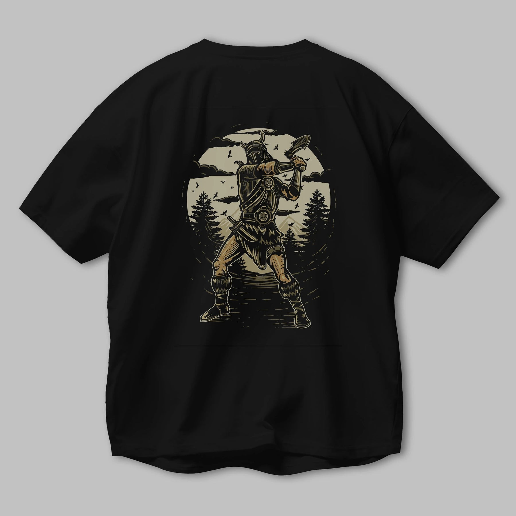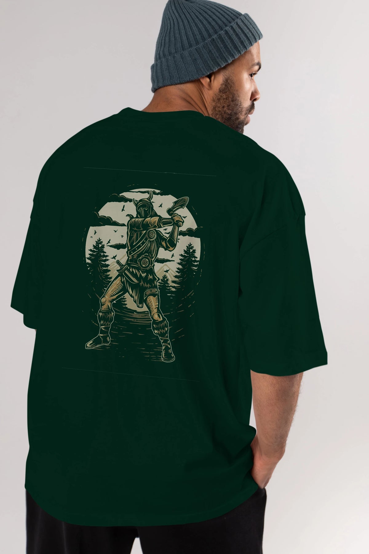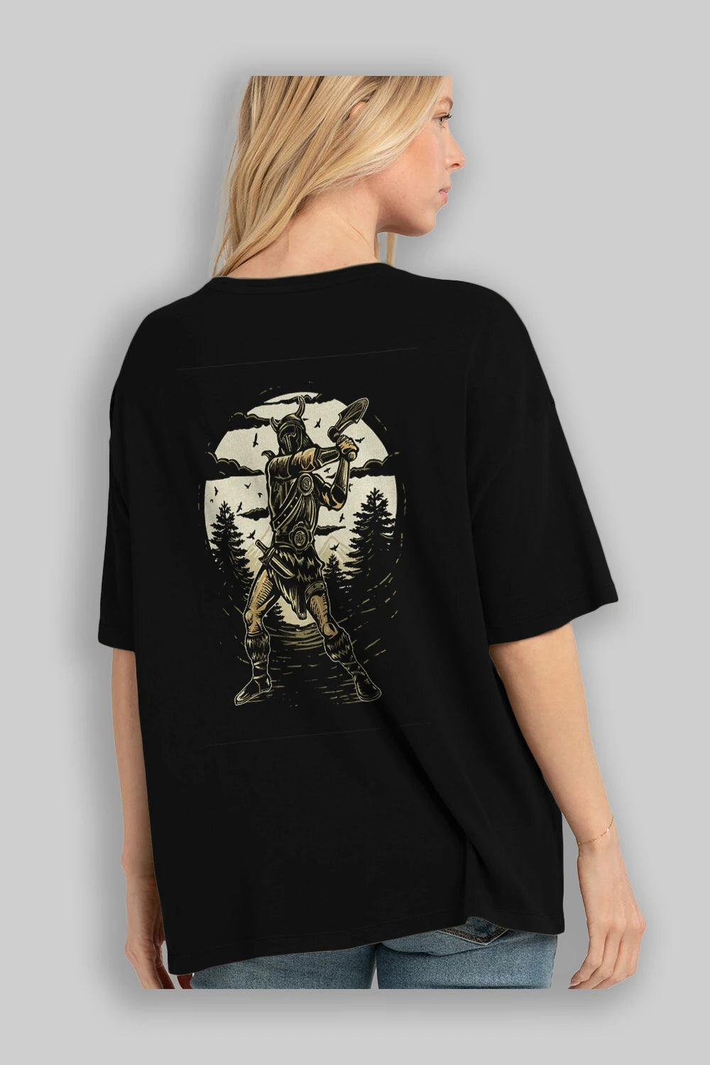 Viking Arka Baskılı Oversize t-shirt Erkek Kadın Unisex %100 Pamuk
