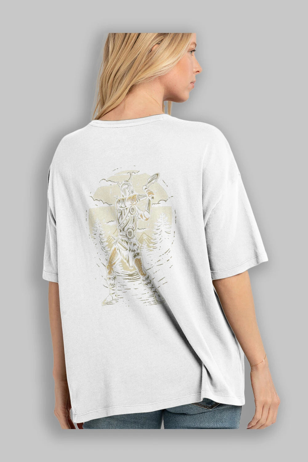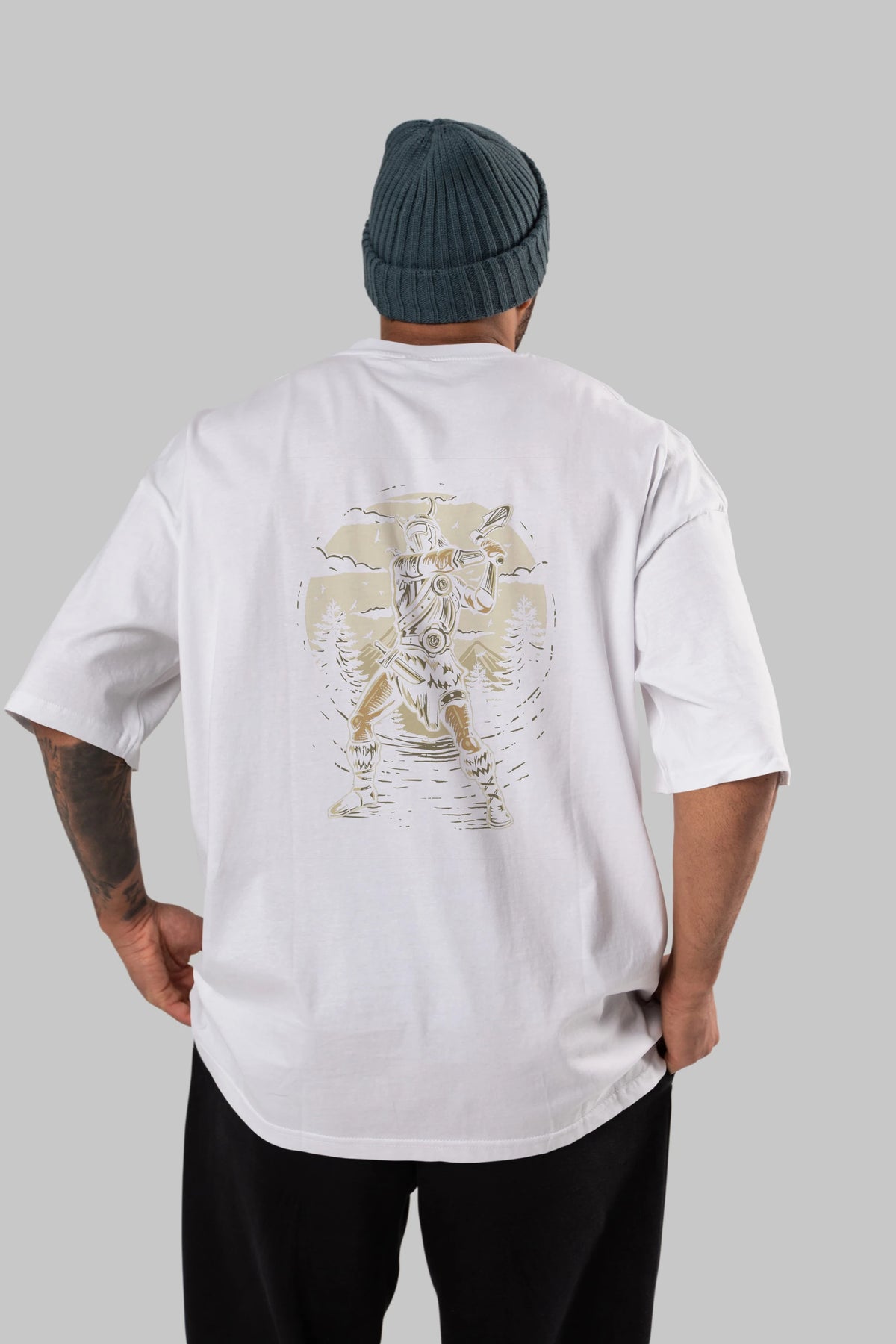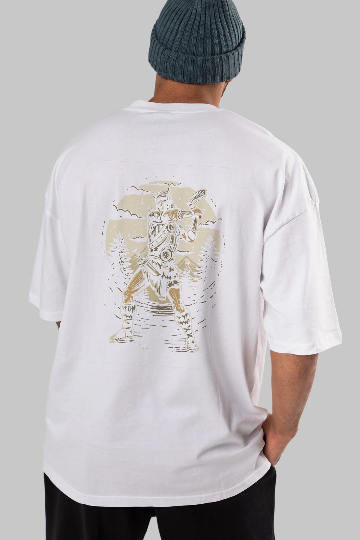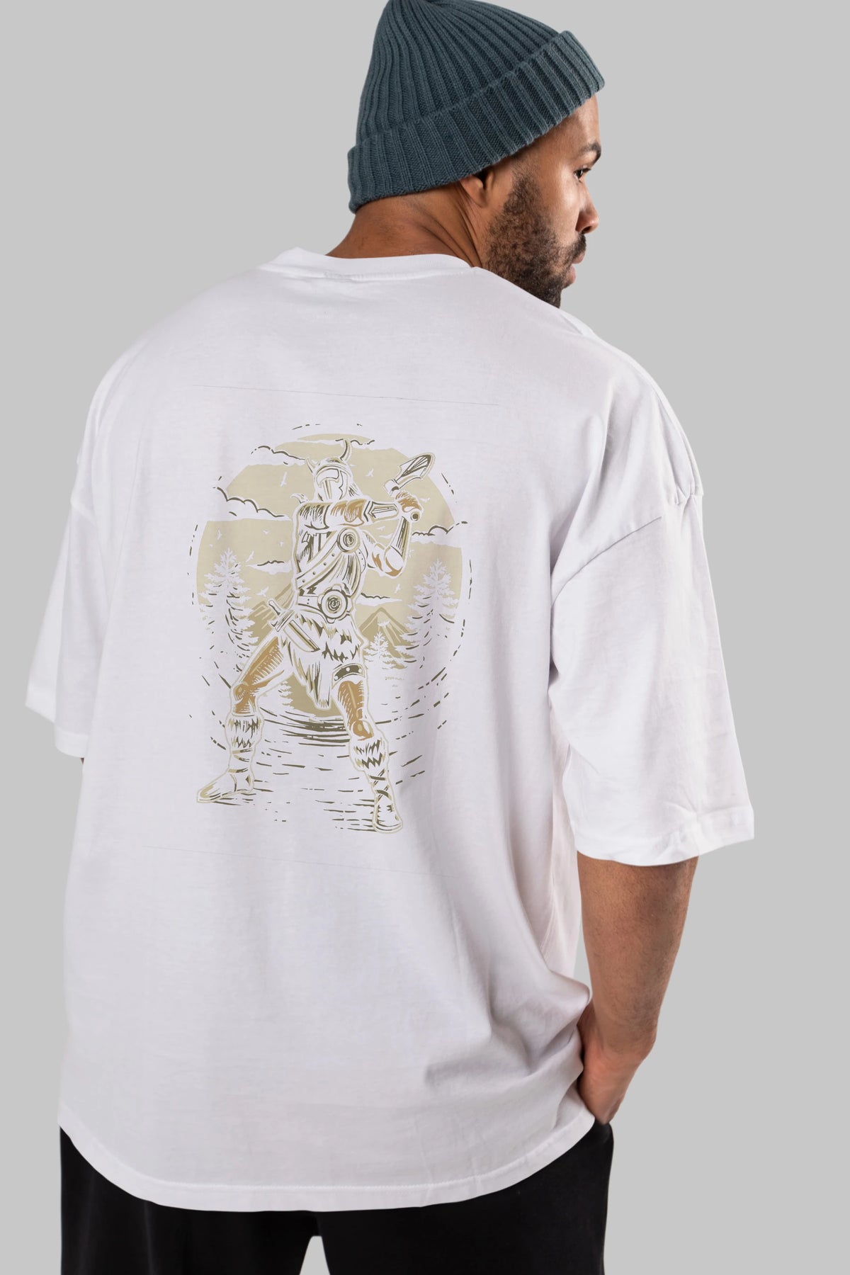 Viking Arka Baskılı Oversize t-shirt Erkek Kadın Unisex %100 Pamuk