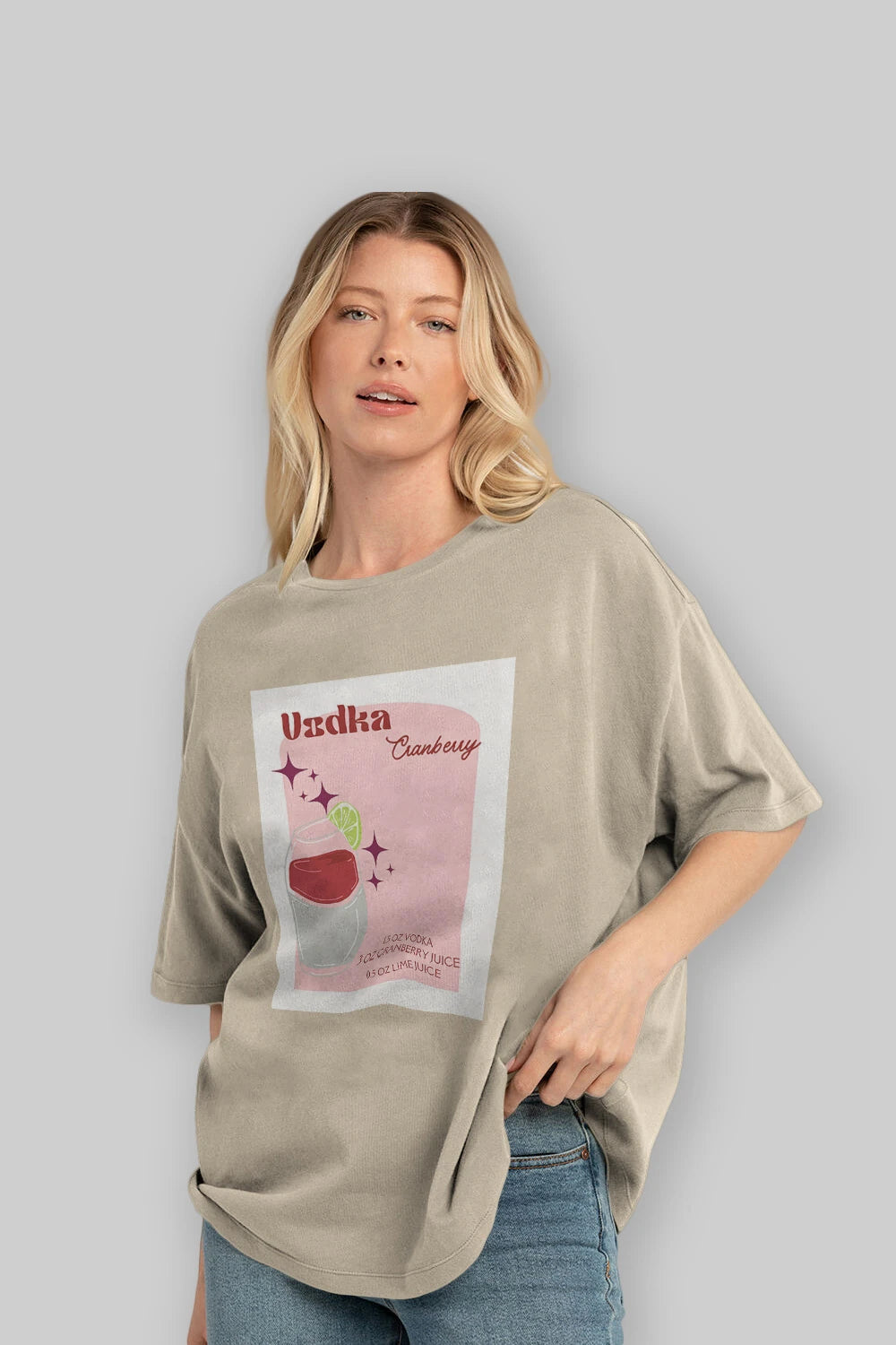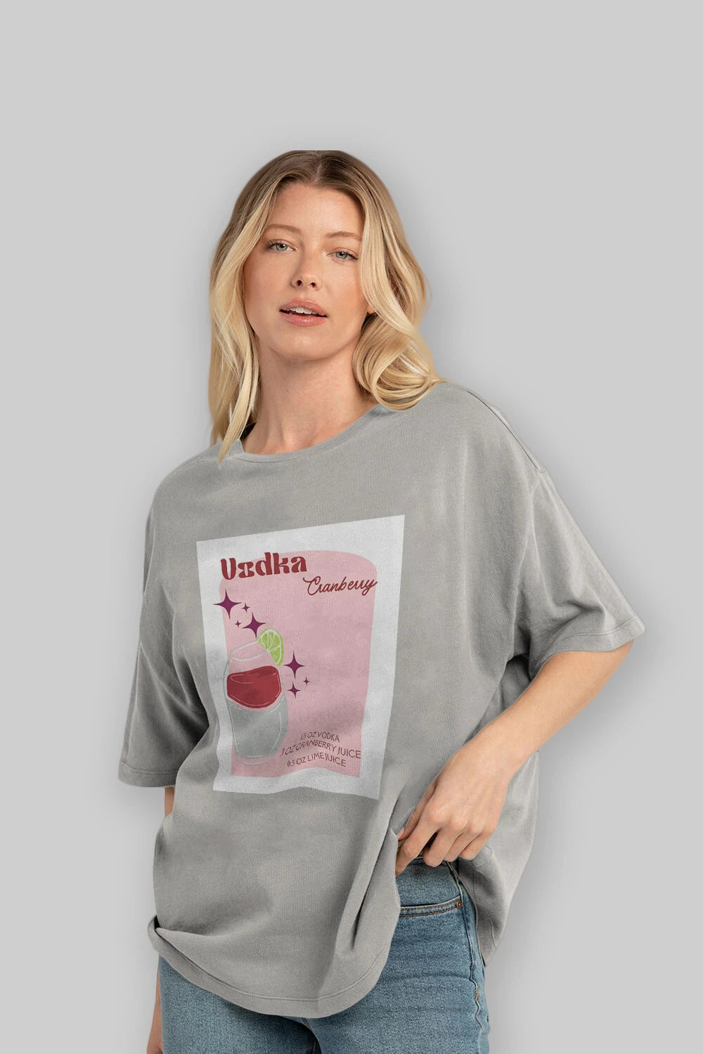 Vodka Cranberry 2 Ön Baskılı Oversize t-shirt Erkek Kadın Unisex %100 Pamuk Bisiklet Yaka tişort