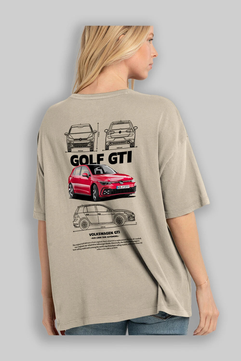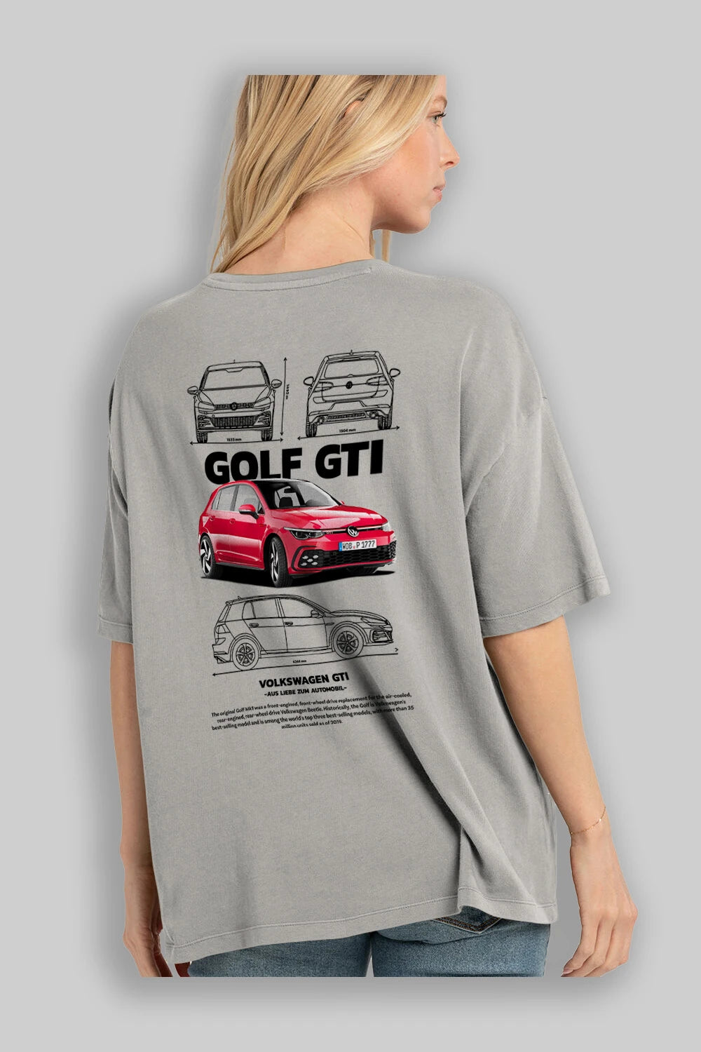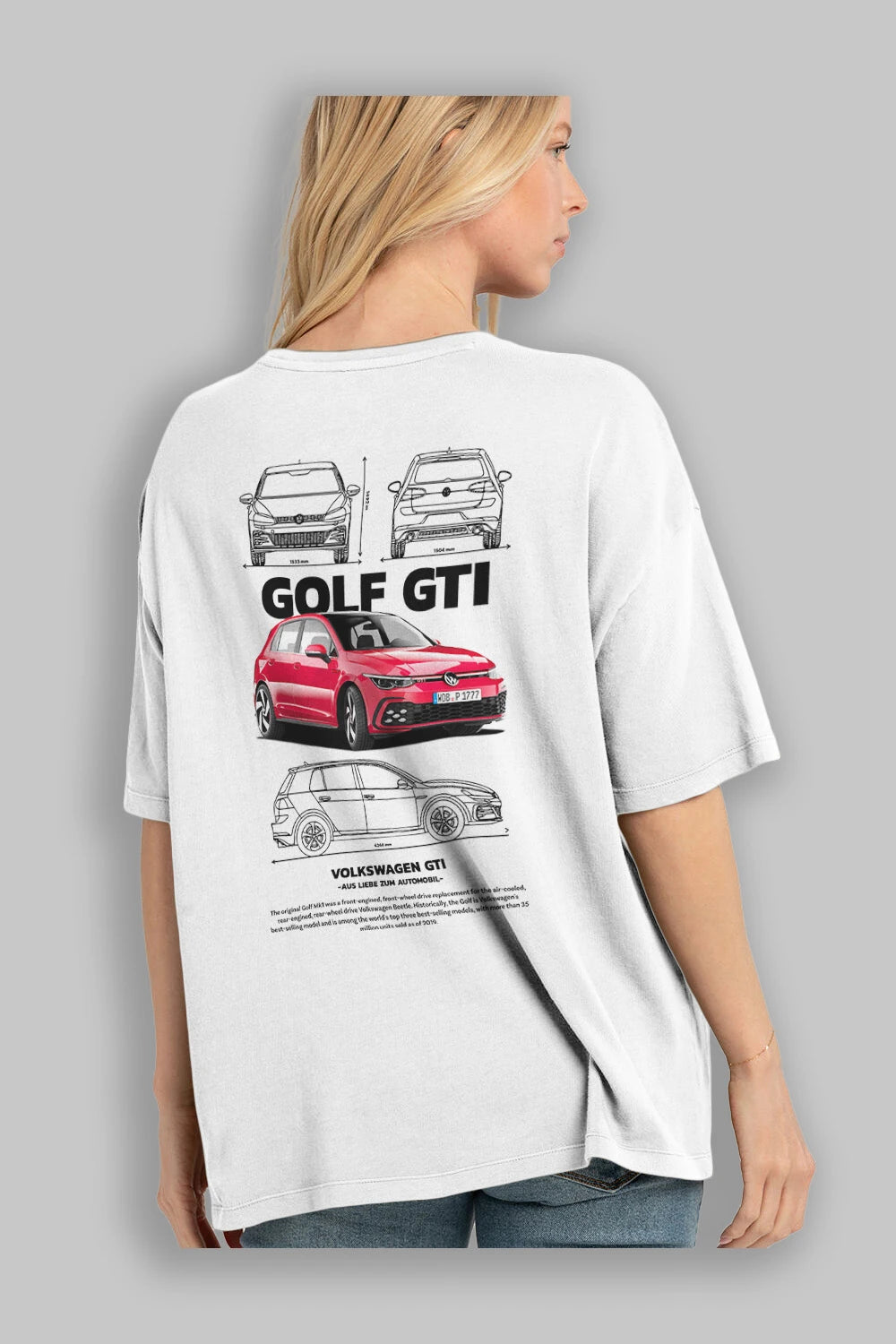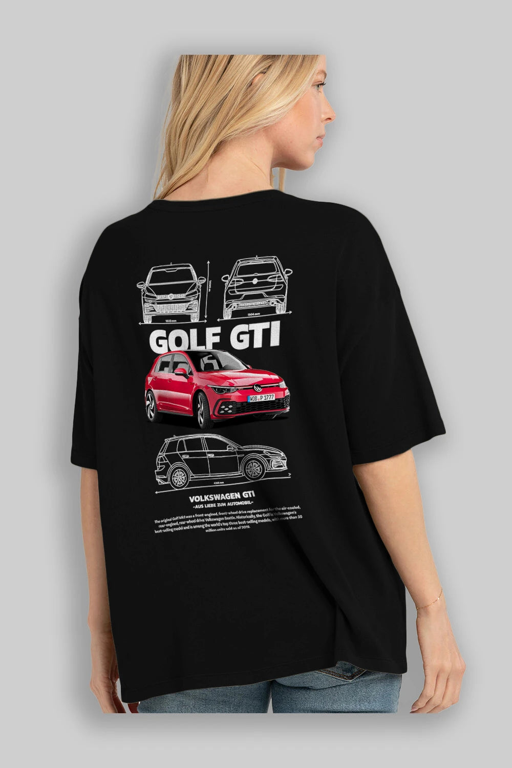 VOLKSWAGEN Golf GTI Arka Baskılı Oversize t-shirt Erkek Kadın Unisex %100 Pamuk Bisiklet Yaka tişort