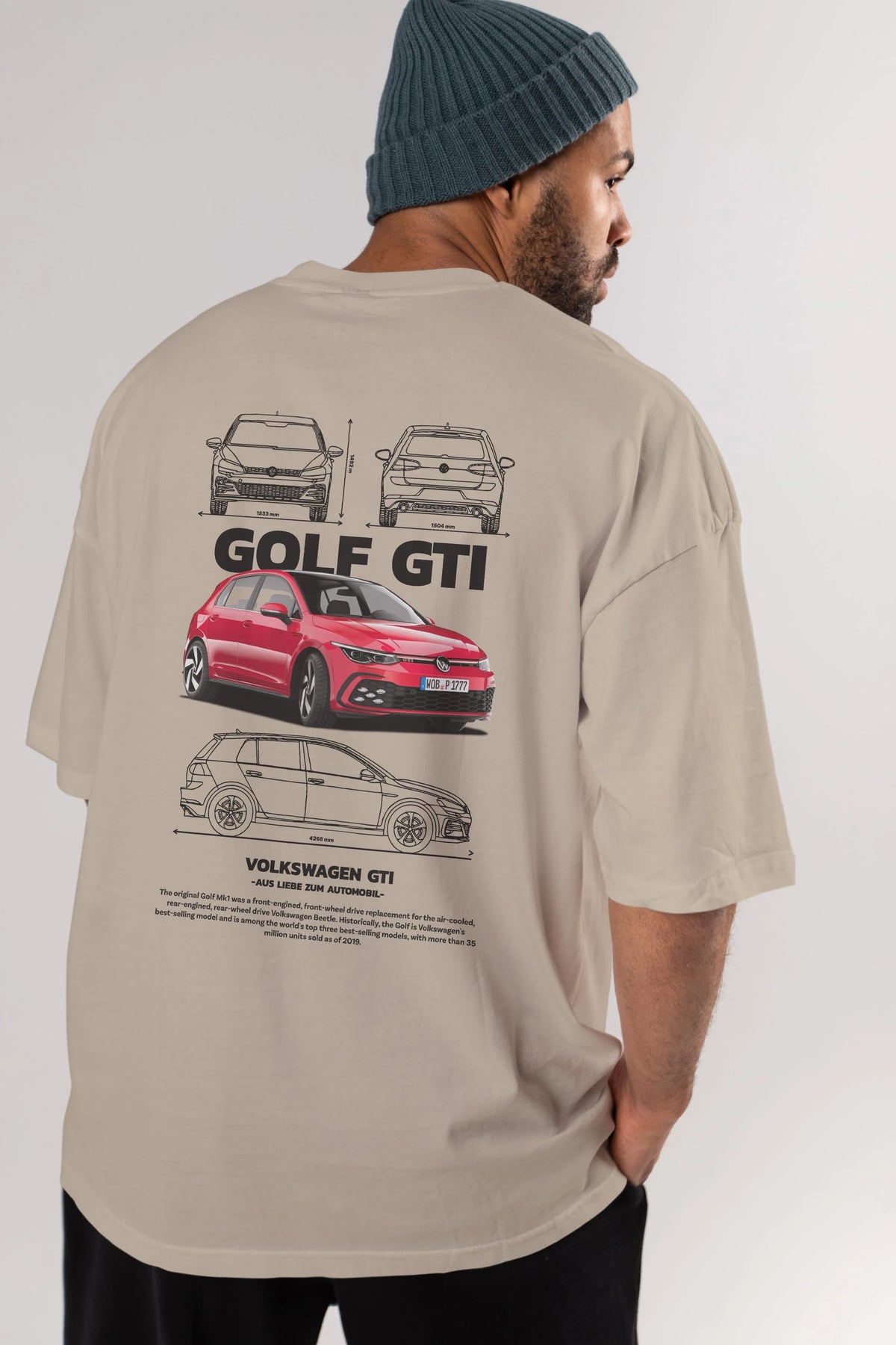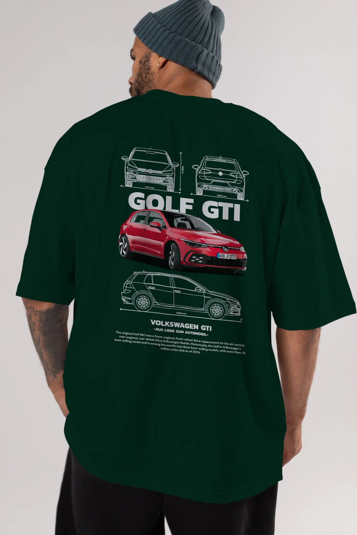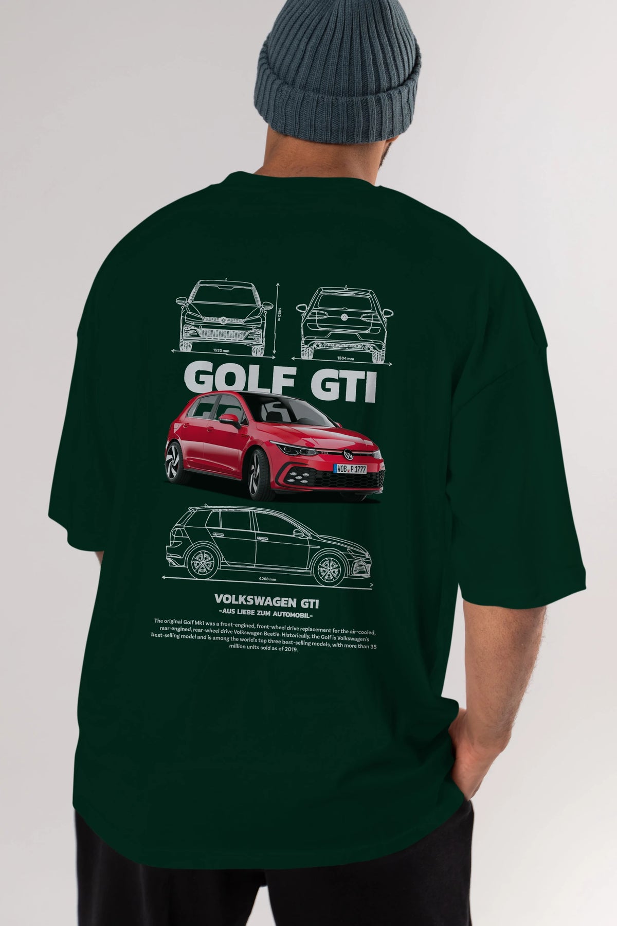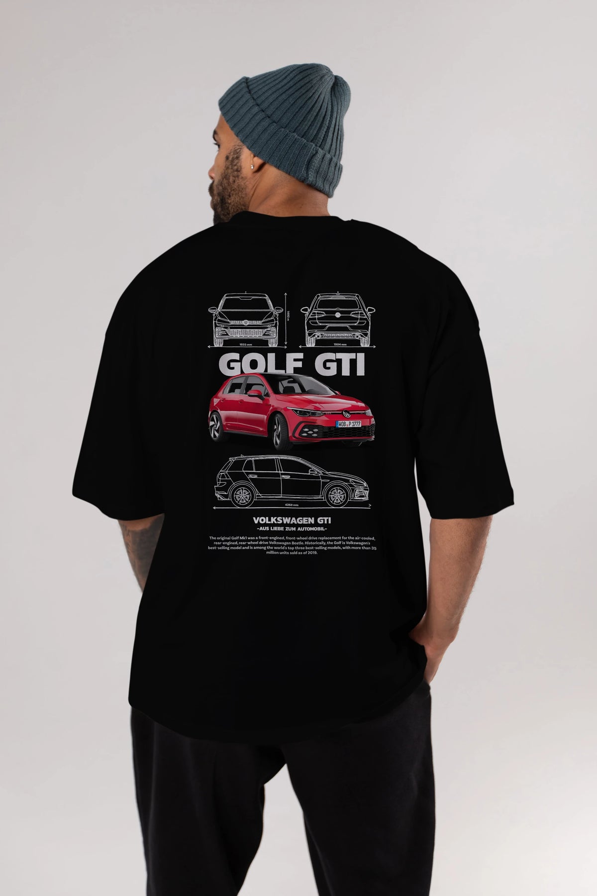 VOLKSWAGEN Golf GTI Arka Baskılı Oversize t-shirt Erkek Kadın Unisex %100 Pamuk Bisiklet Yaka tişort