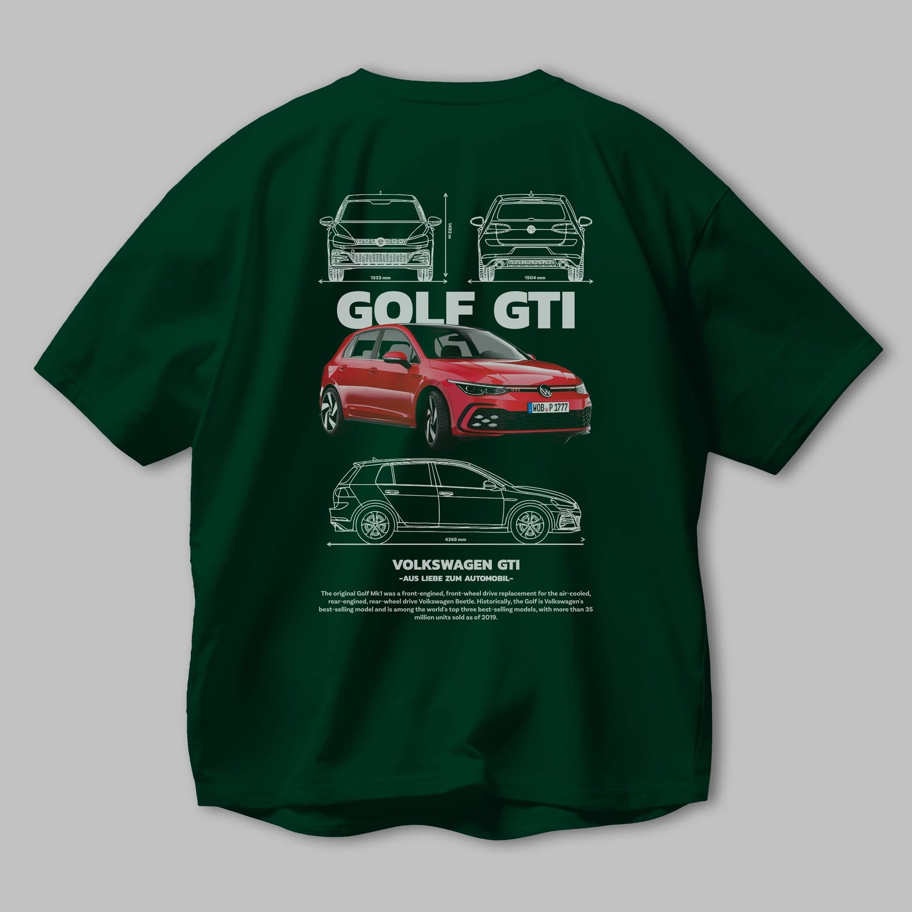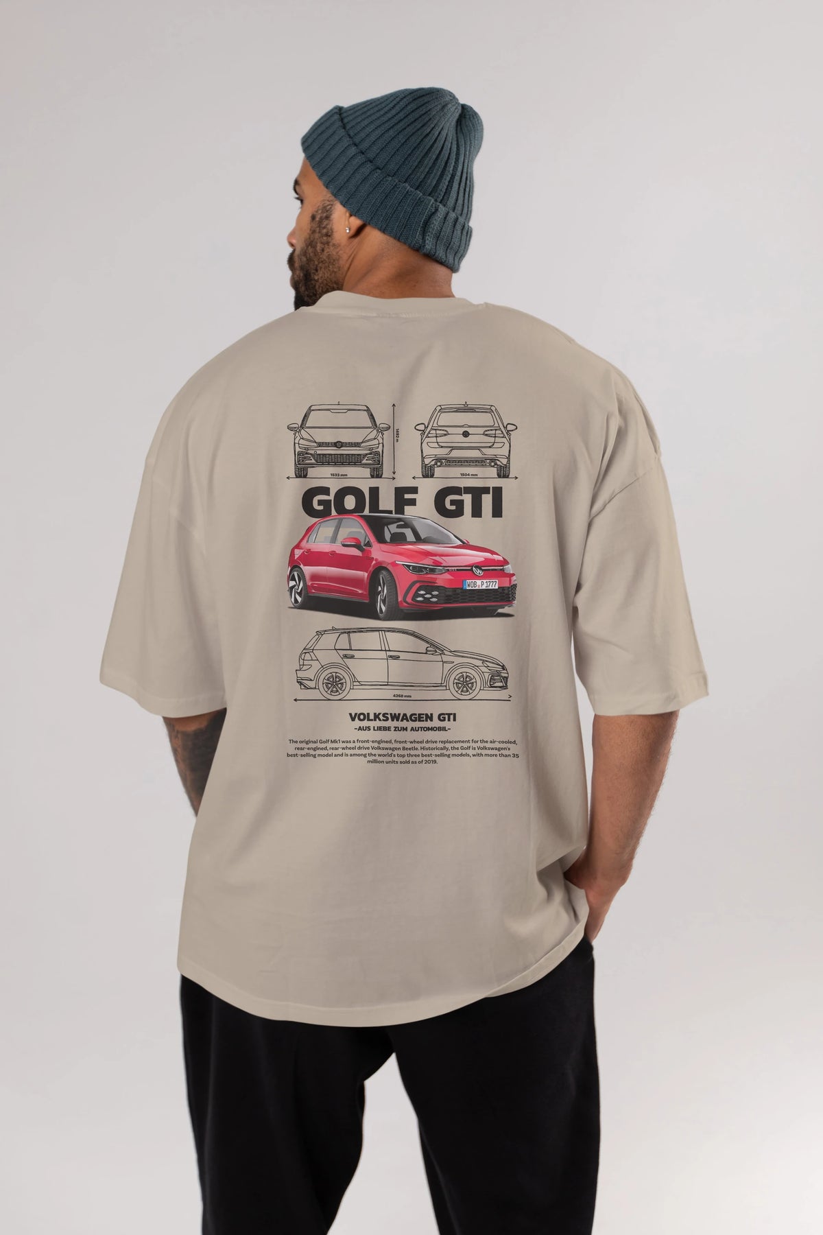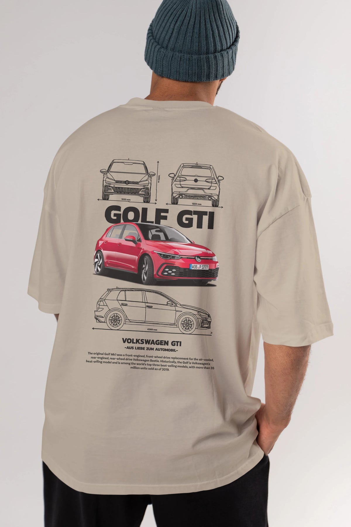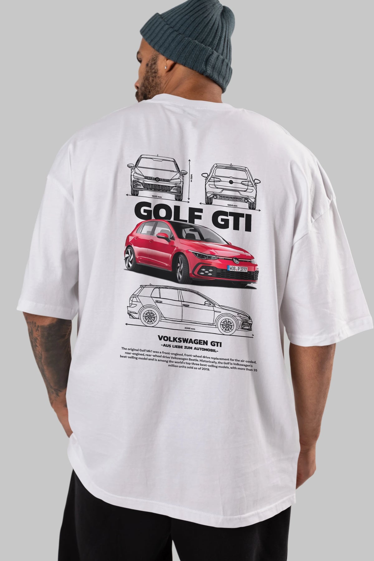 VOLKSWAGEN Golf GTI Arka Baskılı Oversize t-shirt Erkek Kadın Unisex %100 Pamuk Bisiklet Yaka tişort