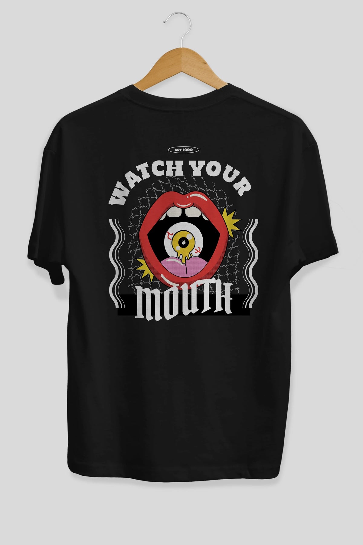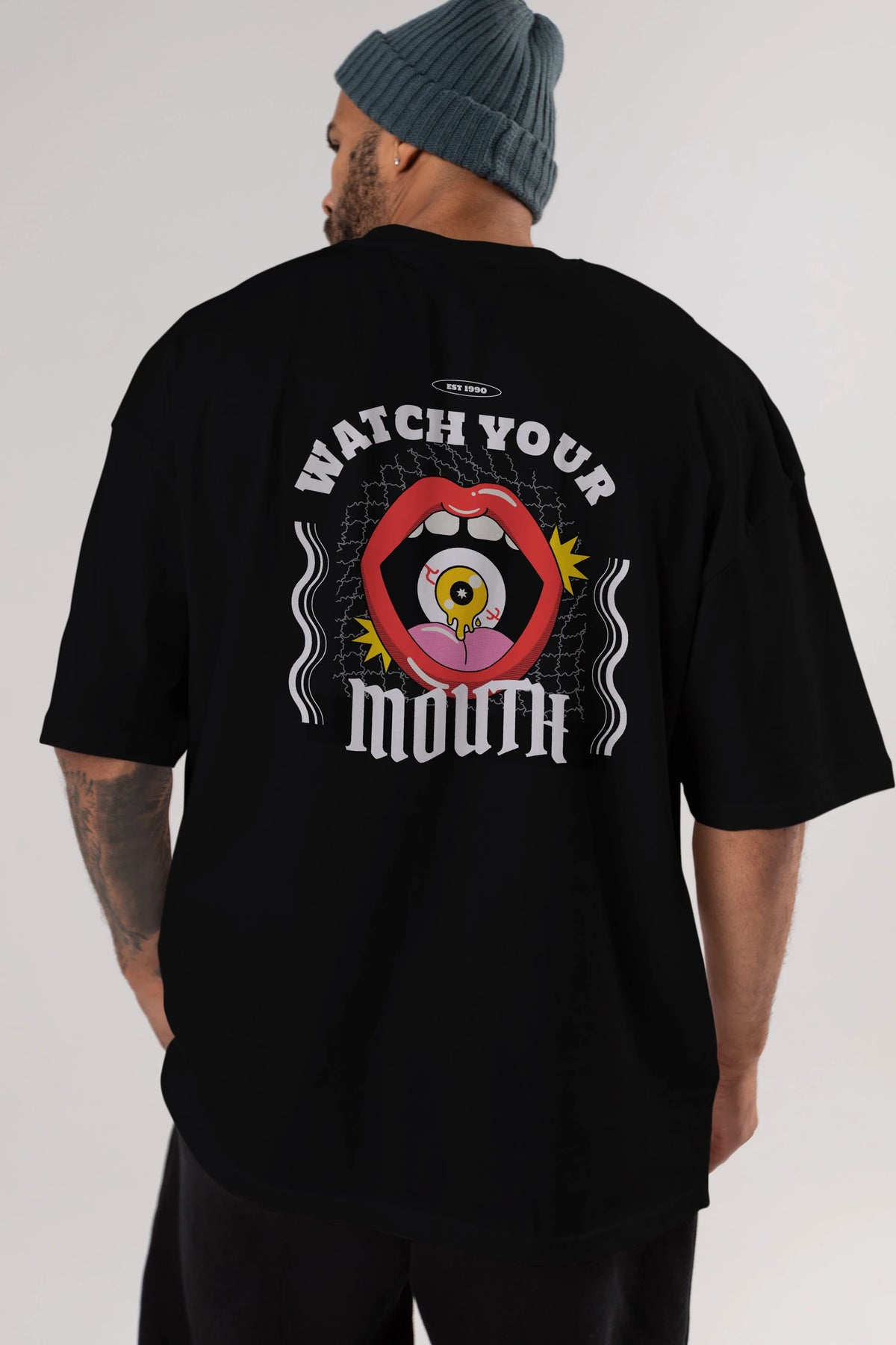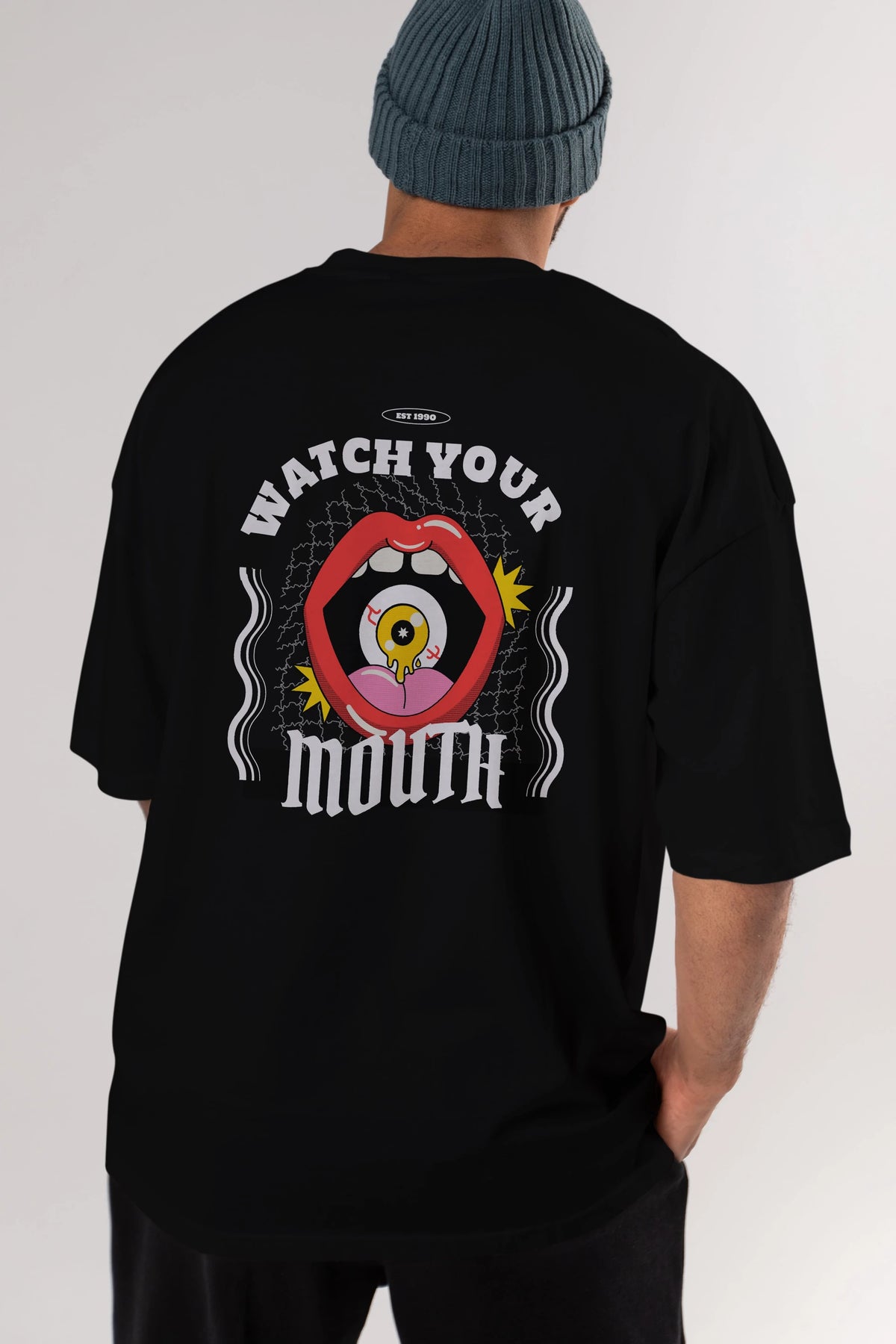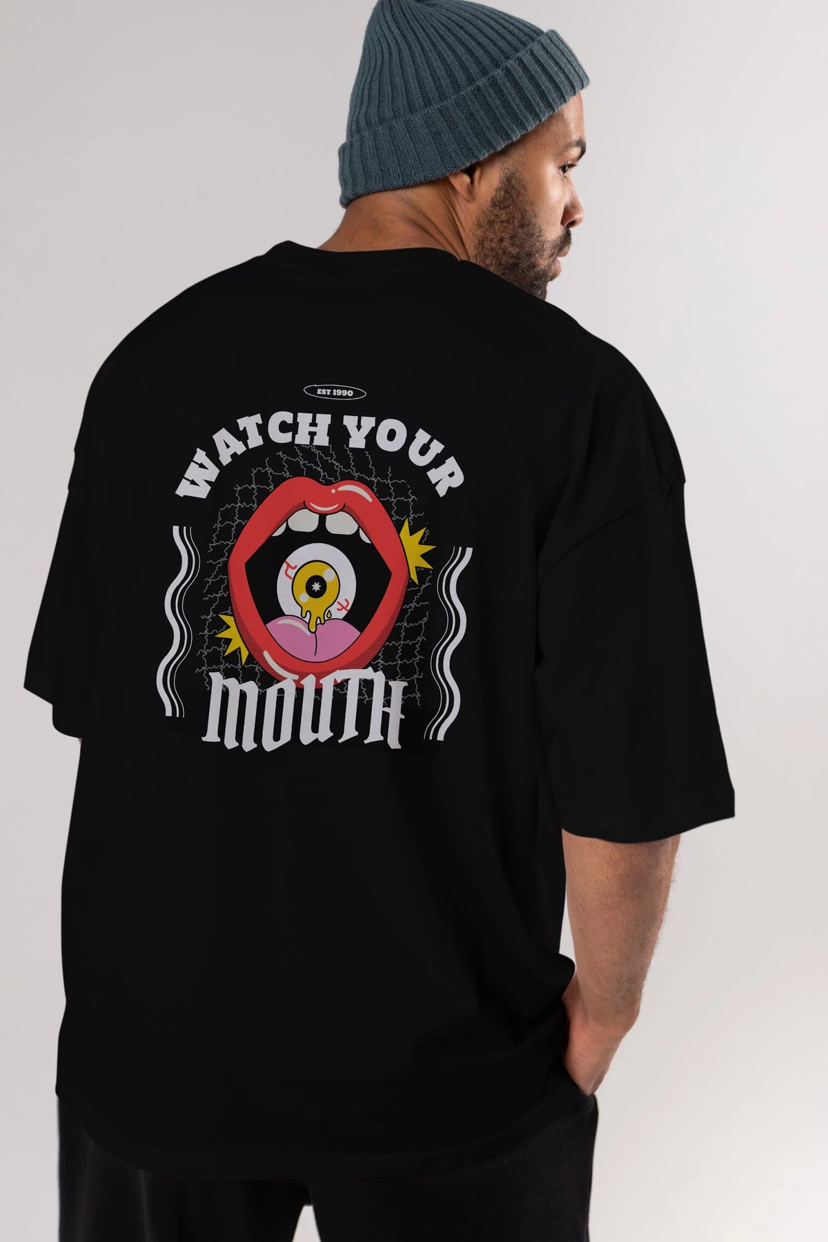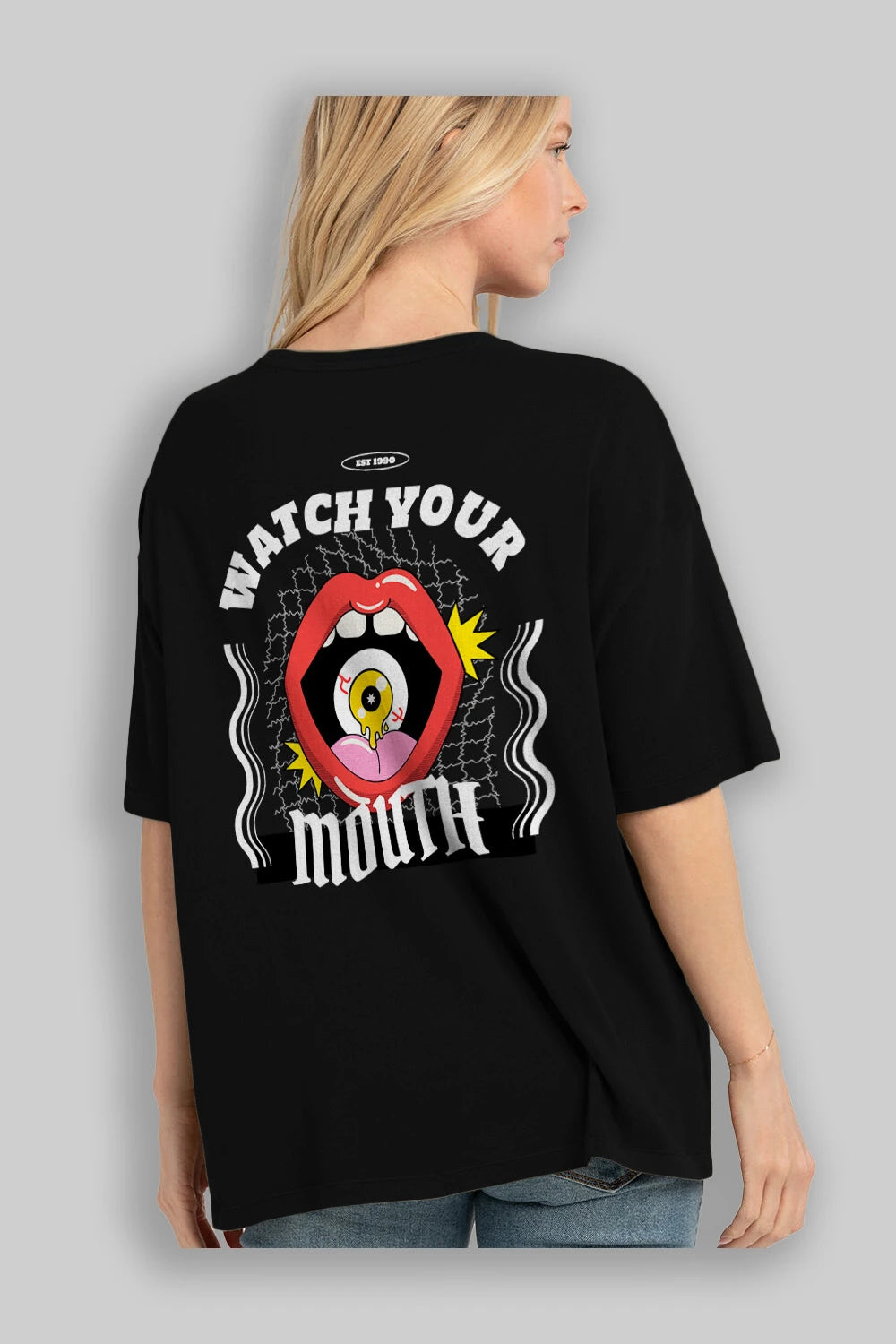 Watch Your Mouth Arka Baskılı Oversize t-shirt Erkek Kadın Unisex