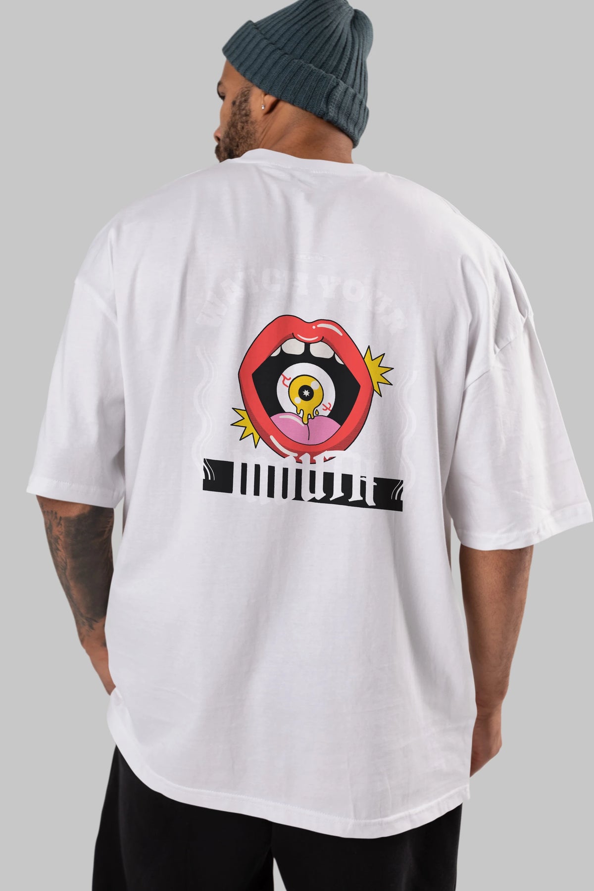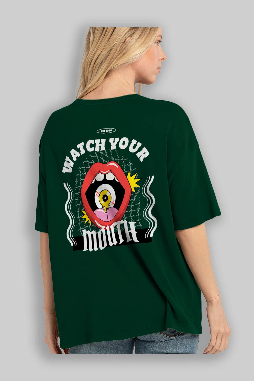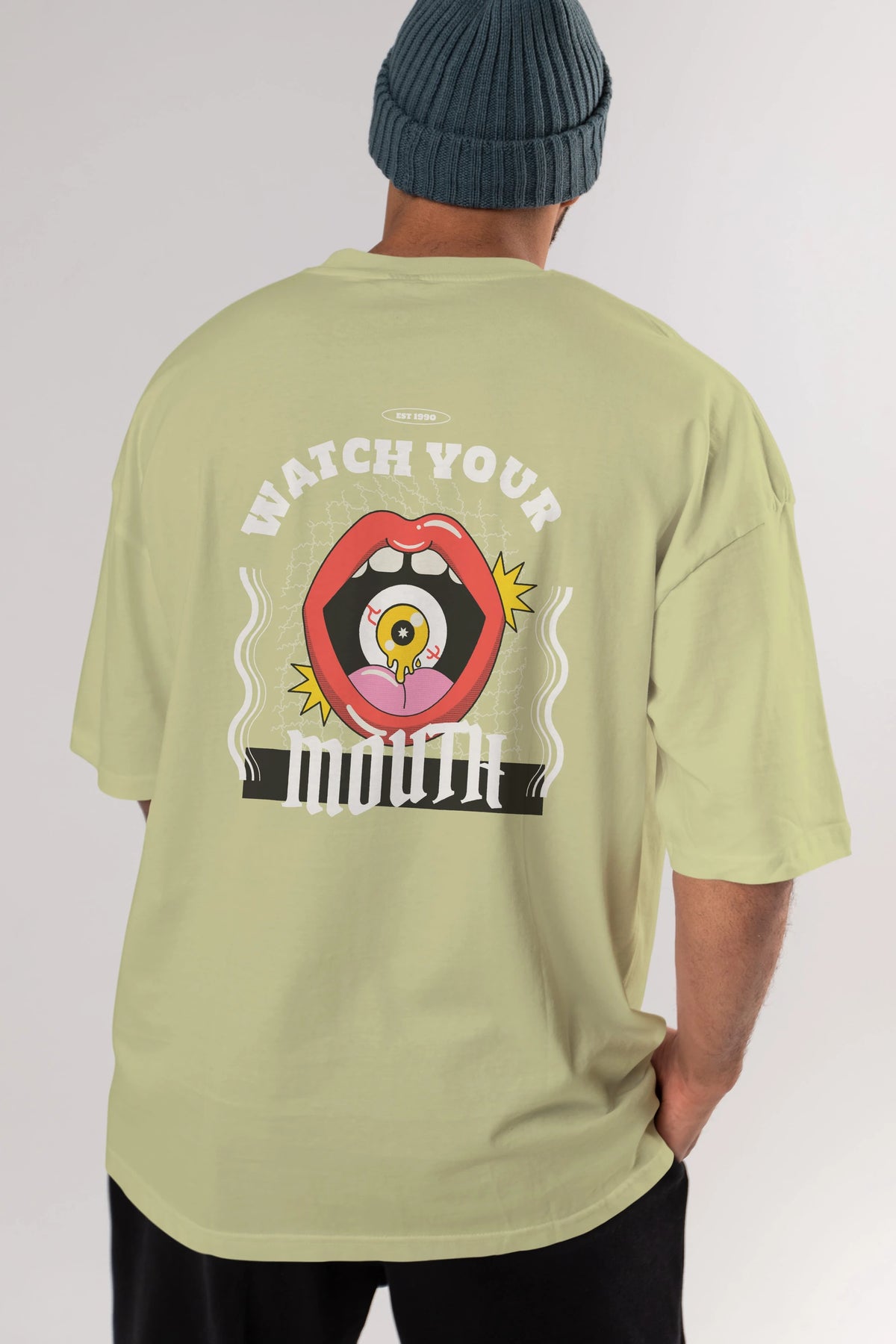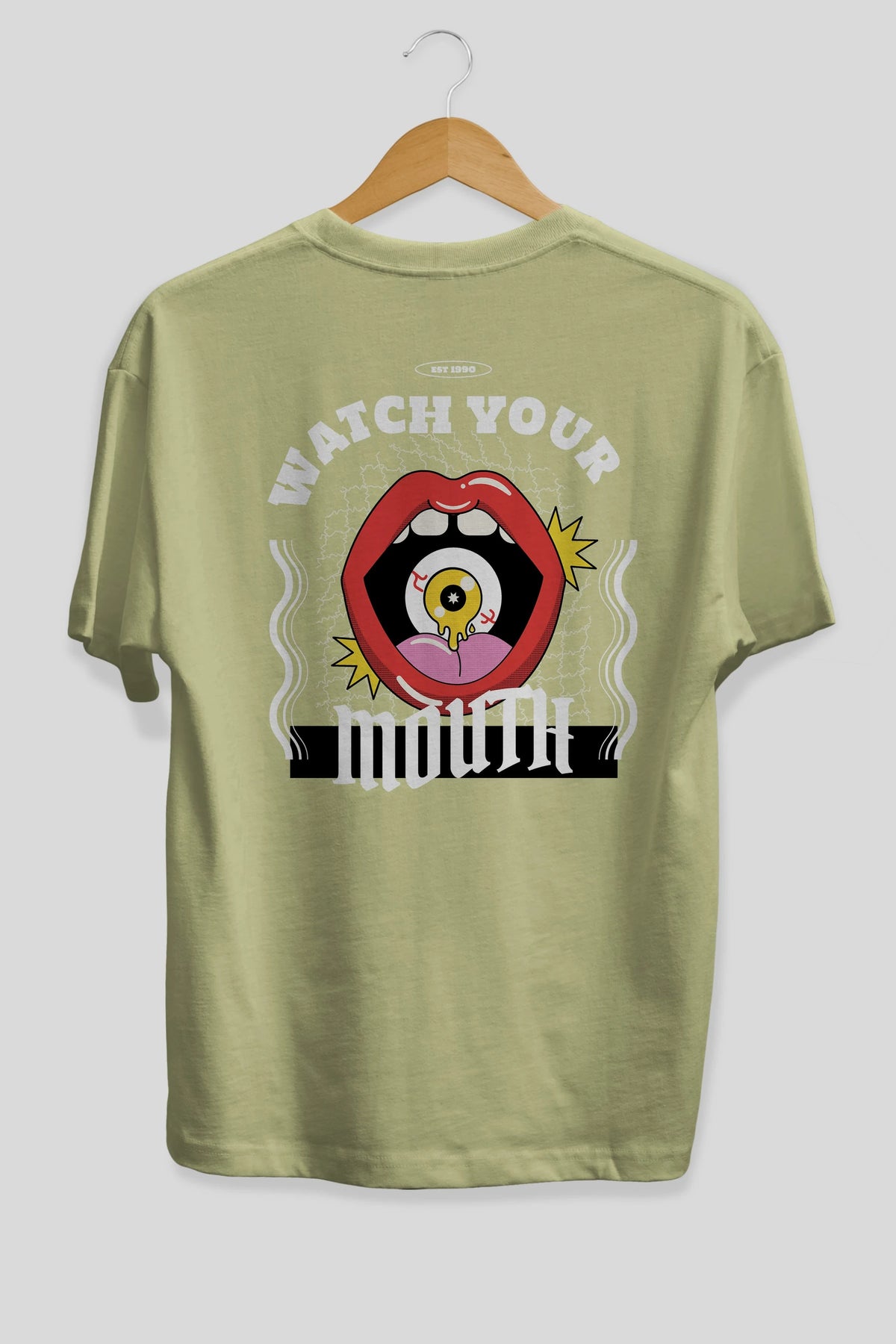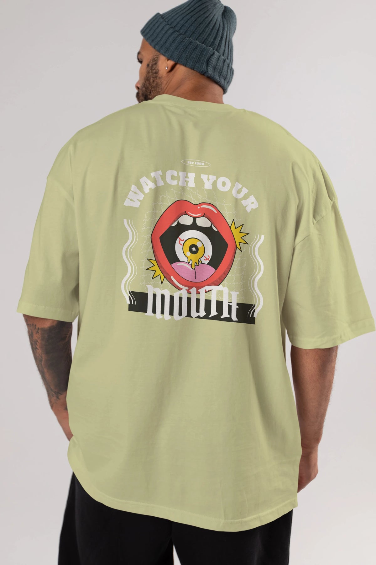 Watch Your Mouth Arka Baskılı Oversize t-shirt Erkek Kadın Unisex