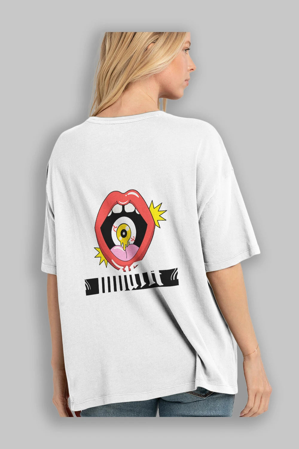 Hem erkekler hem de kadınlar için uygun, taze, modern bir baskıya sahip baskılı oversize t-shirt.