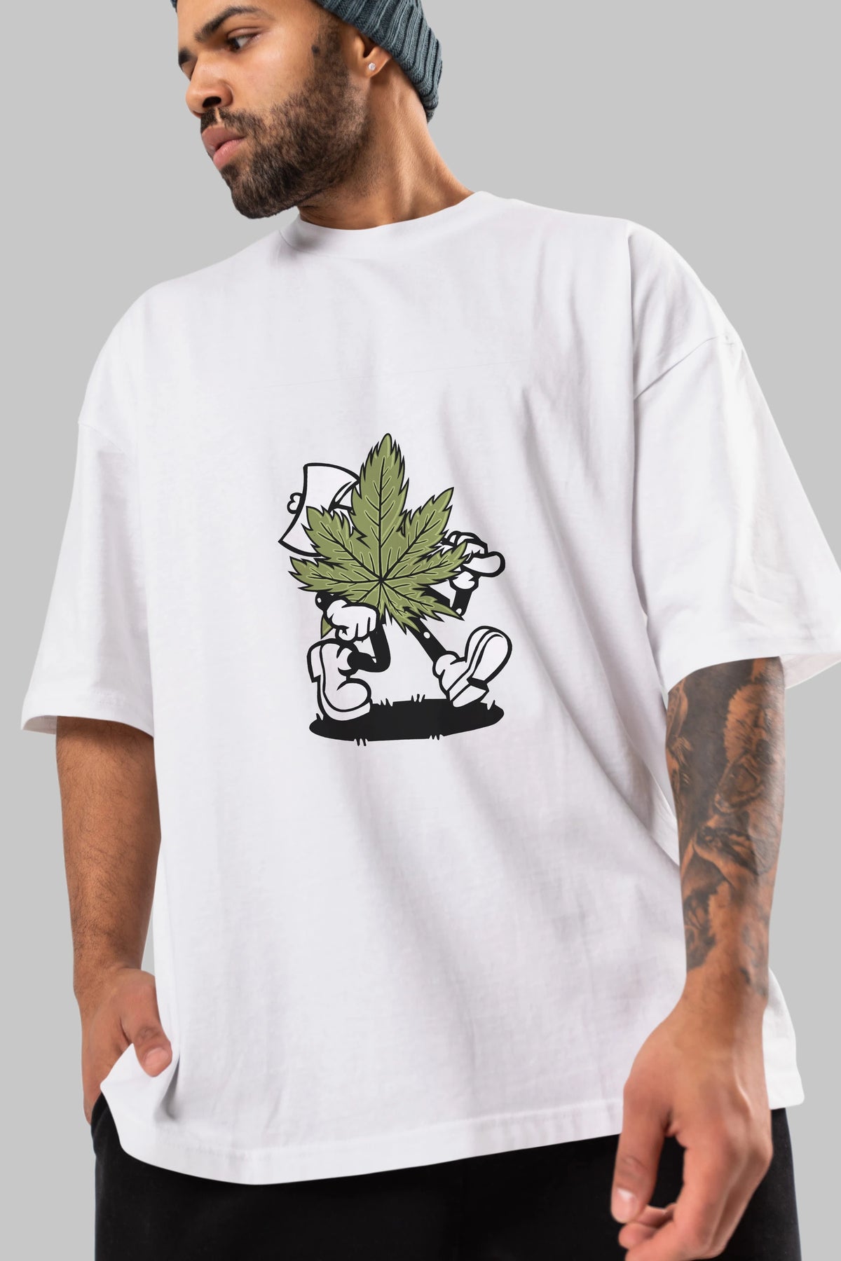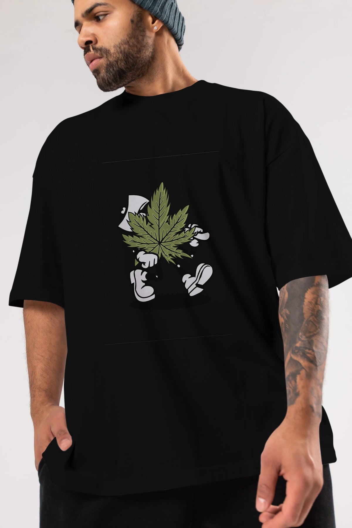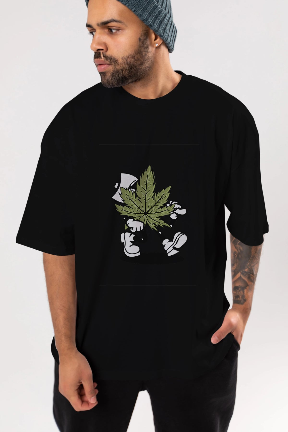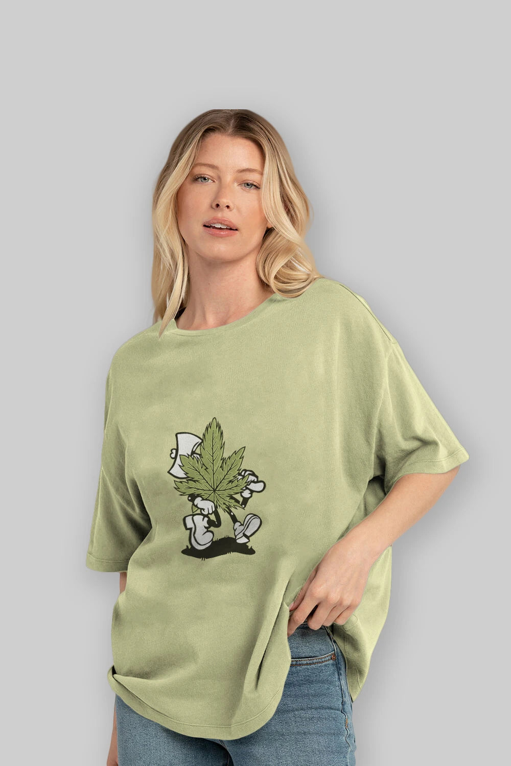 Weed Ön Baskılı Oversize t-shirt Erkek Kadın Unisex %100 Pamuk tişort