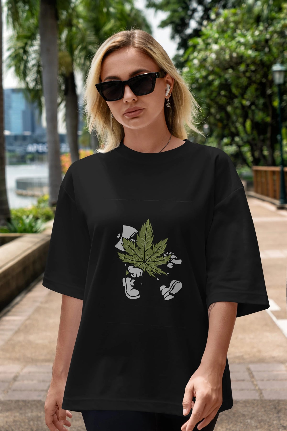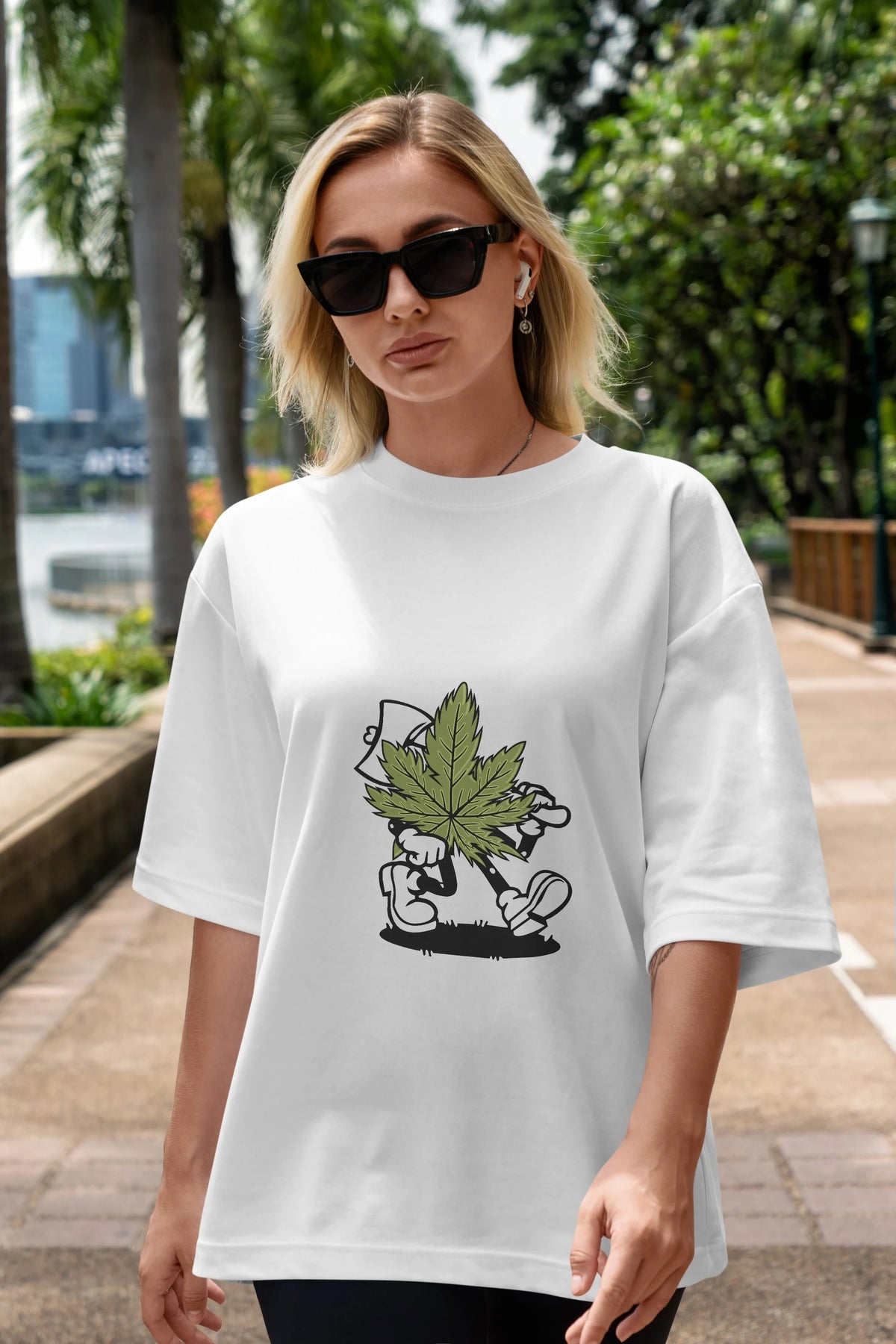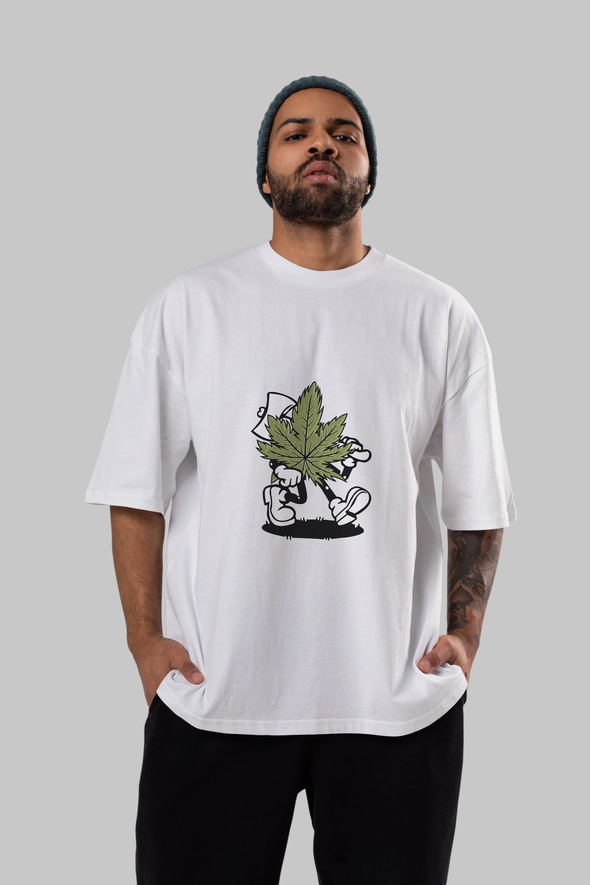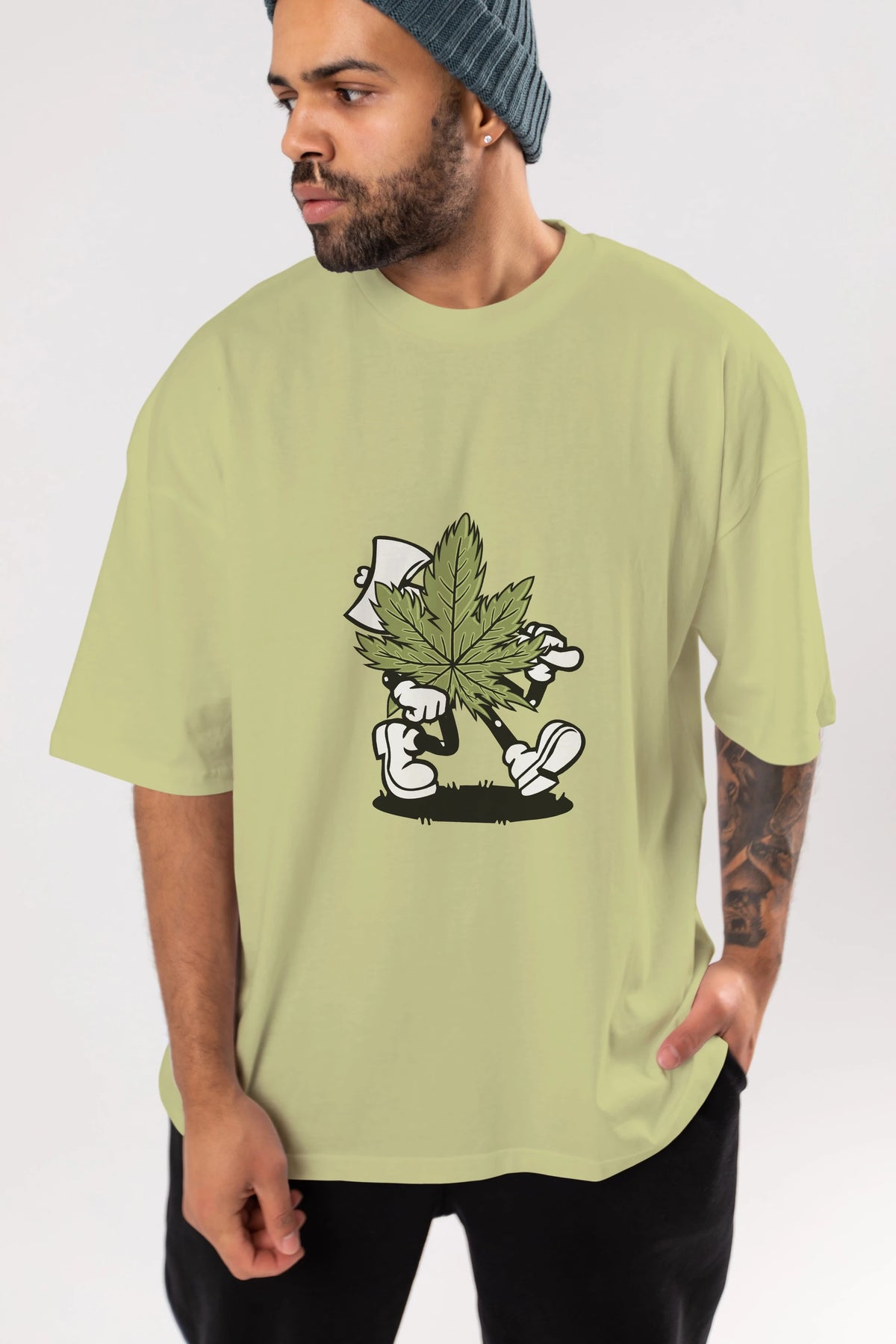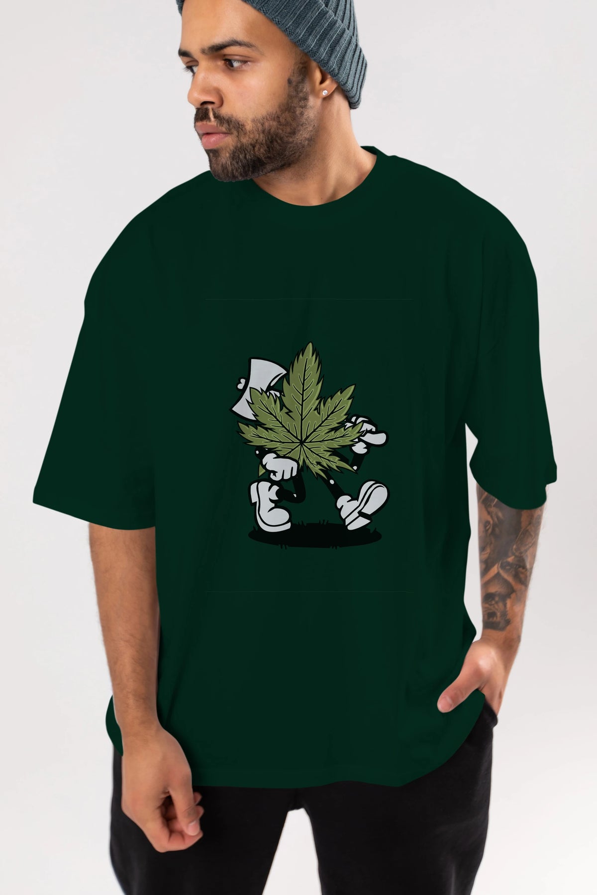 Weed Ön Baskılı Oversize t-shirt Erkek Kadın Unisex %100 Pamuk tişort