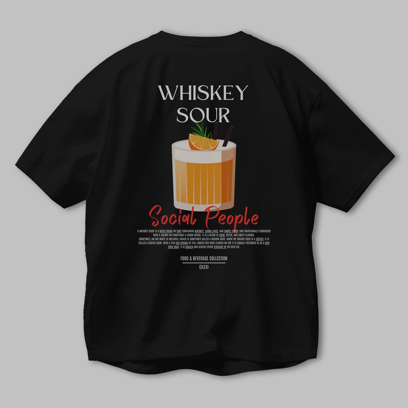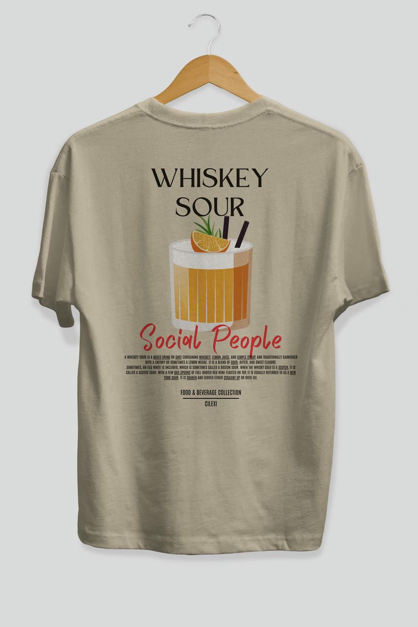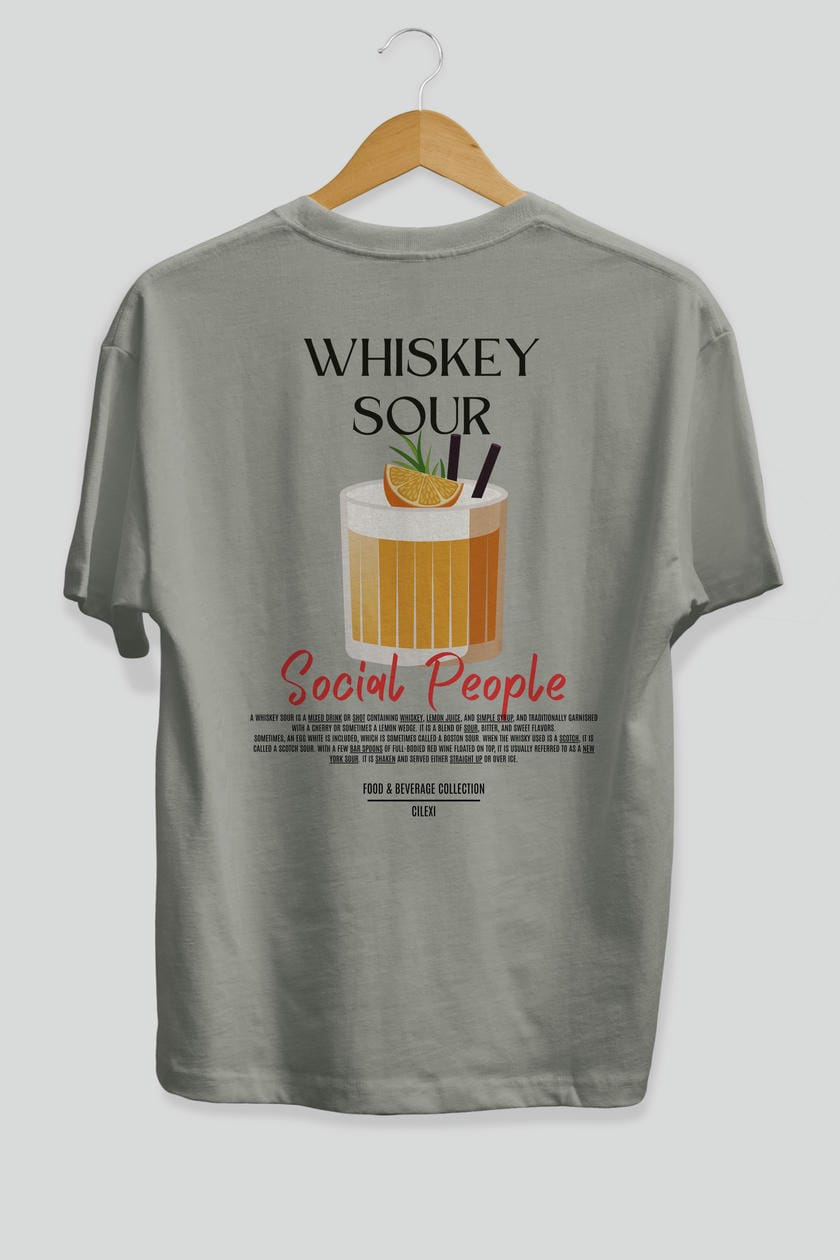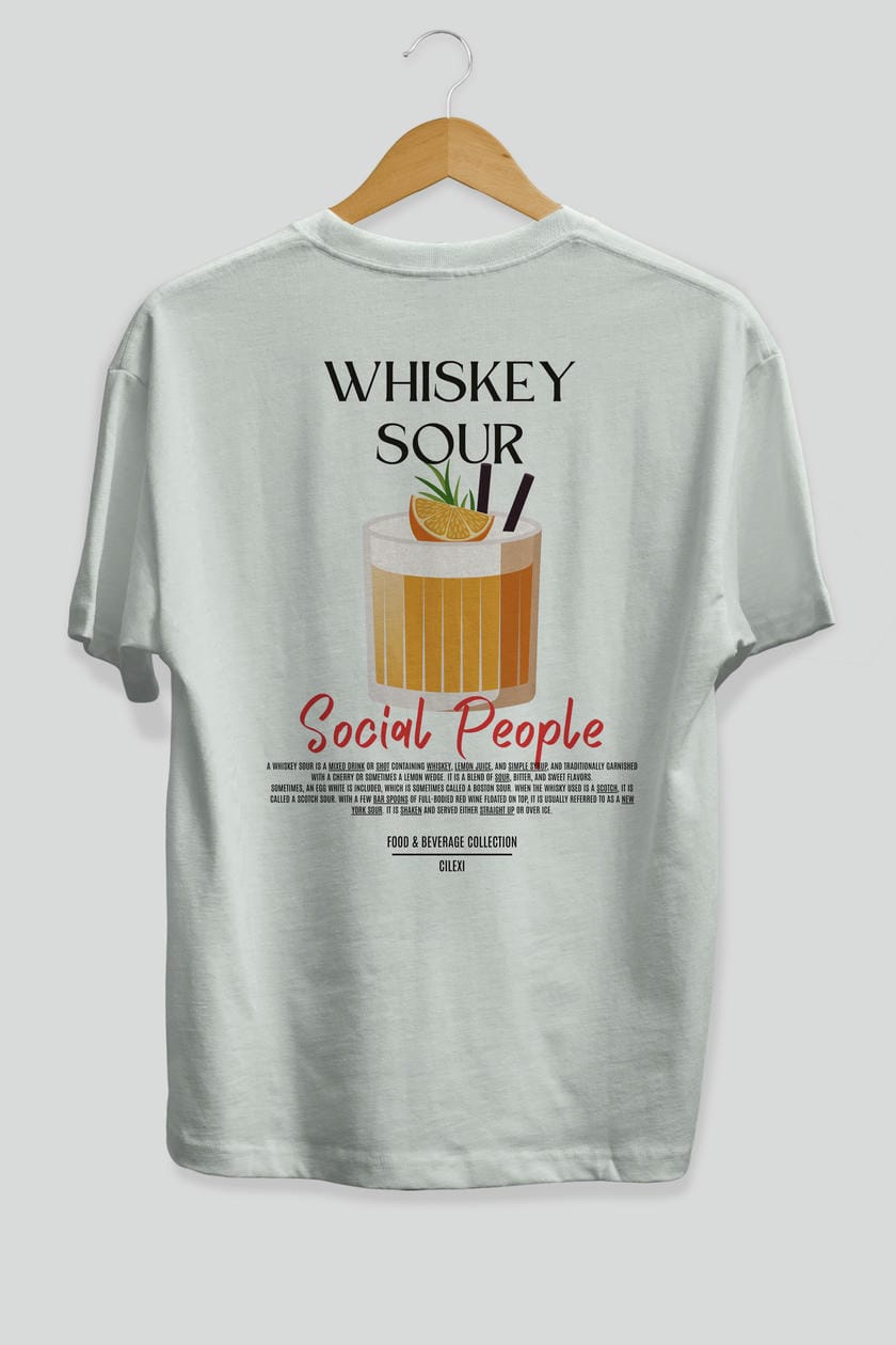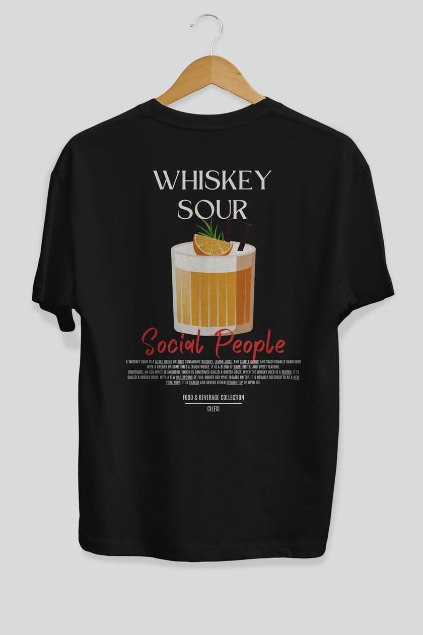 Whıskey Sour Kokteyl Serisi Baskılı Oversize t-shirt Erkek Kadın Unisex %100 Pamuk Bisiklet Yaka tişort