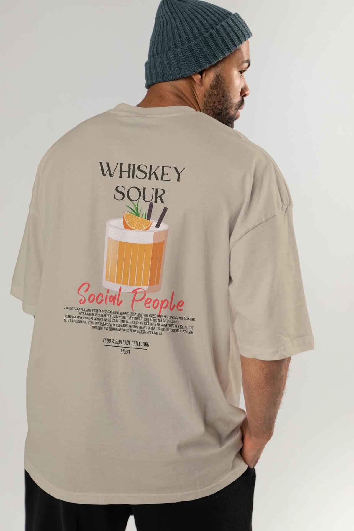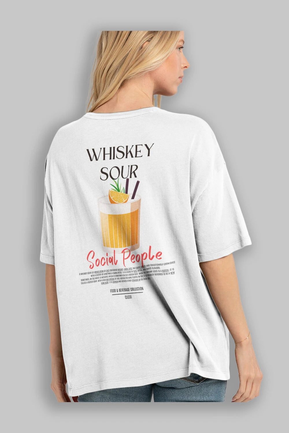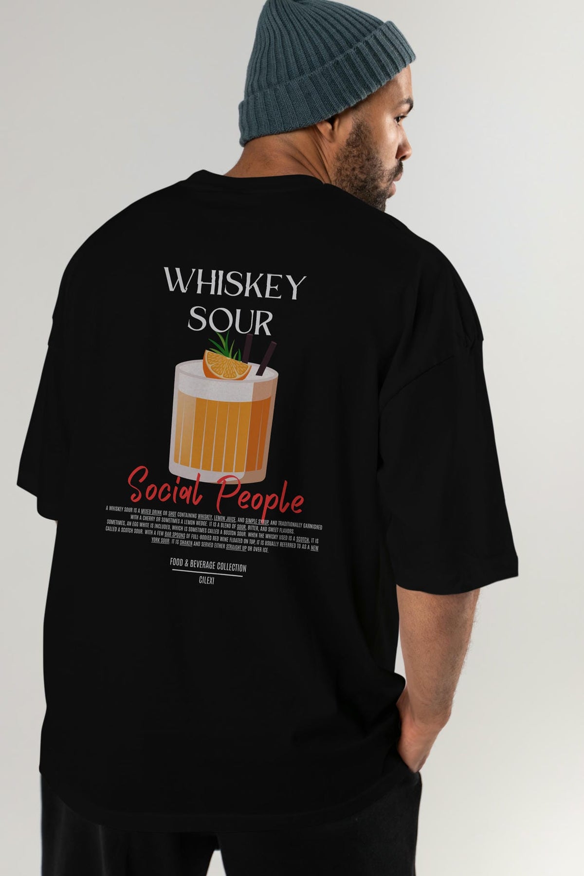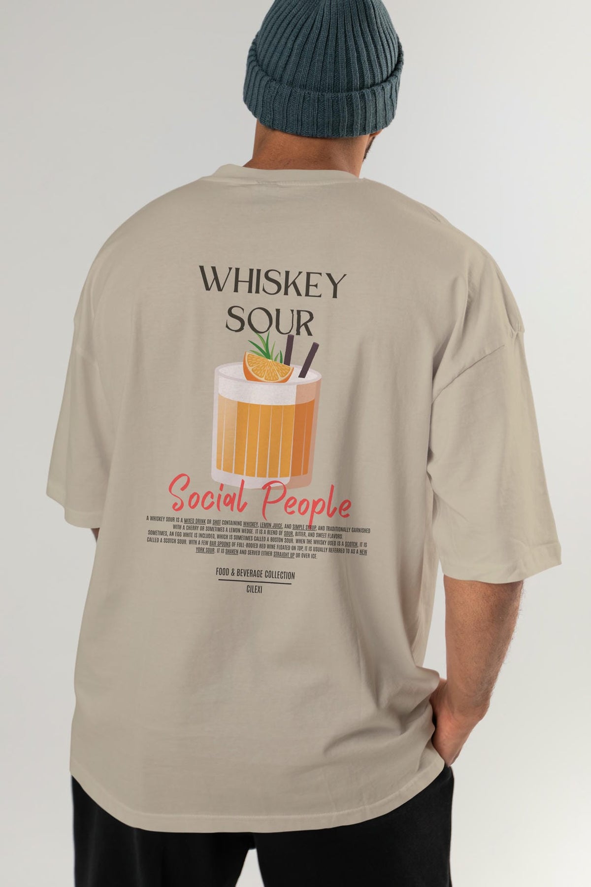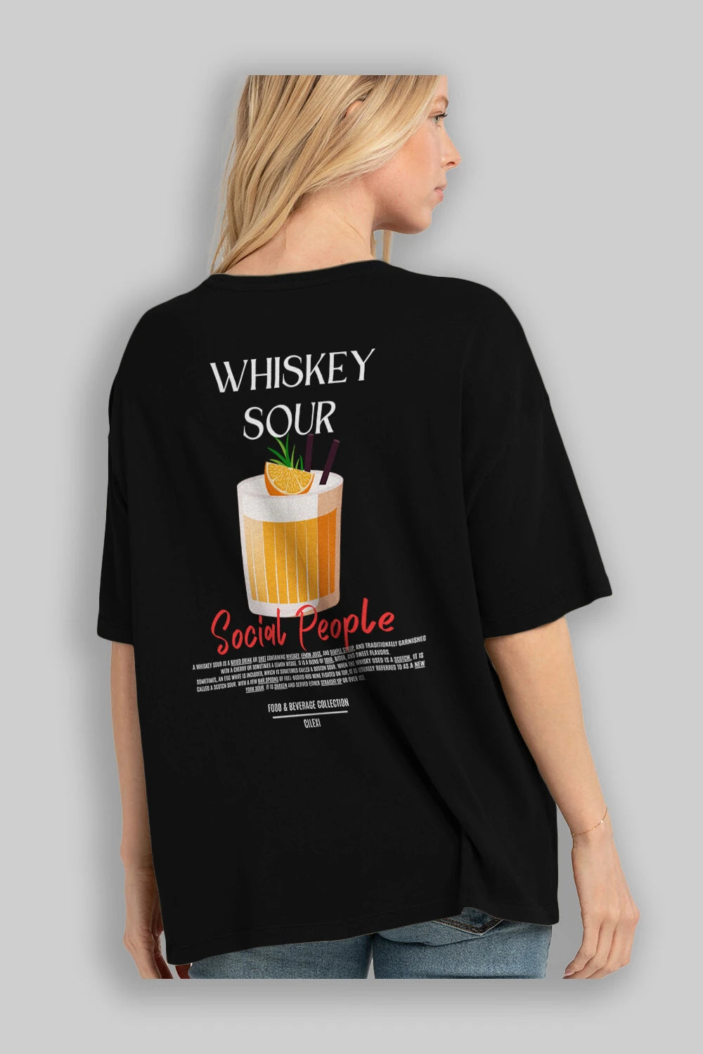 Whıskey Sour Kokteyl Serisi Baskılı Oversize t-shirt Erkek Kadın Unisex %100 Pamuk Bisiklet Yaka tişort