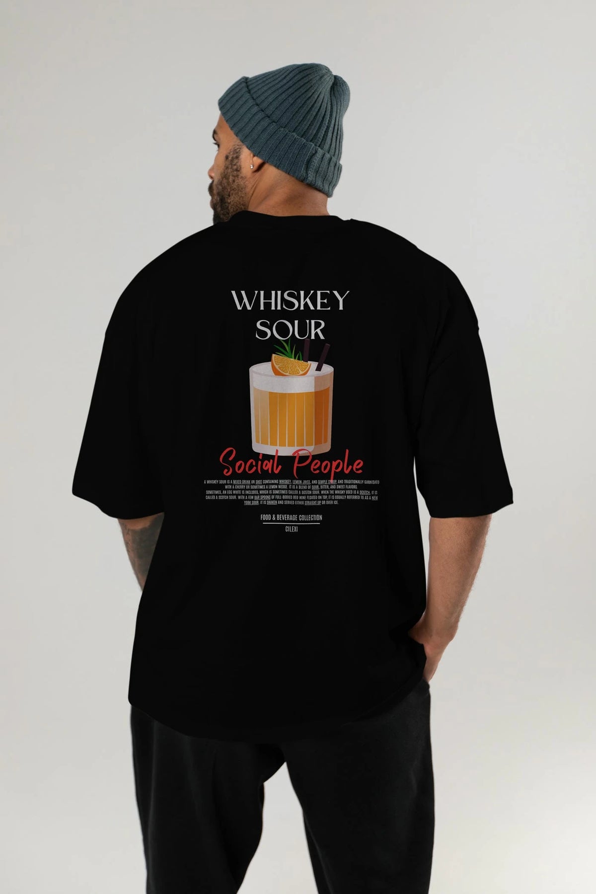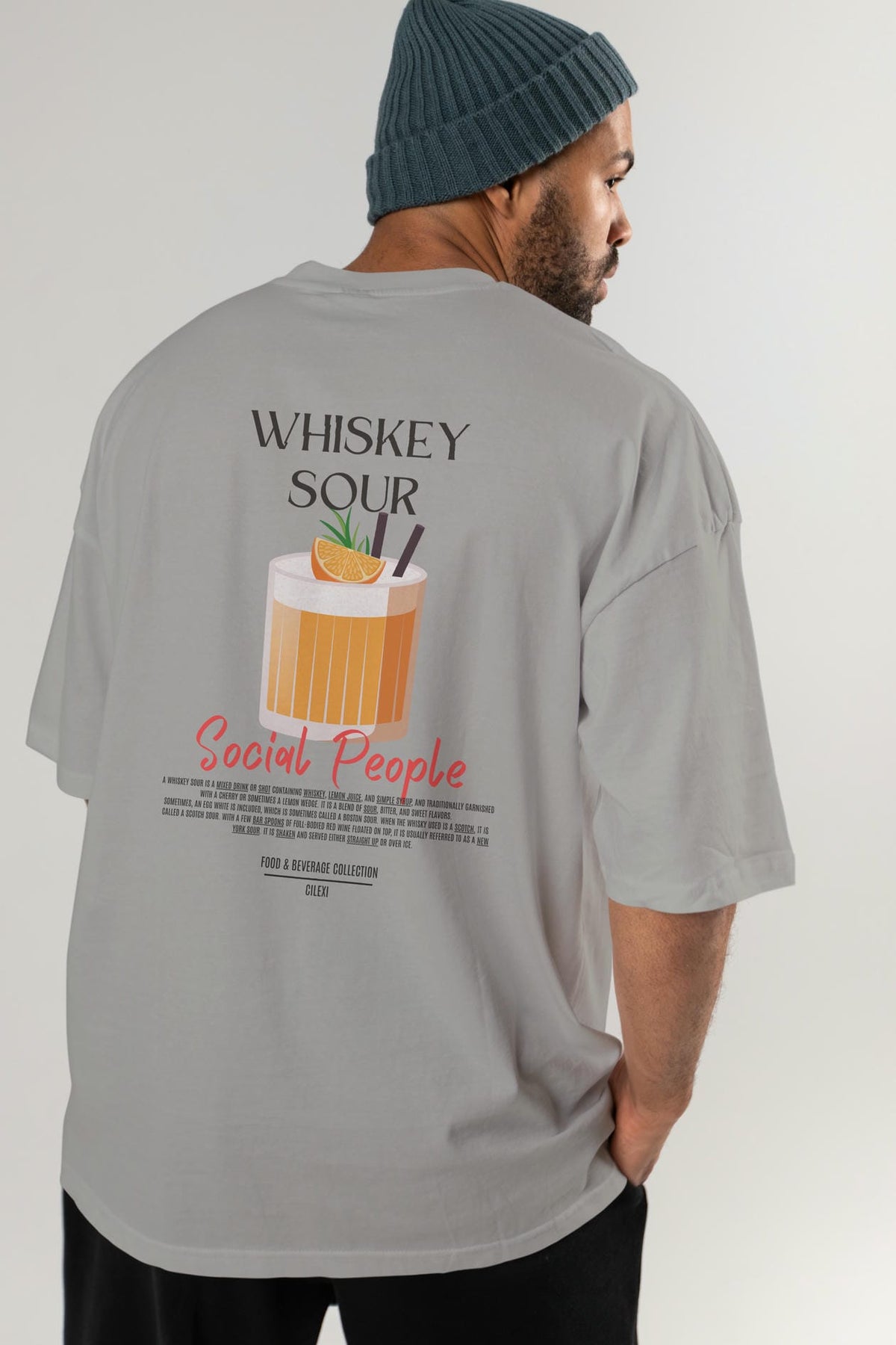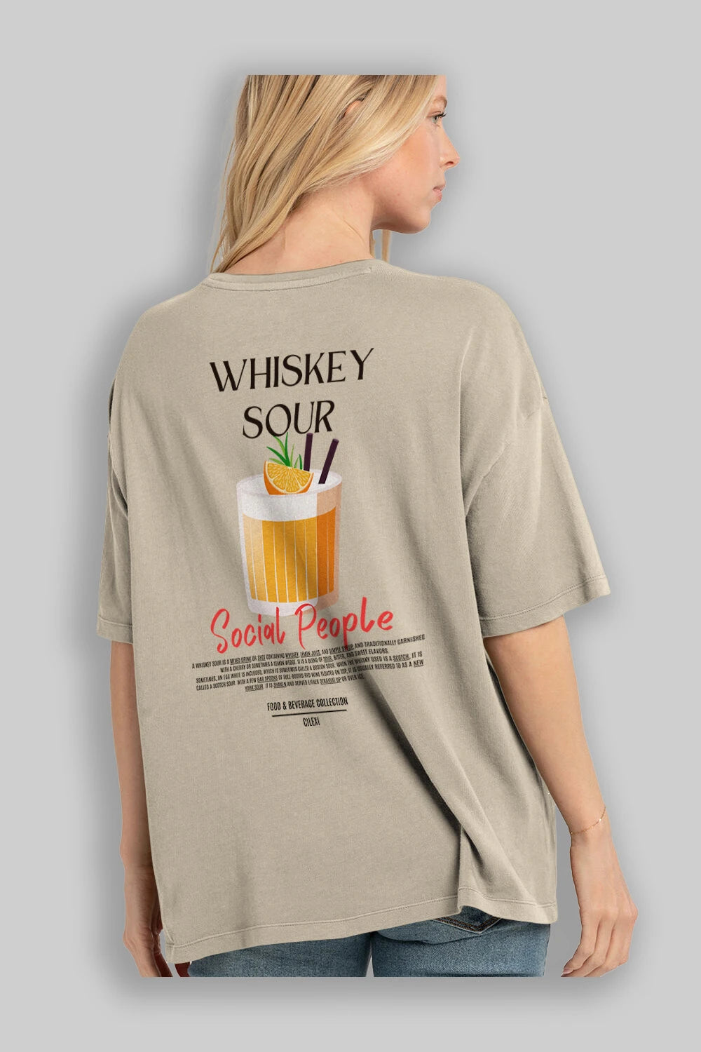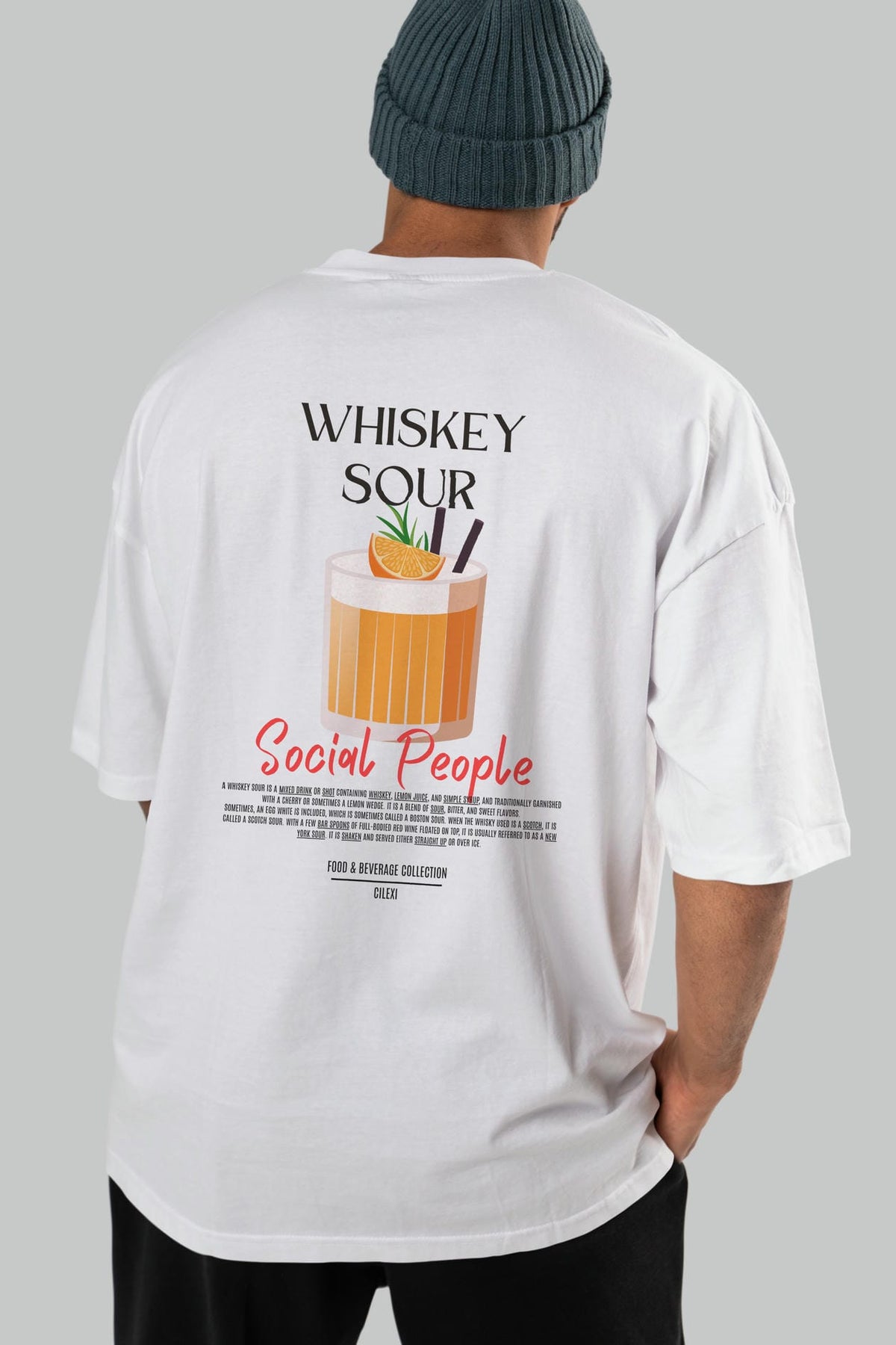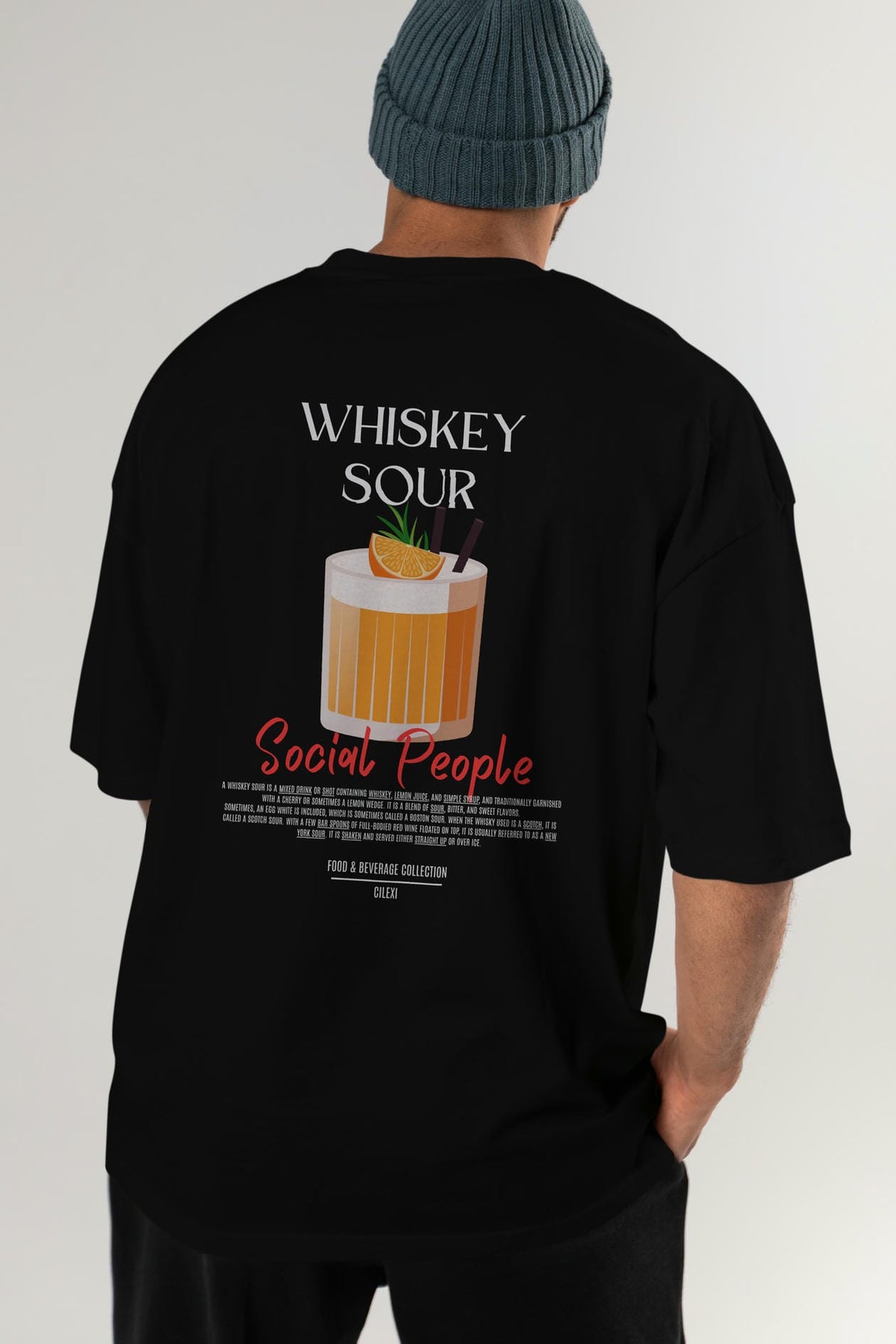 Whıskey Sour Kokteyl Serisi Baskılı Oversize t-shirt Erkek Kadın Unisex %100 Pamuk Bisiklet Yaka tişort