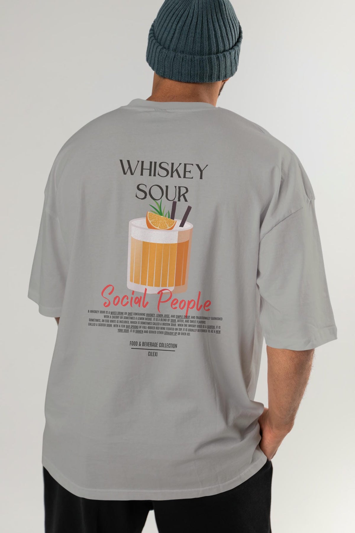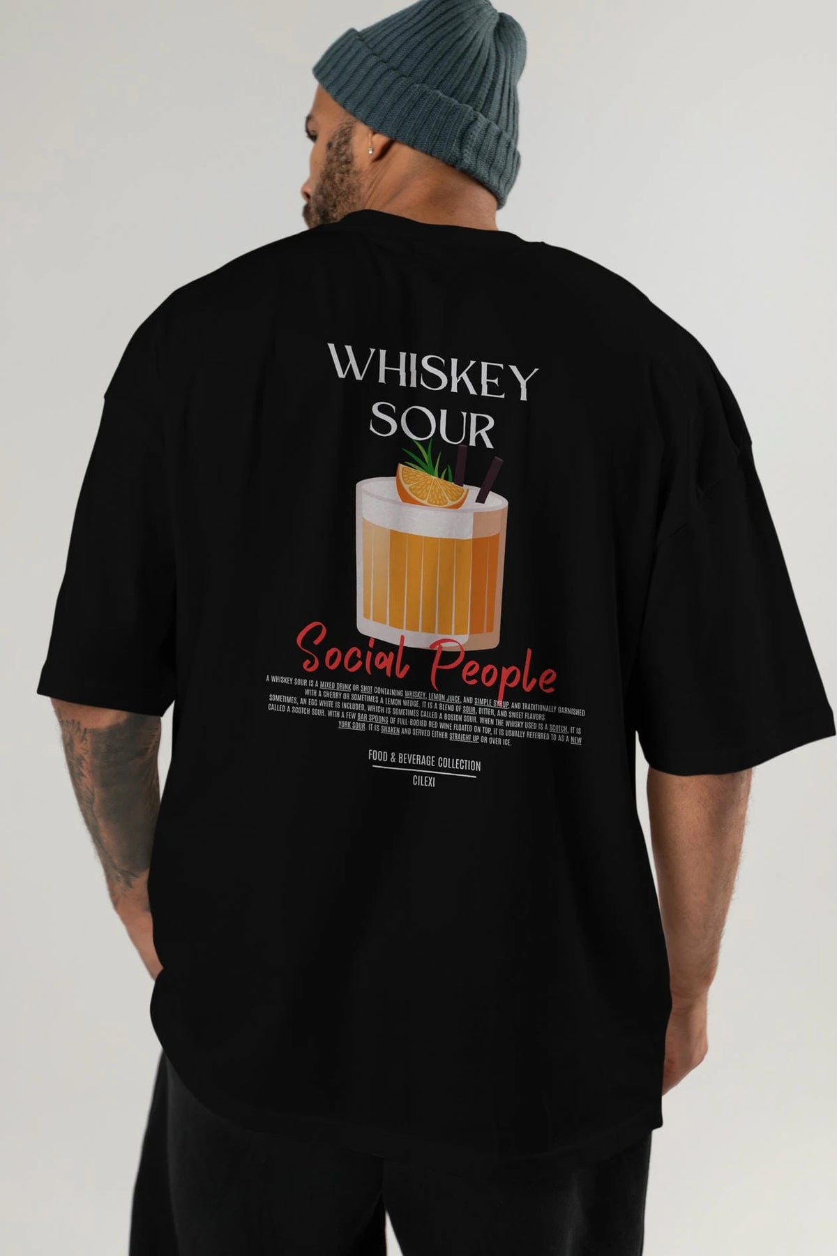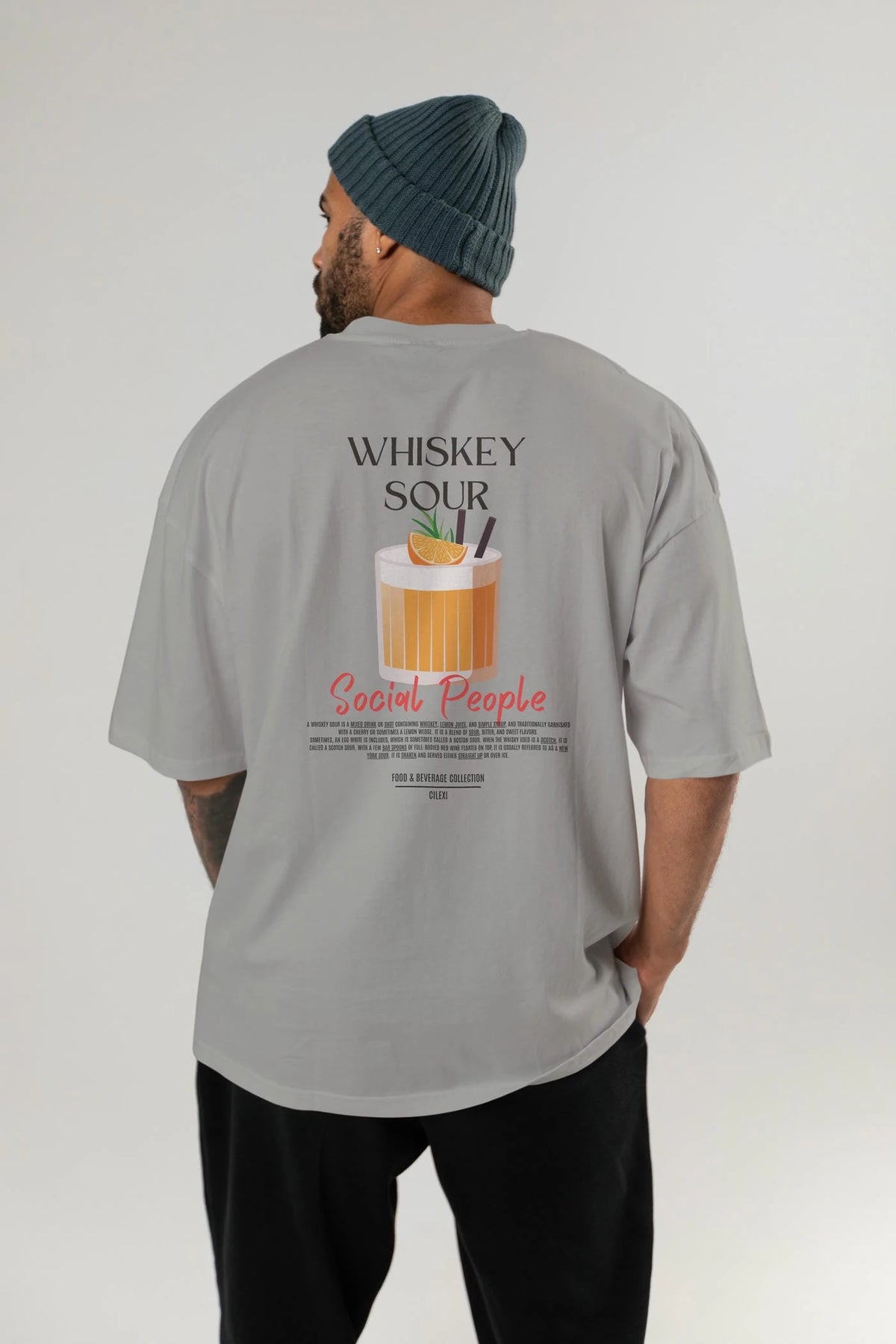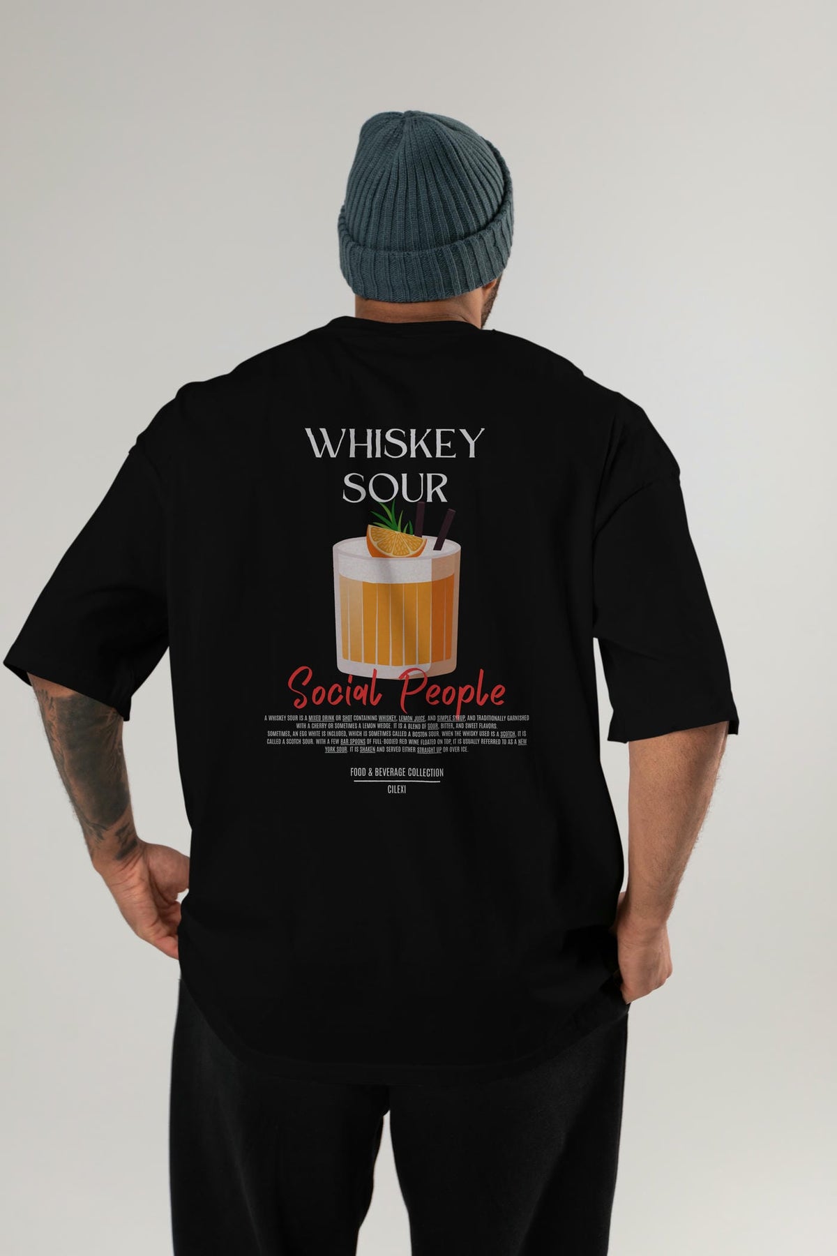 Whıskey Sour Kokteyl Serisi Baskılı Oversize t-shirt Erkek Kadın Unisex %100 Pamuk Bisiklet Yaka tişort