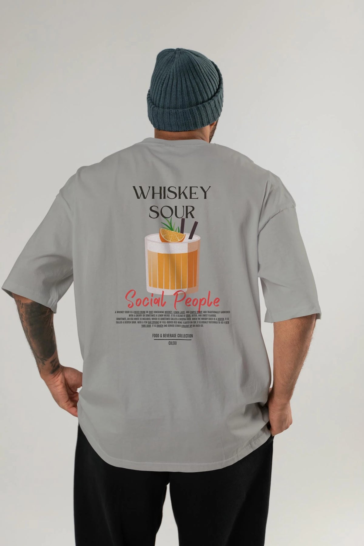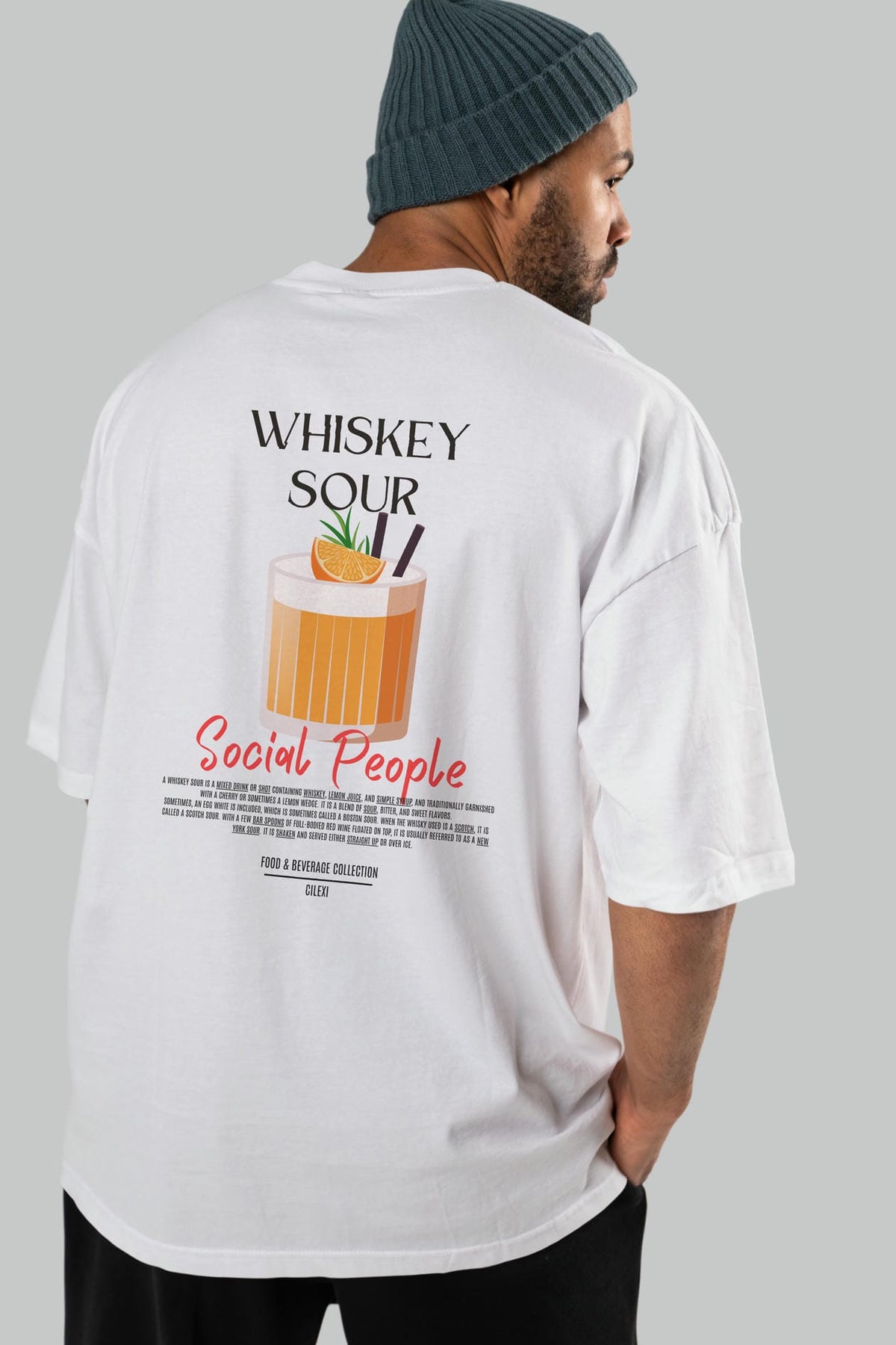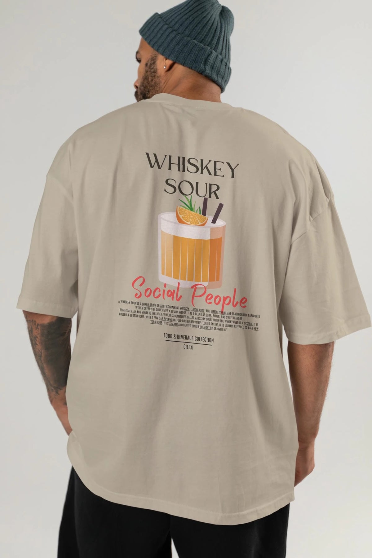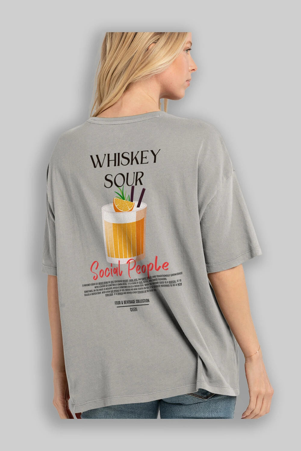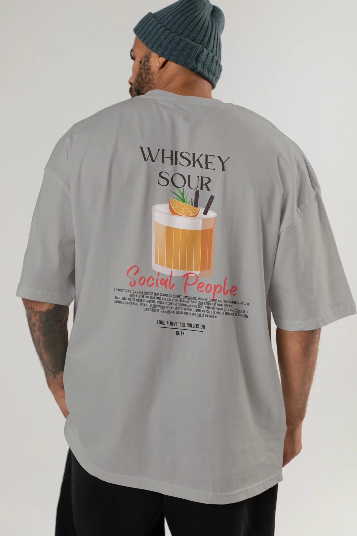 Whıskey Sour Kokteyl Serisi Baskılı Oversize t-shirt Erkek Kadın Unisex %100 Pamuk Bisiklet Yaka tişort