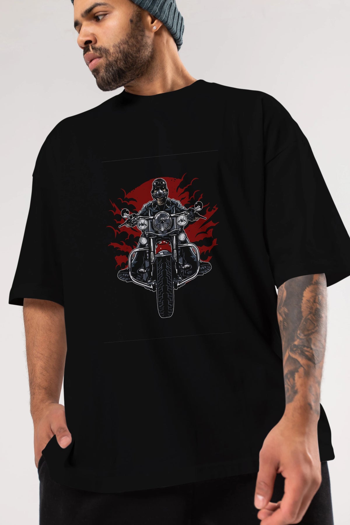 Wild Biker Ön Baskılı Oversize t-shirt Erkek Kadın Unisex %100 Pamuk tişort