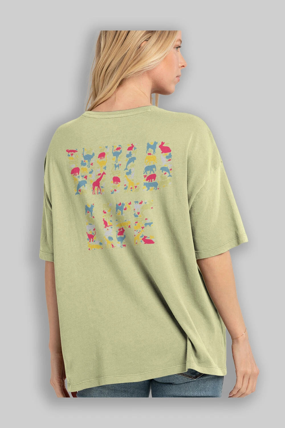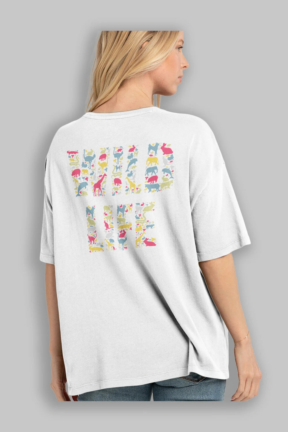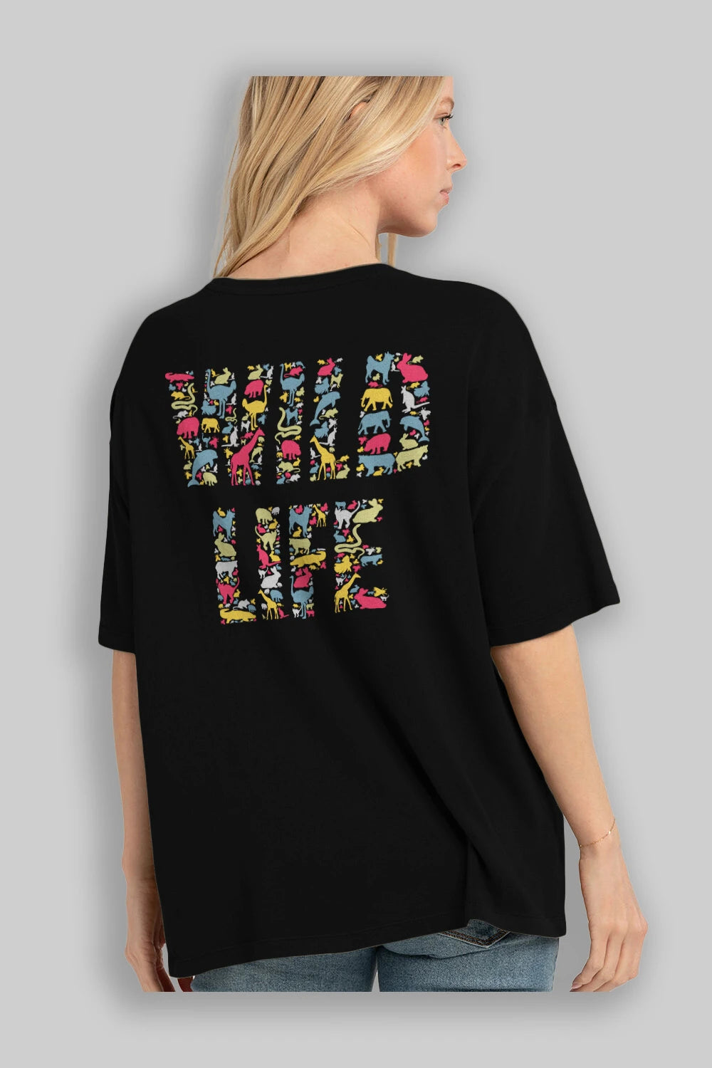 Wild Life Arka Baskılı Oversize t-shirt %100 pamuk Erkek Kadın Unisex
