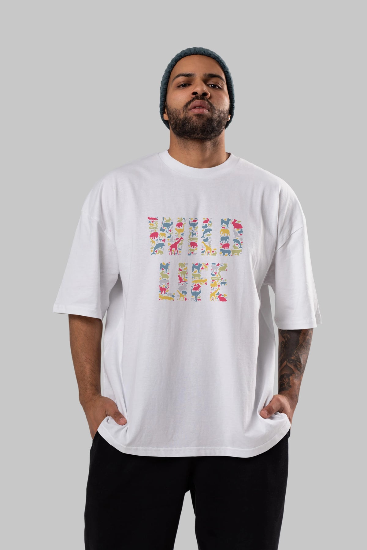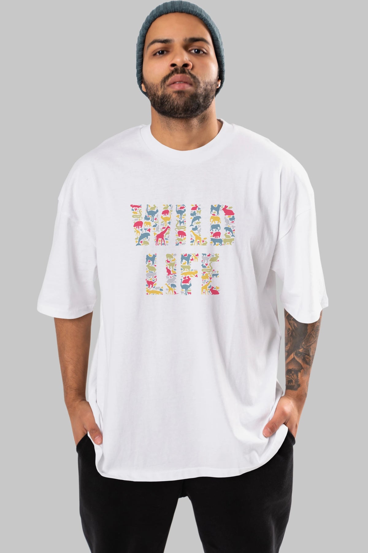Wild Life Ön Baskılı Oversize t-shirt %100 pamuk Erkek Kadın Unisex