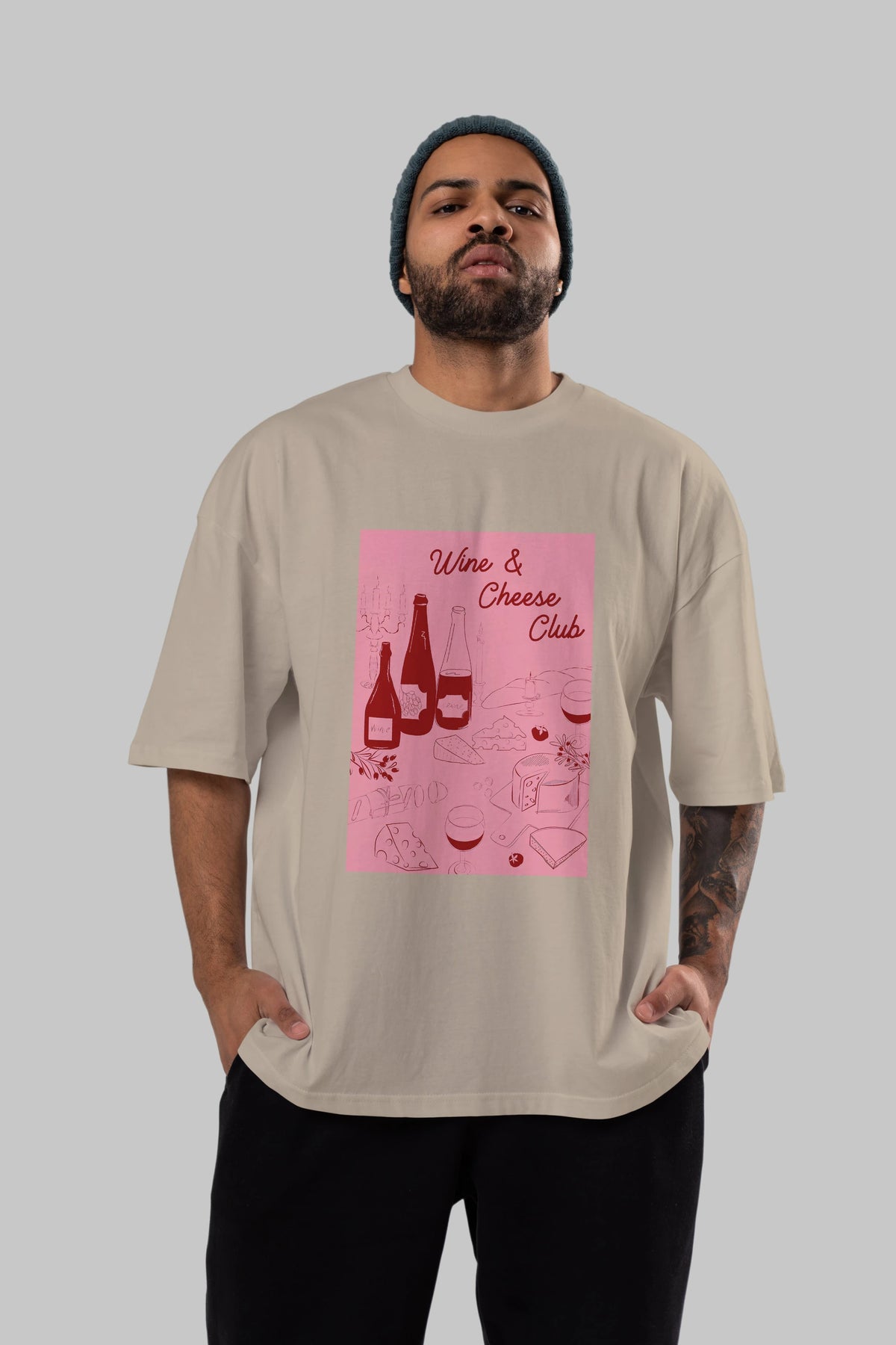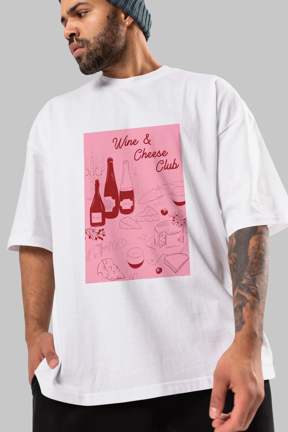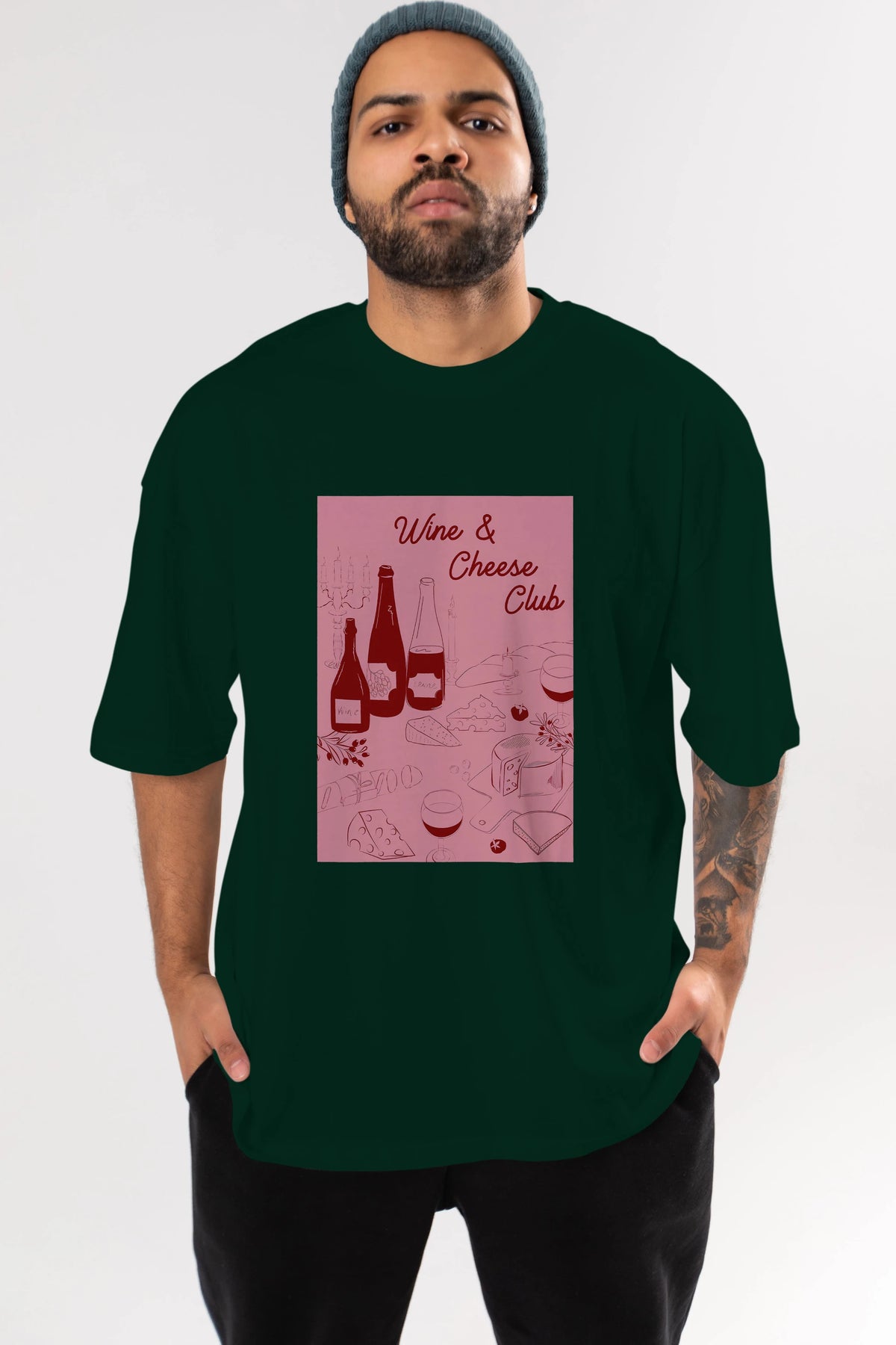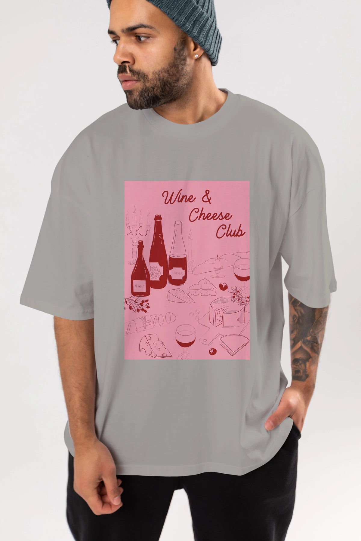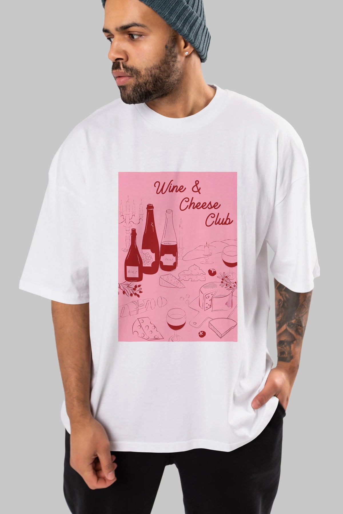 Wine Cheese Club Ön Baskılı Oversize t-shirt Erkek Kadın Unisex %100 Pamuk Bisiklet Yaka tişort