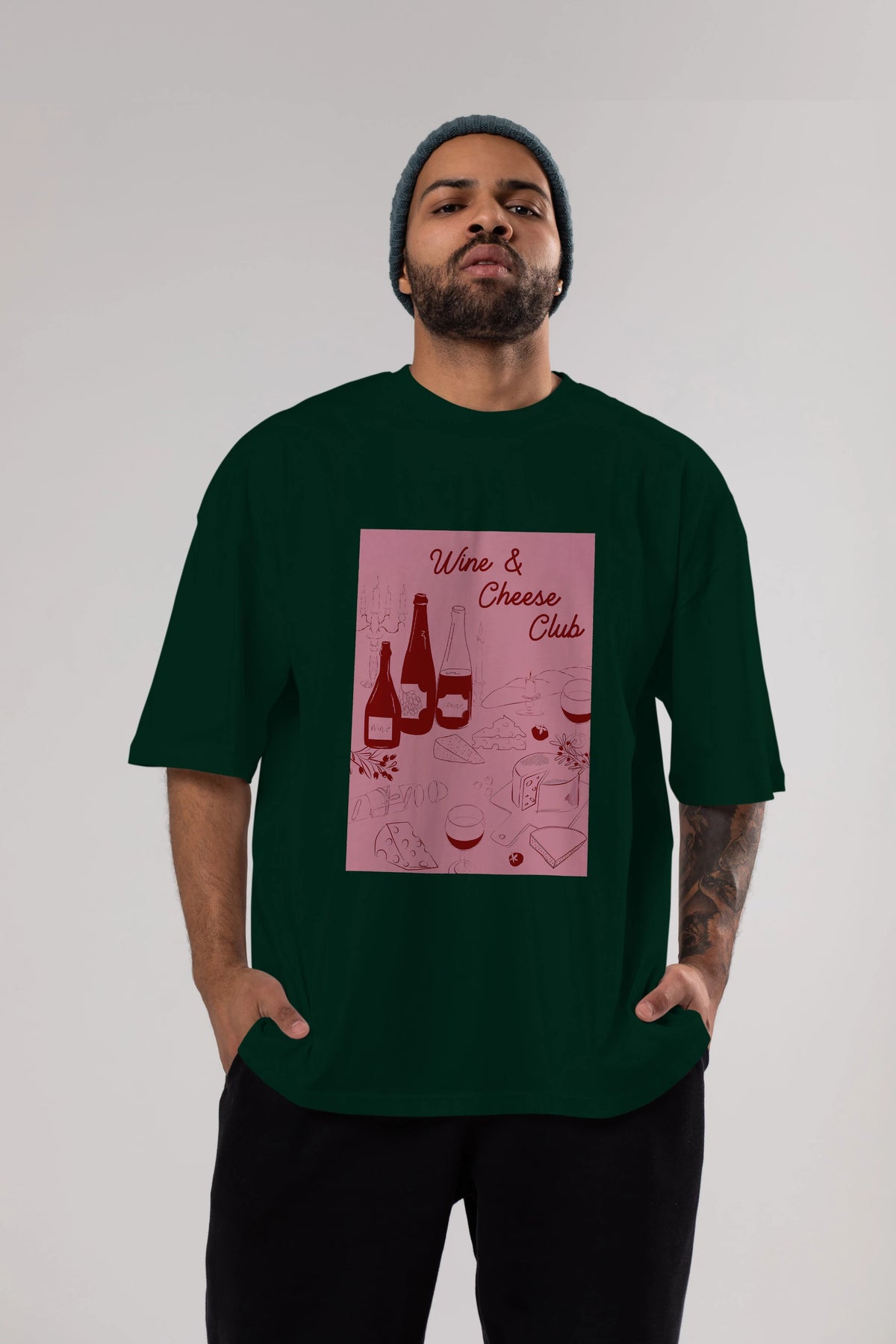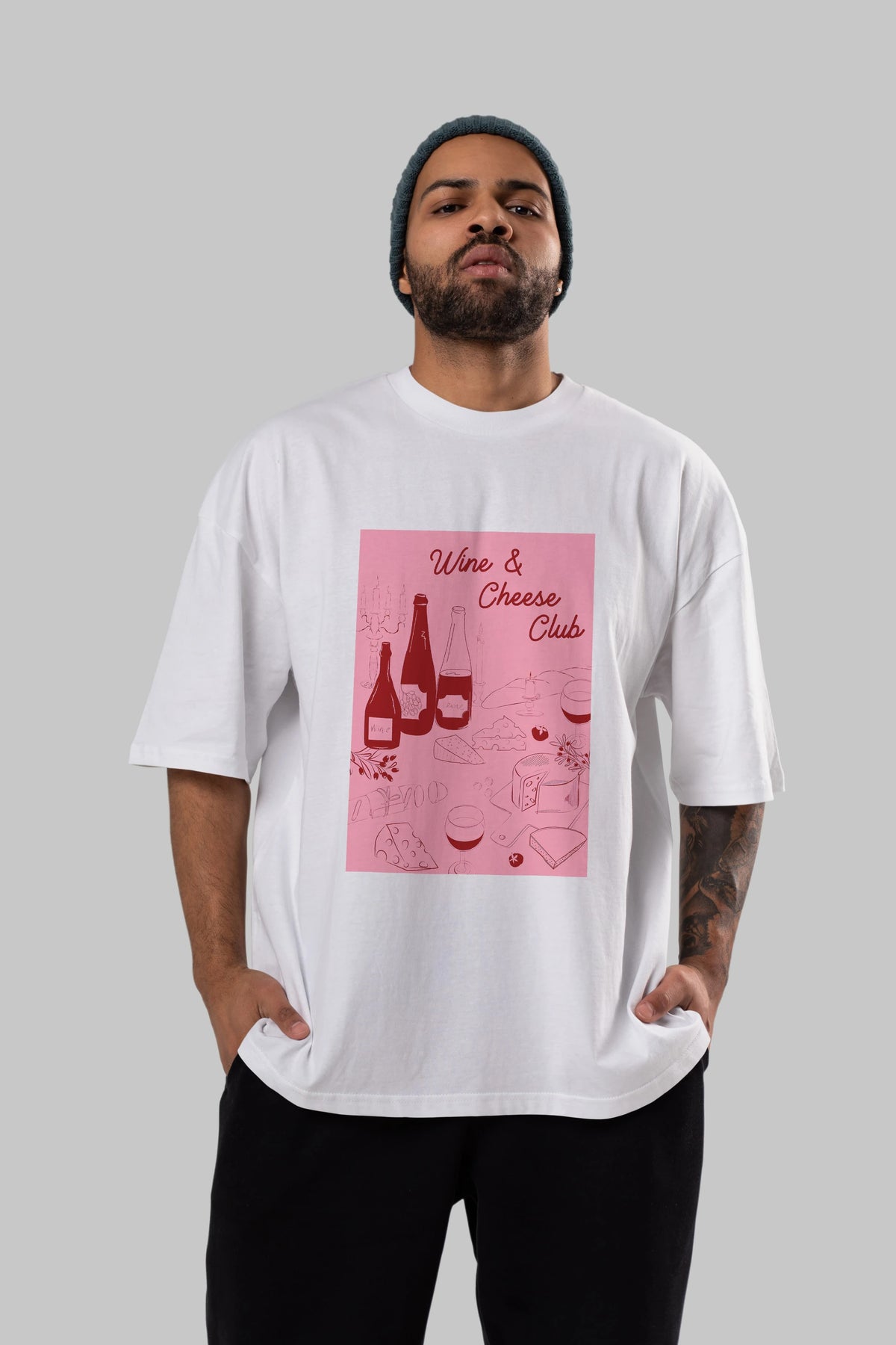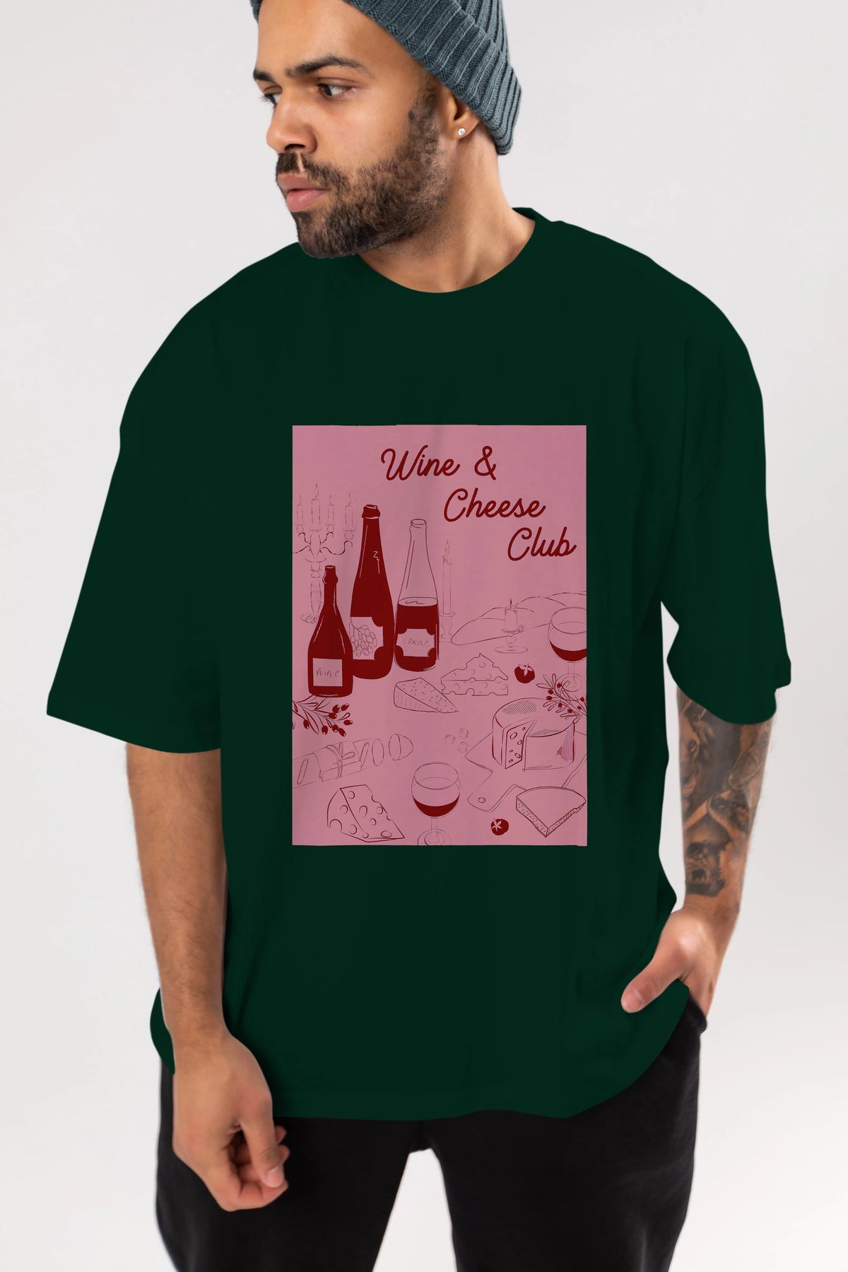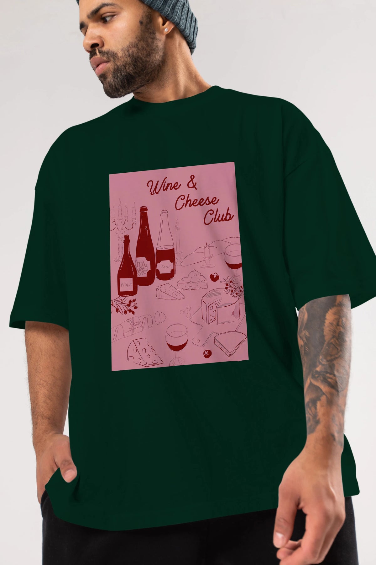 Wine Cheese Club Ön Baskılı Oversize t-shirt Erkek Kadın Unisex %100 Pamuk Bisiklet Yaka tişort