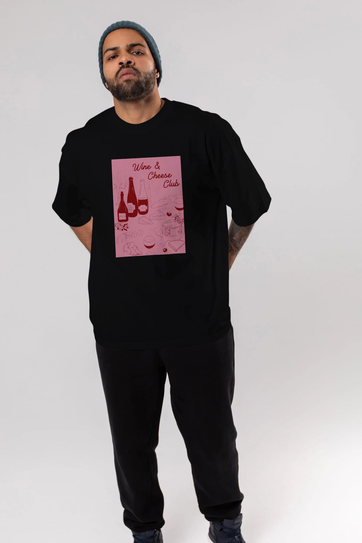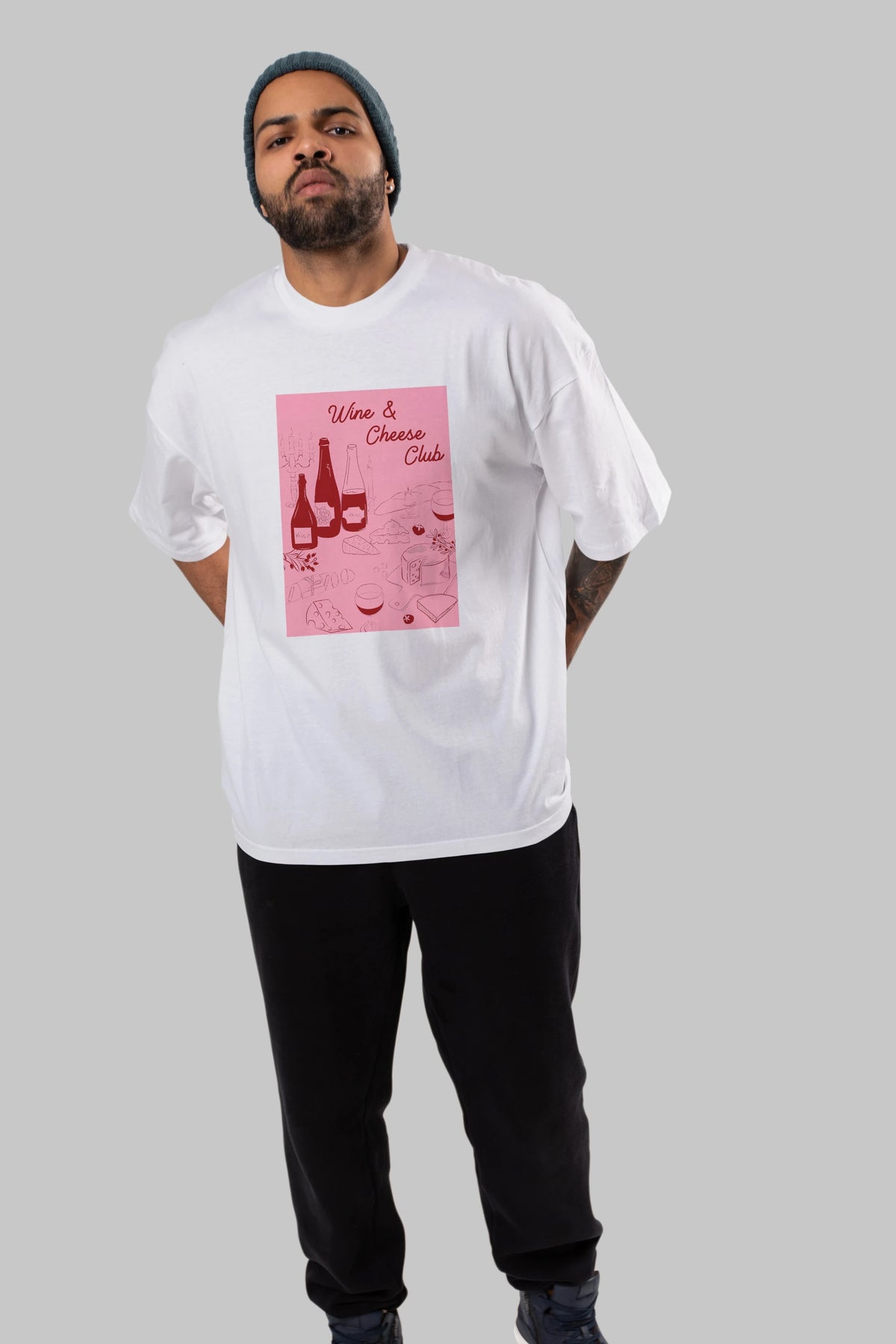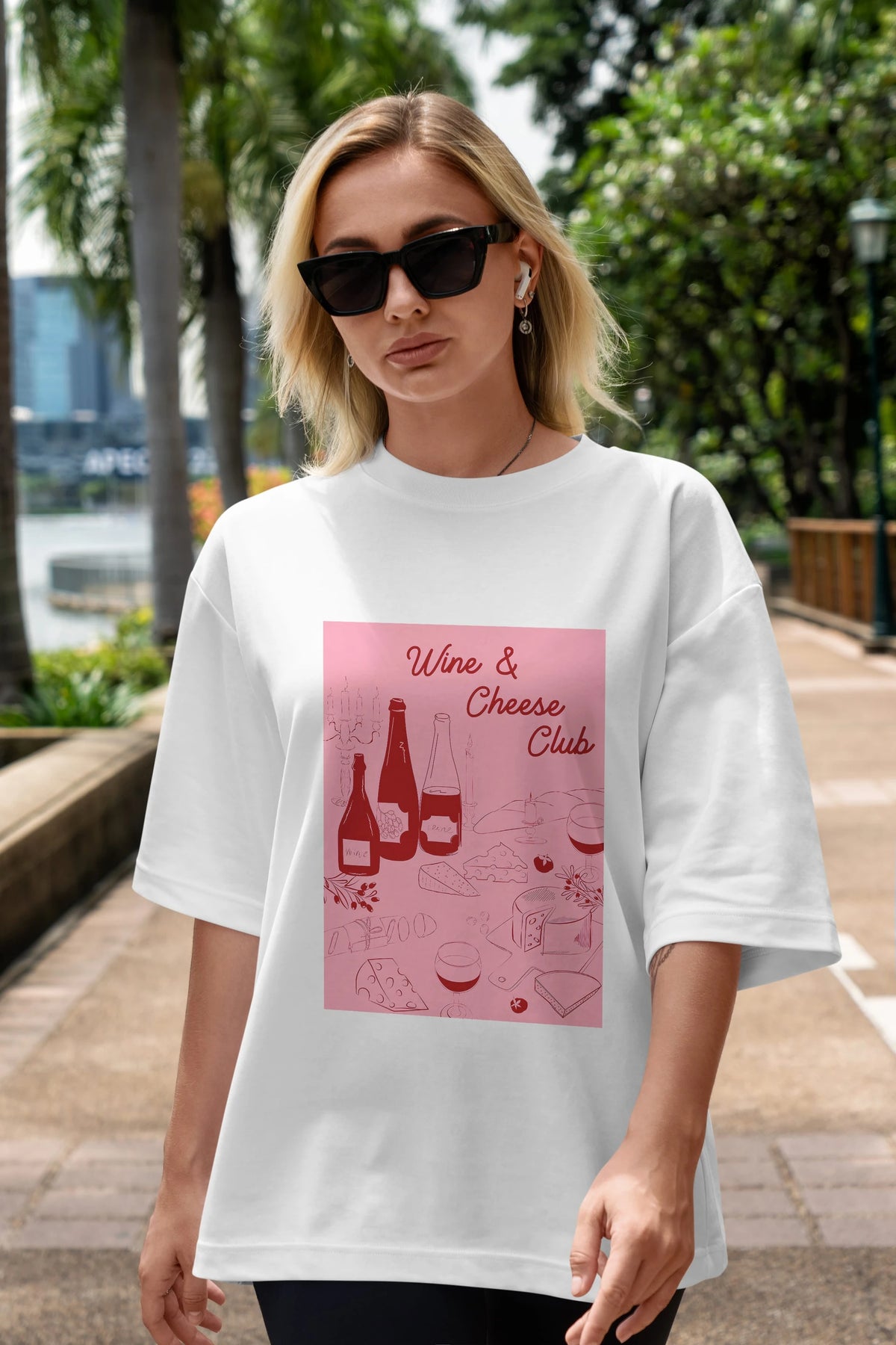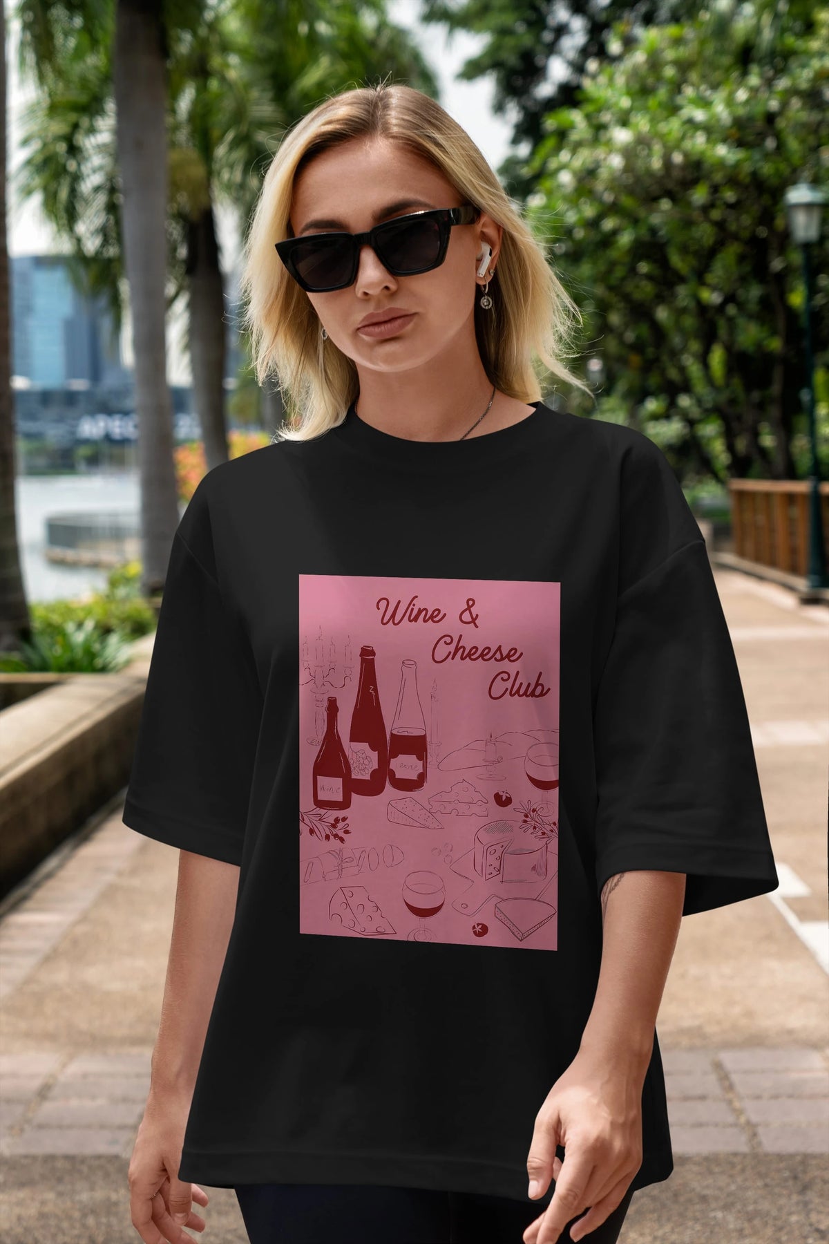 Wine Cheese Club Ön Baskılı Oversize t-shirt Erkek Kadın Unisex %100 Pamuk Bisiklet Yaka tişort