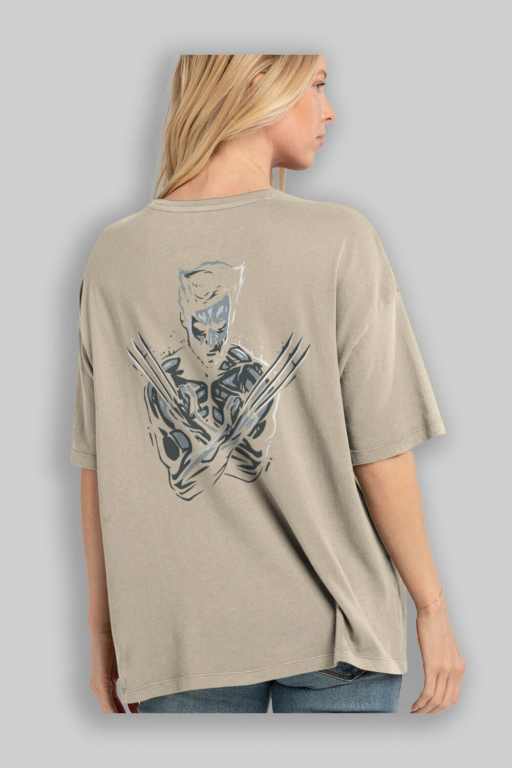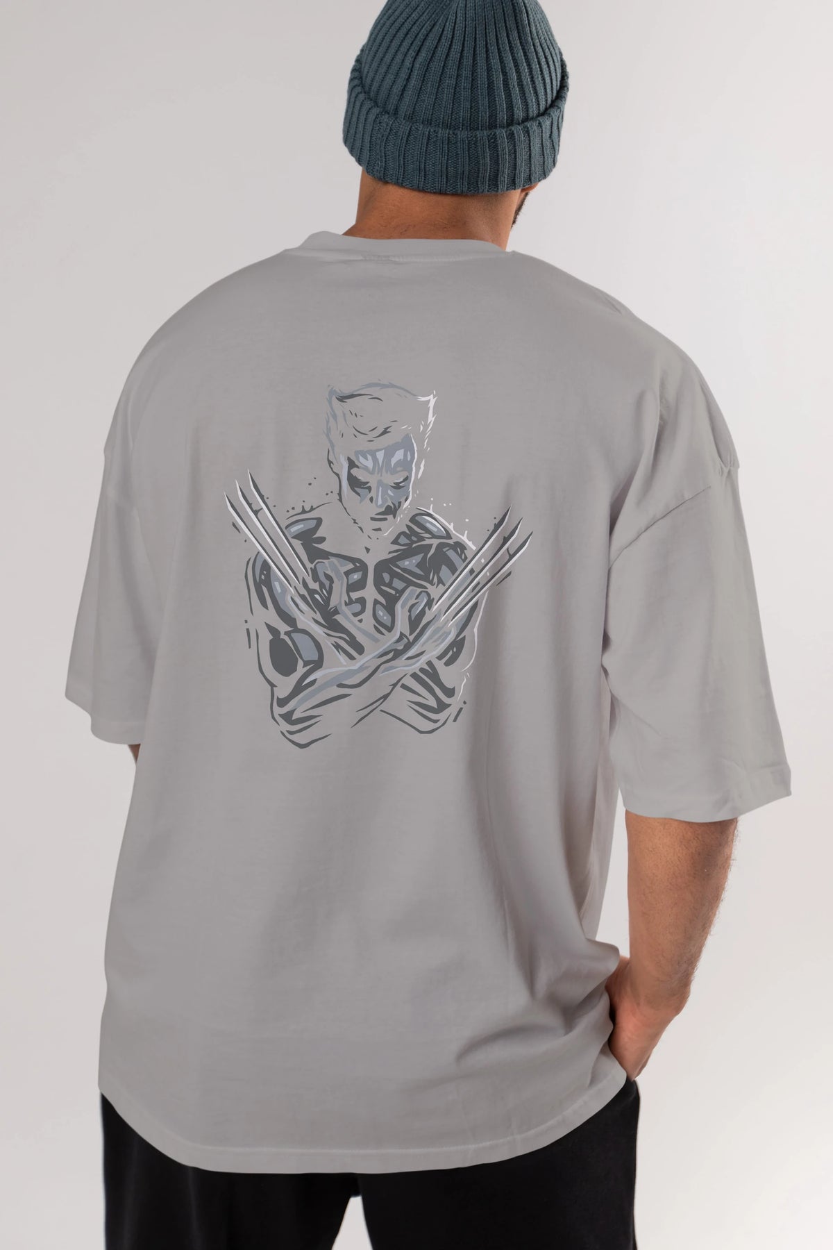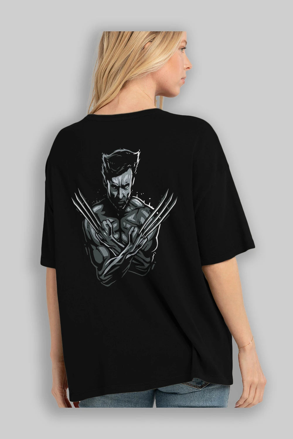 Wolverine Arka Baskılı Oversize t-shirt Erkek Kadın Unisex %100 Pamuk Bisiklet Yaka tişort