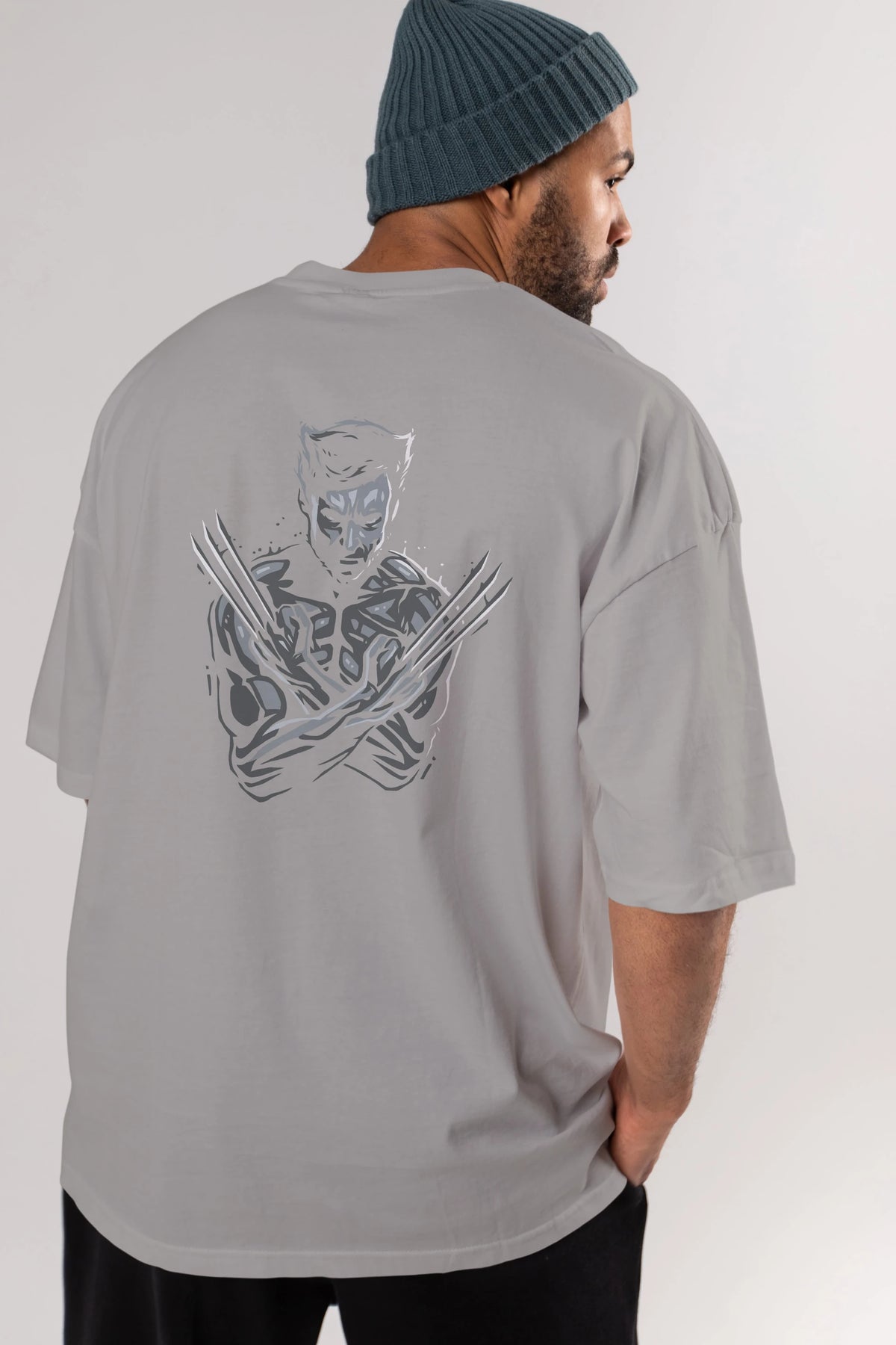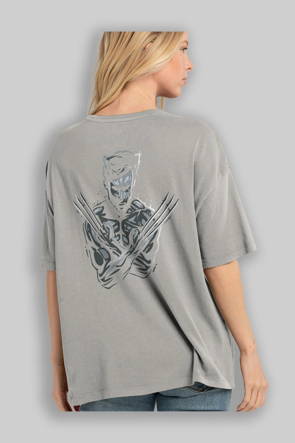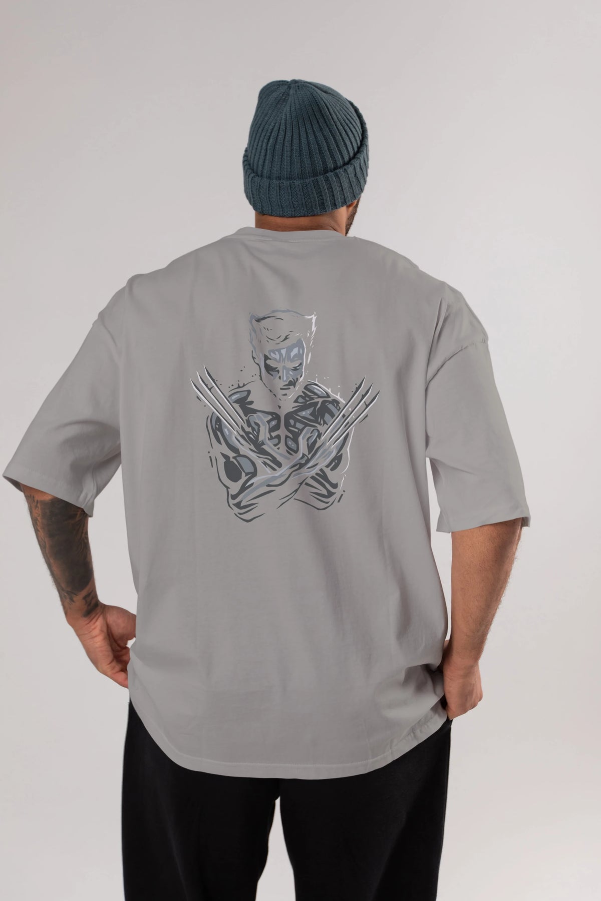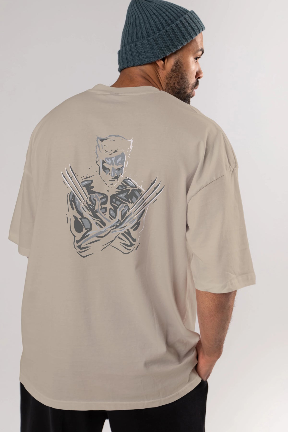 Wolverine Arka Baskılı Oversize t-shirt Erkek Kadın Unisex %100 Pamuk Bisiklet Yaka tişort