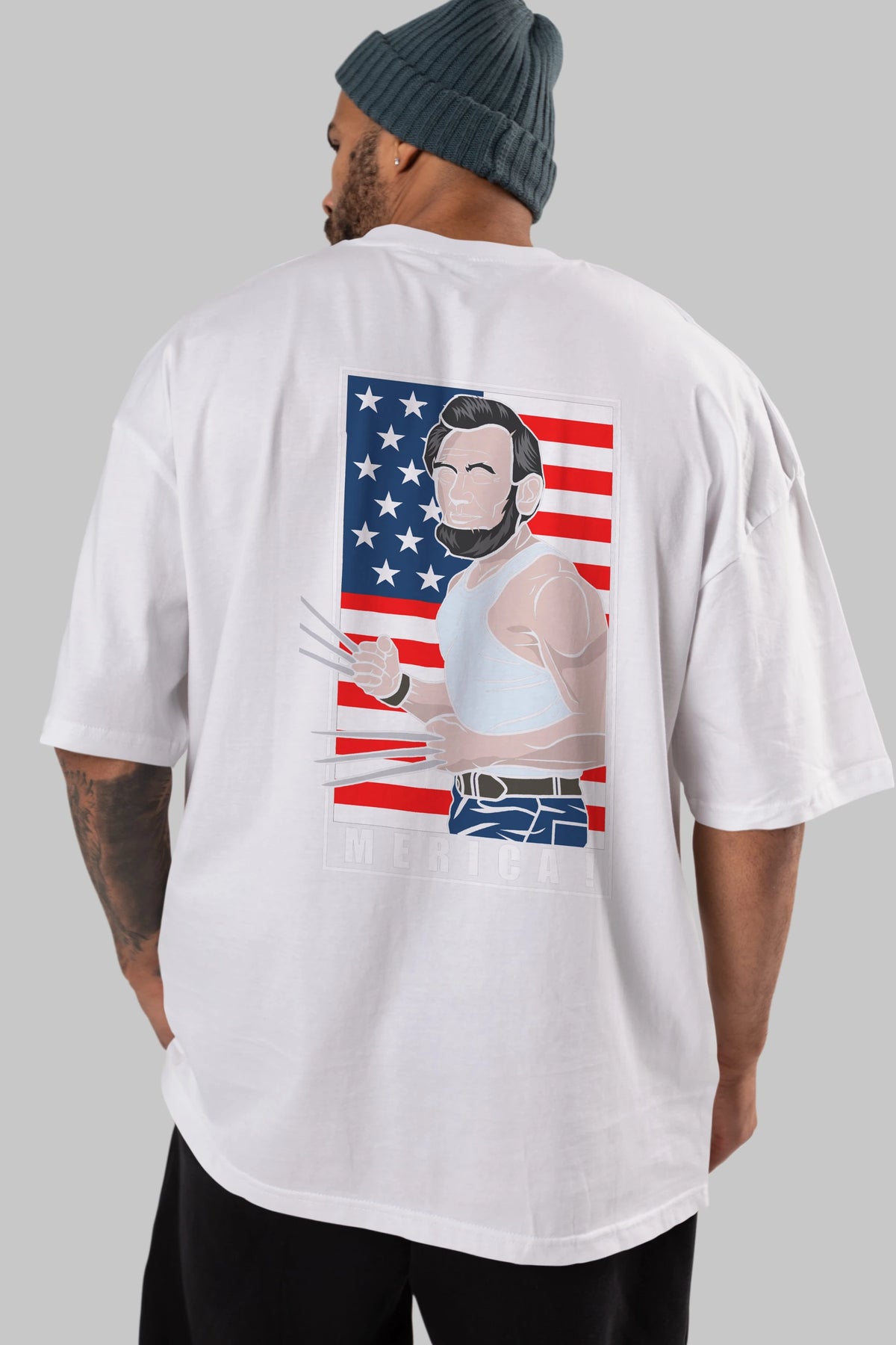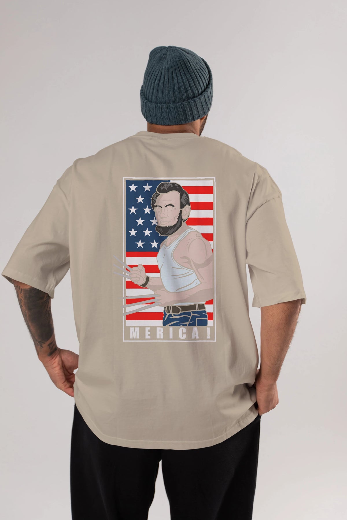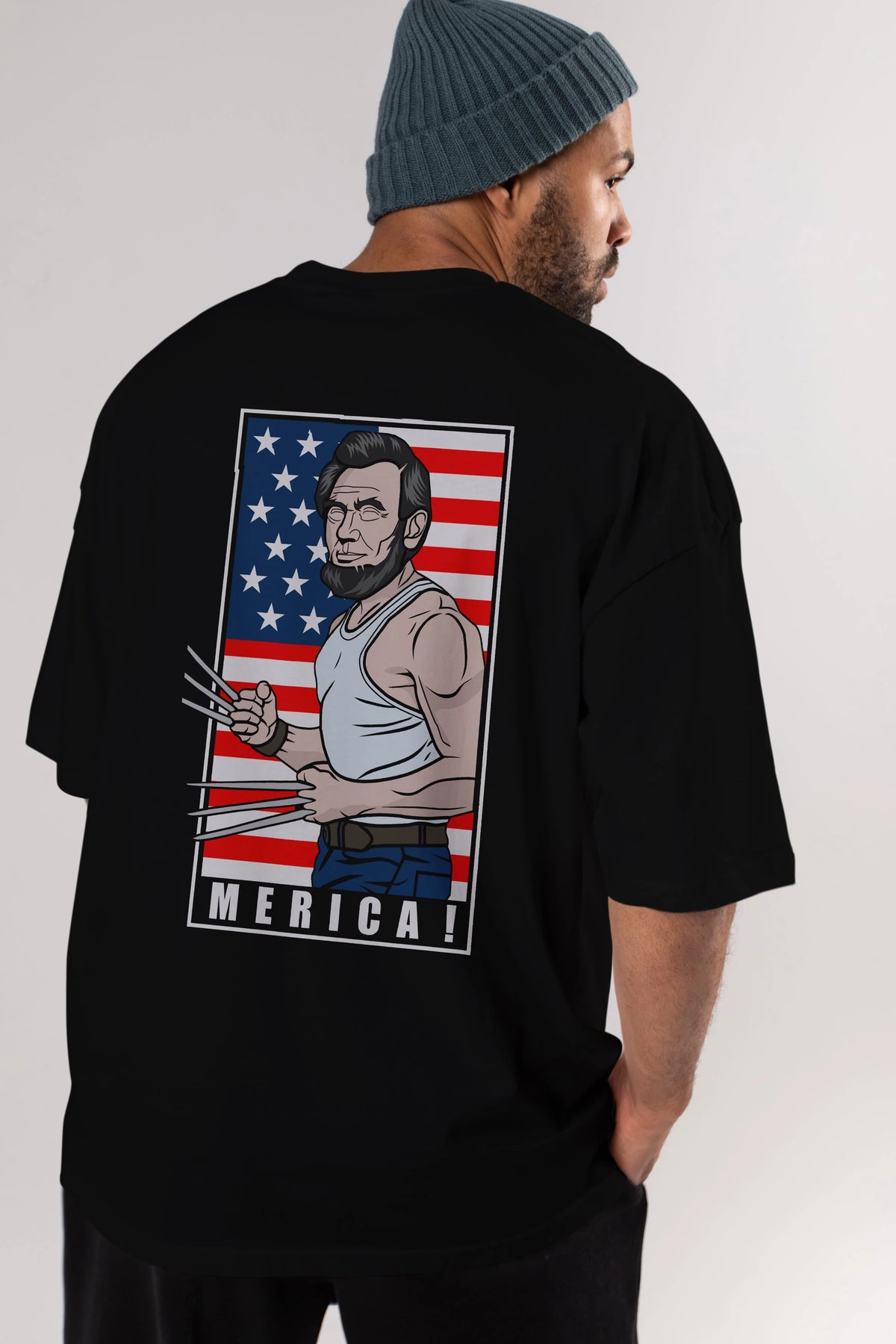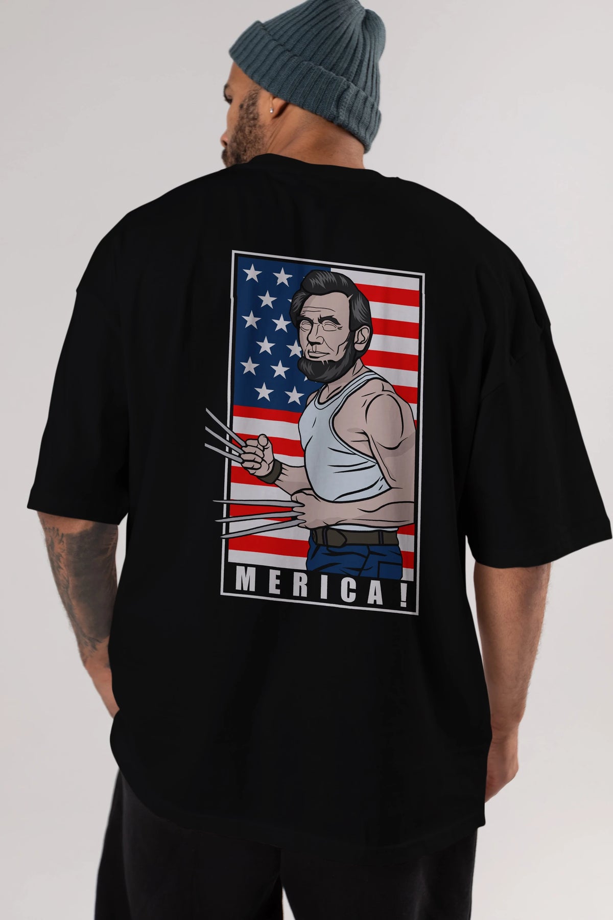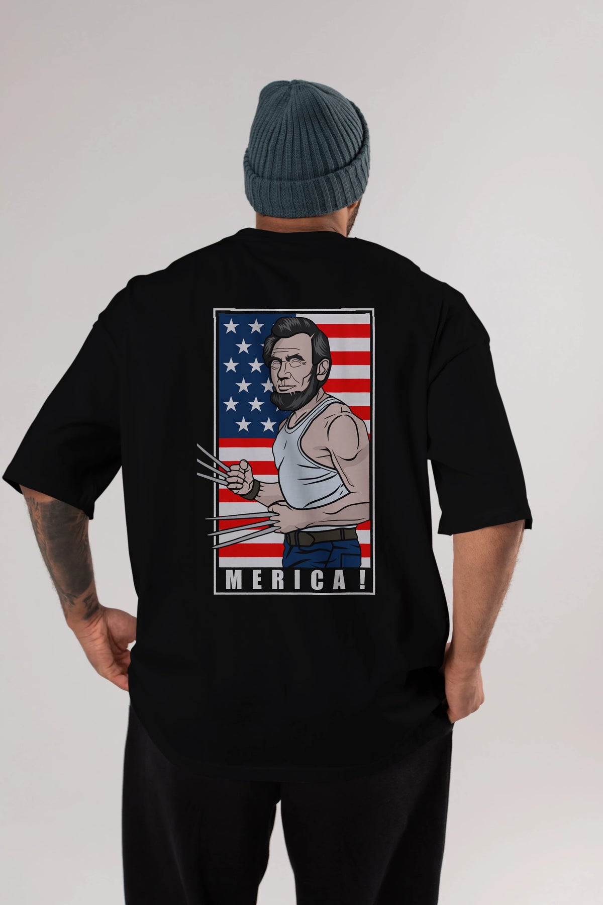 Wolverlincoln Arka Baskılı Oversize t-shirt Erkek Kadın Unisex %100 Pamuk tişort