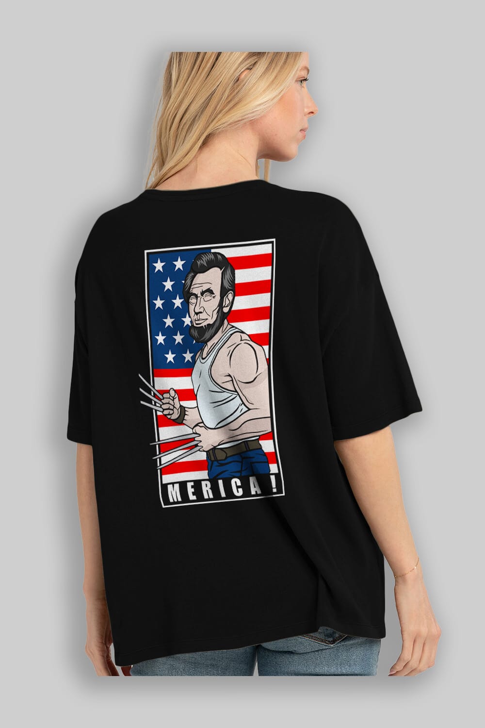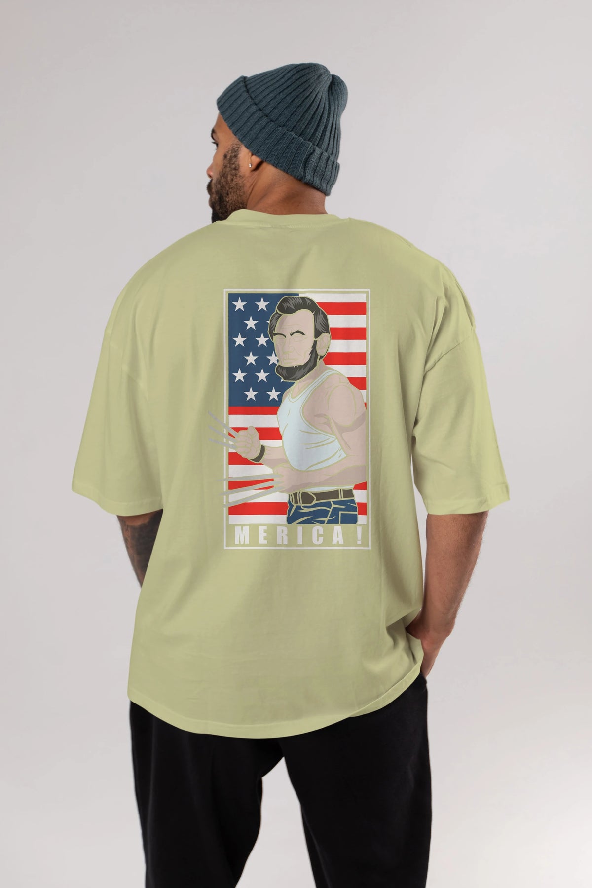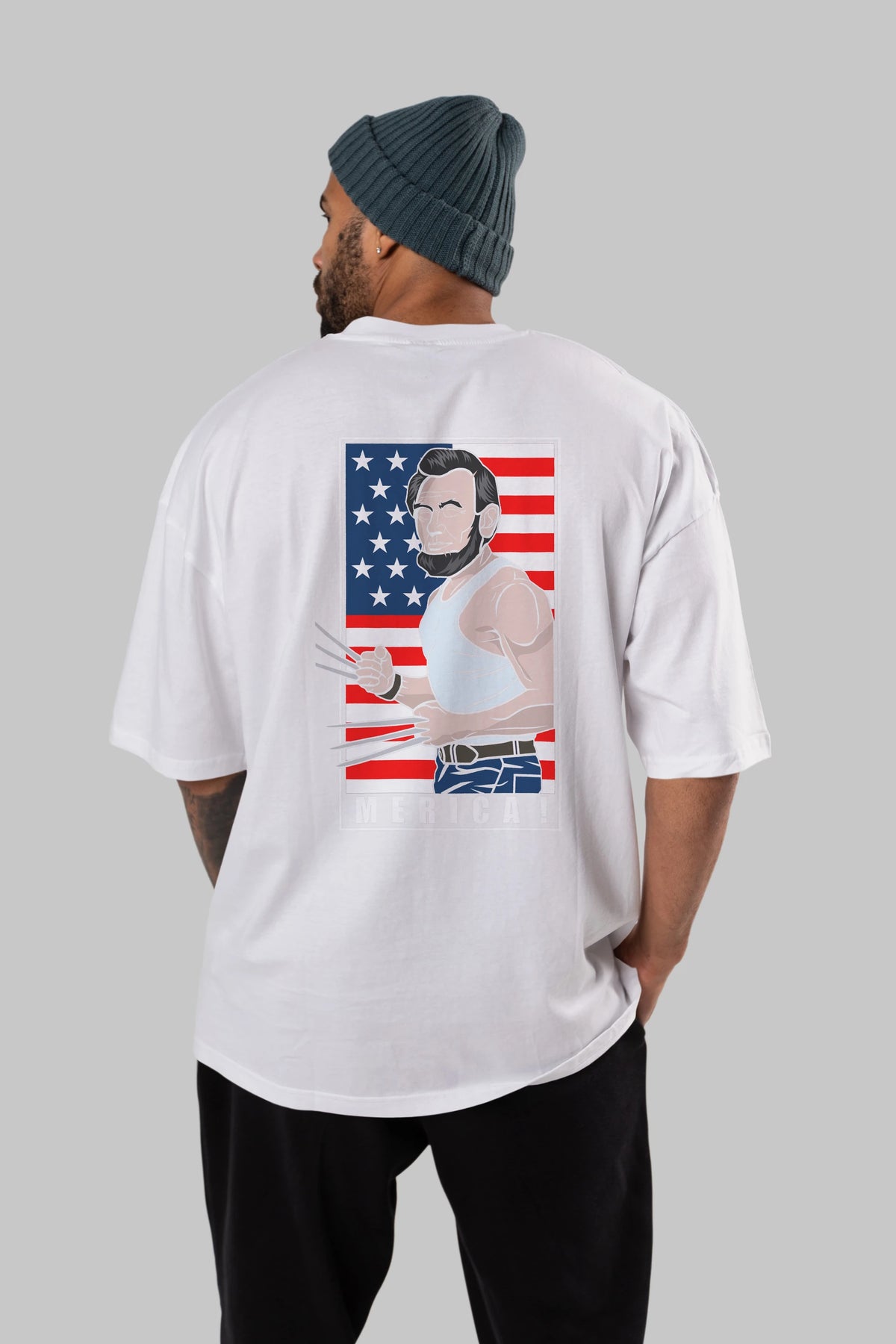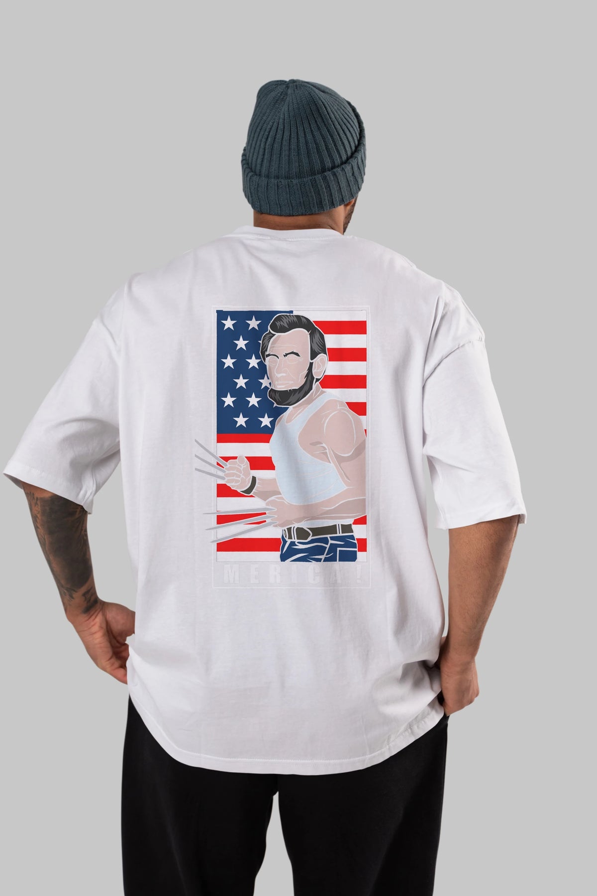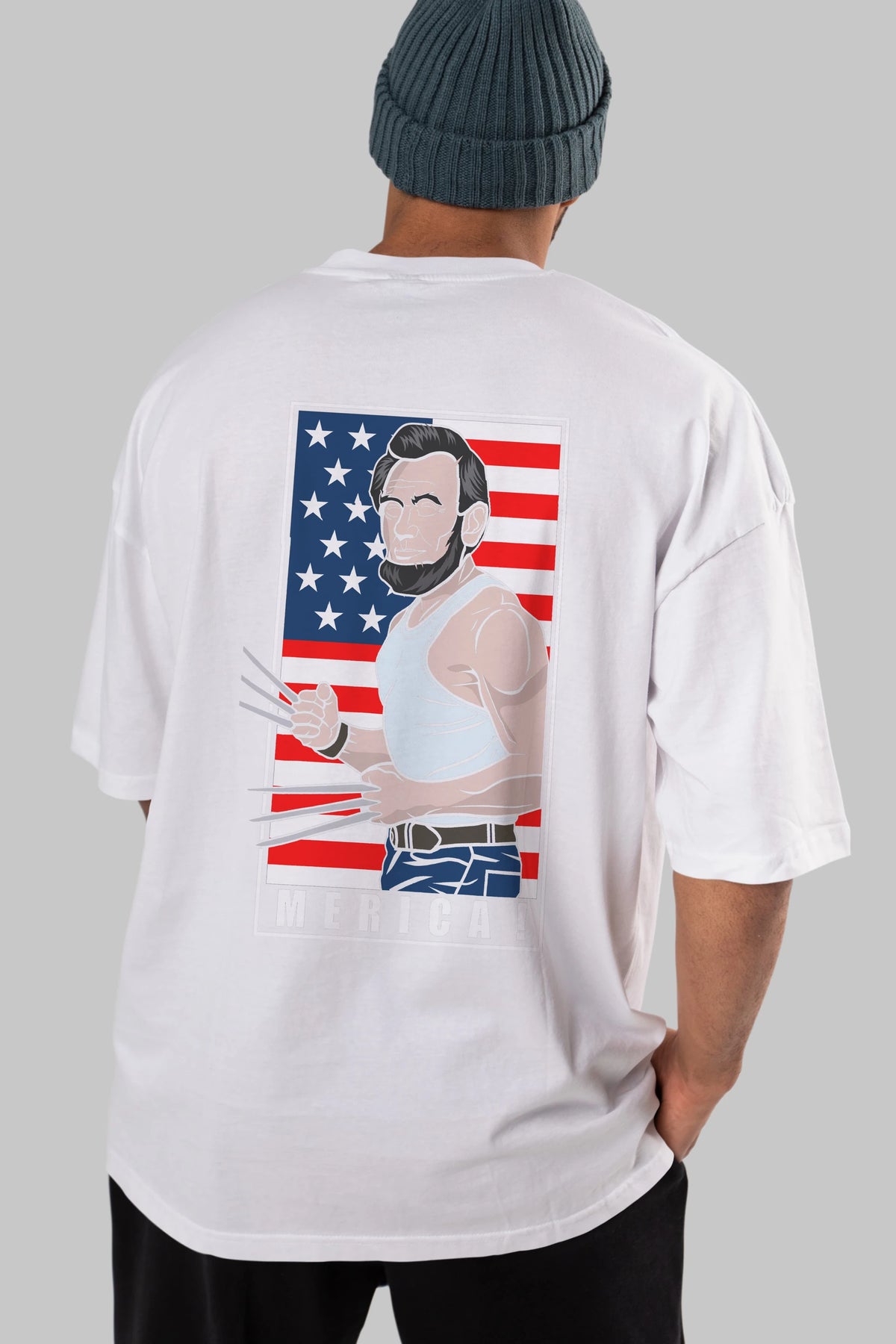 Wolverlincoln Arka Baskılı Oversize t-shirt Erkek Kadın Unisex %100 Pamuk tişort