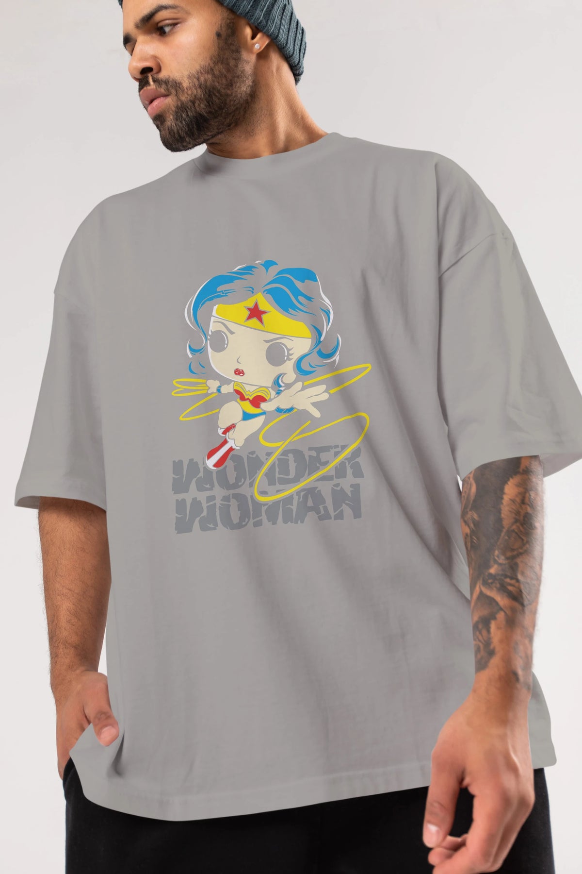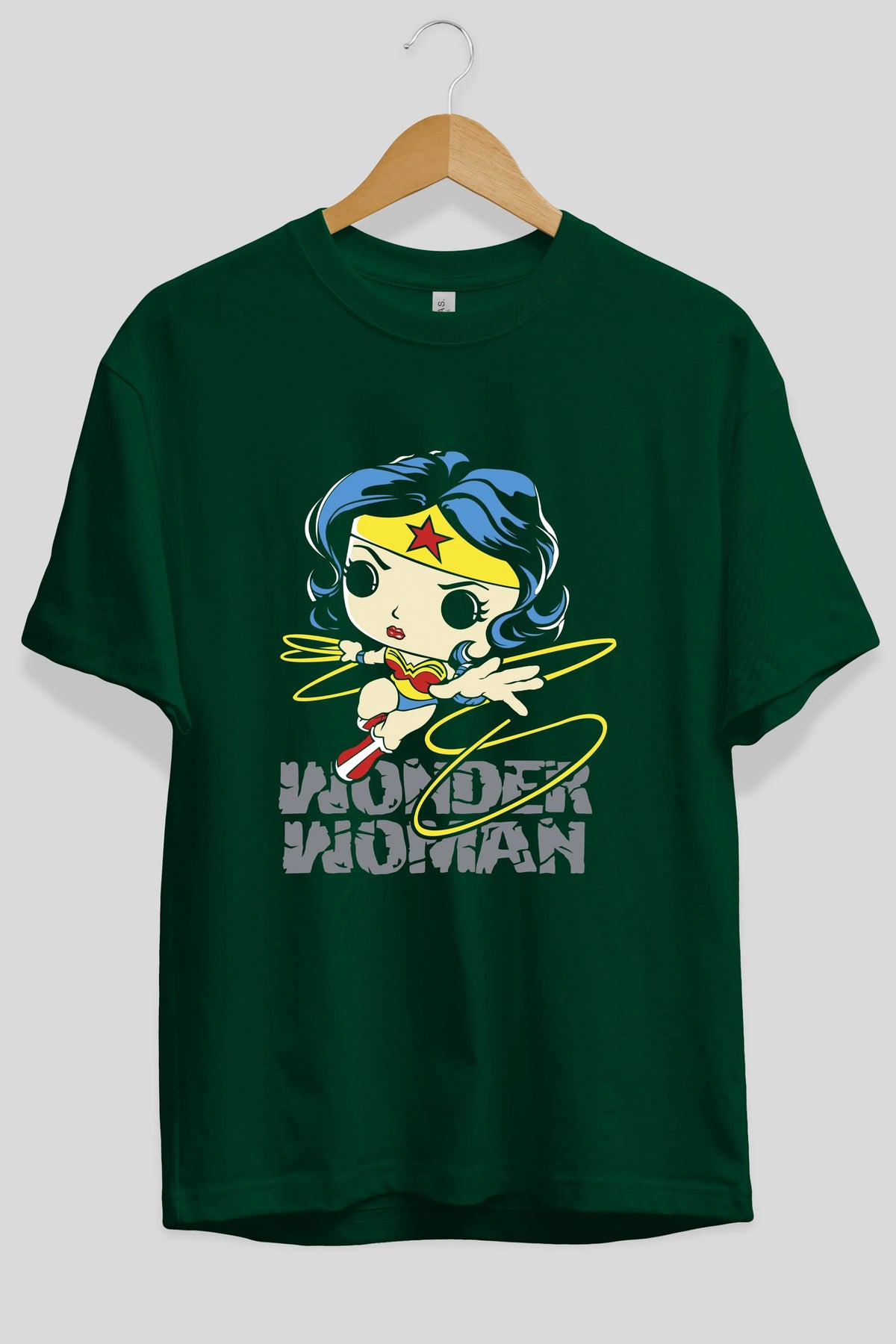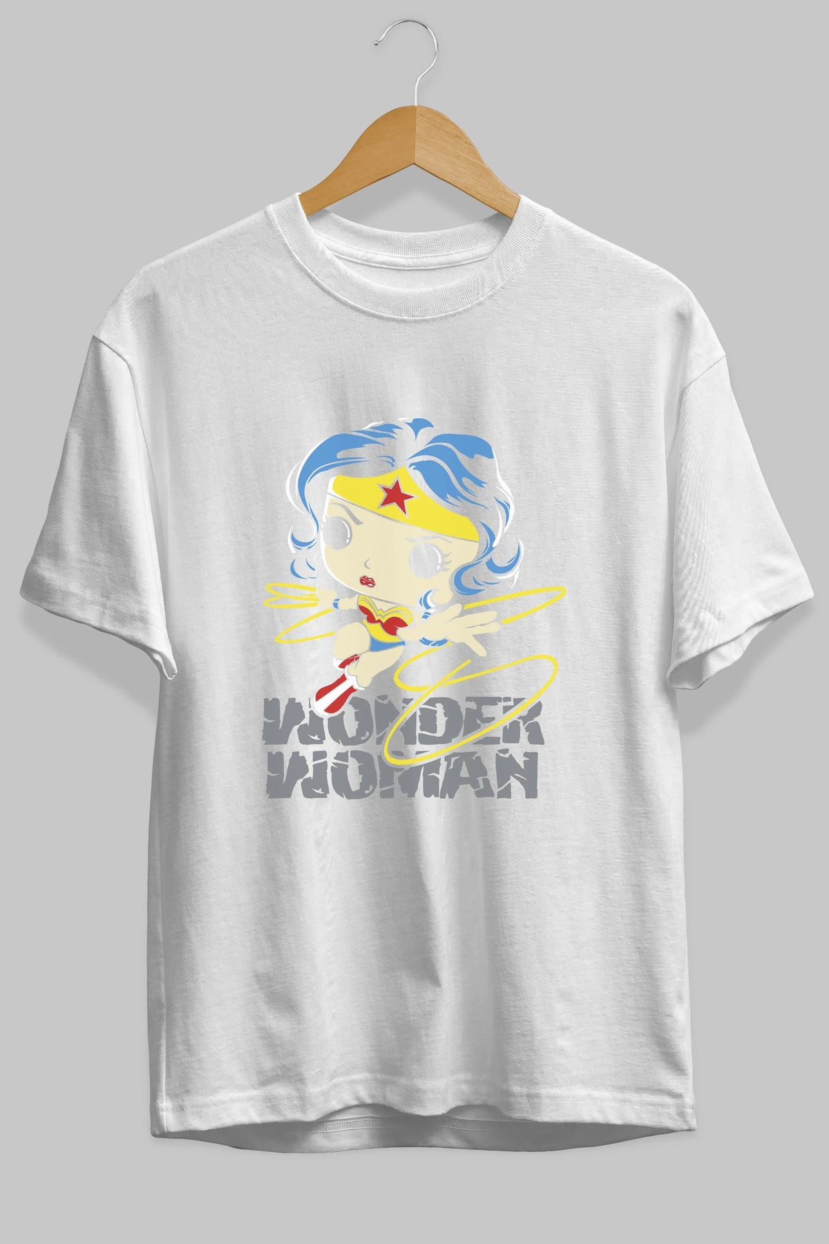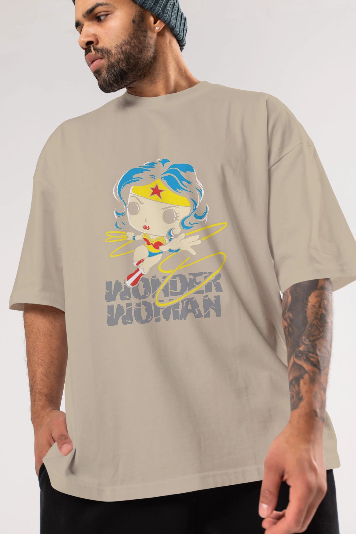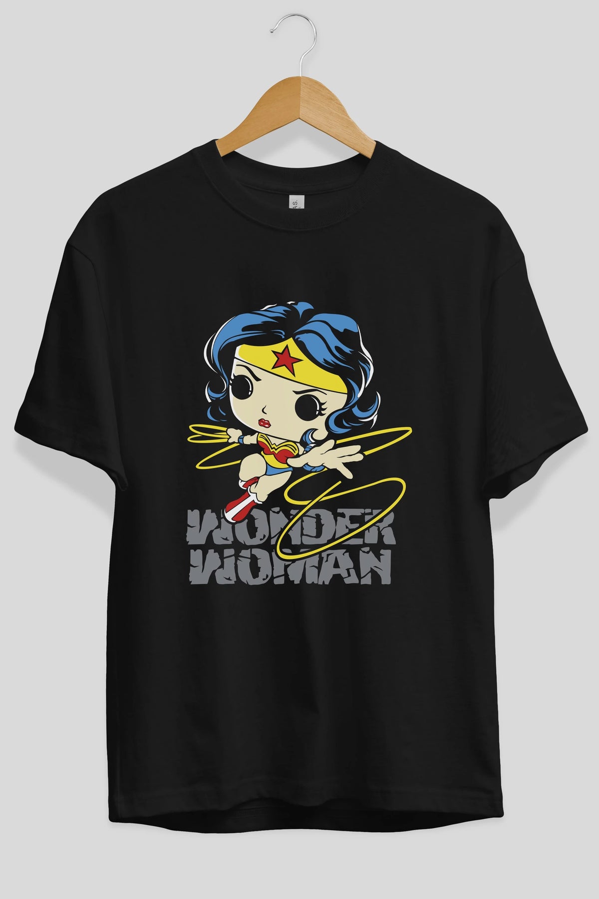 Wonder Woman Ön Baskılı Oversize t-shirt Erkek Kadın Unisex %100 Pamuk Bisiklet Yaka tişort