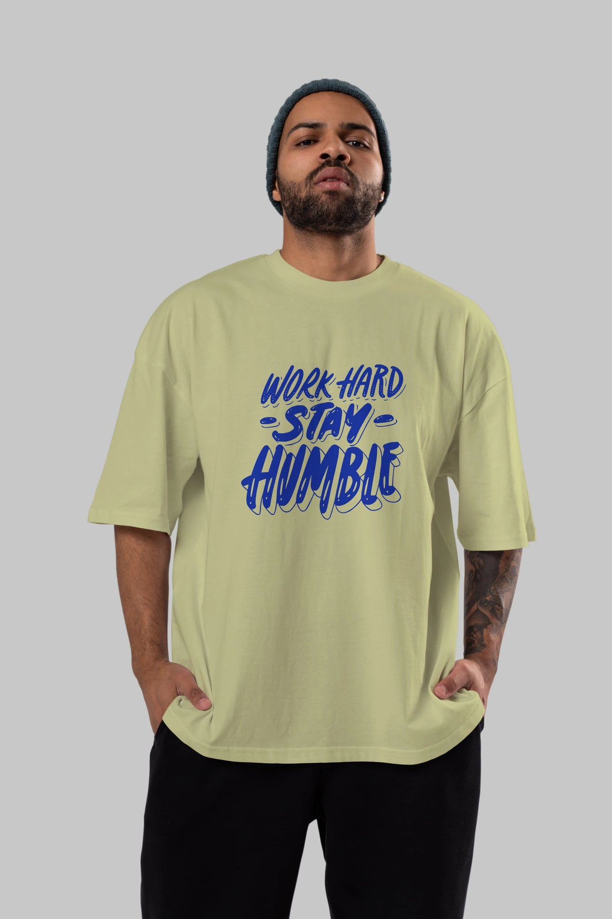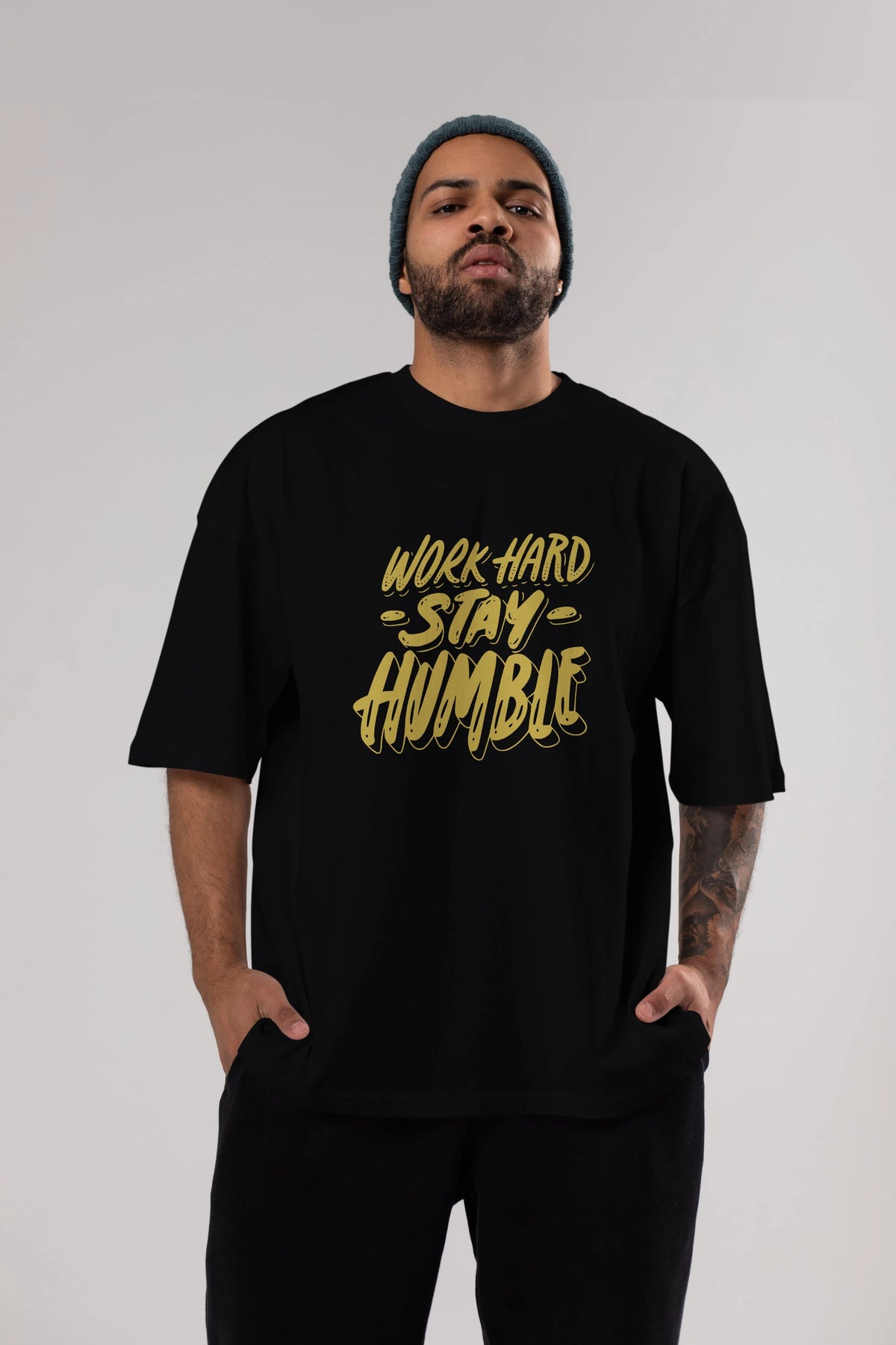 Word Hard Yazılı Ön Baskılı Oversize t-shirt Erkek Kadın Unisex