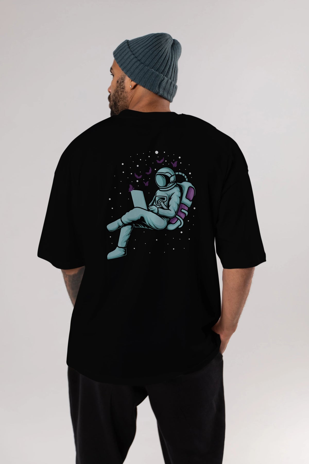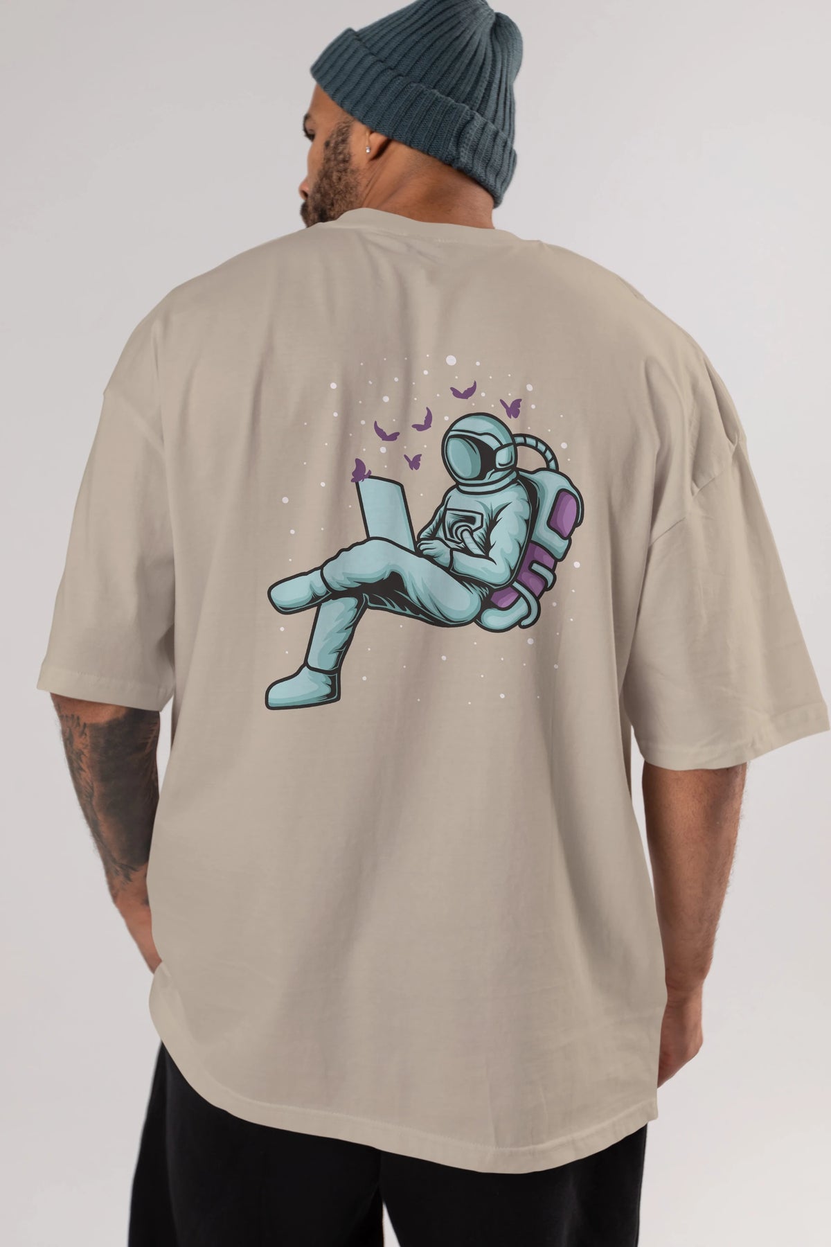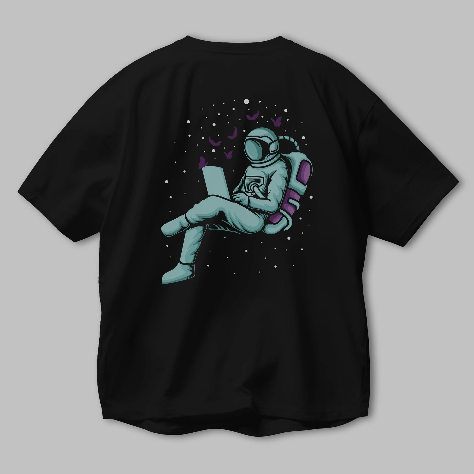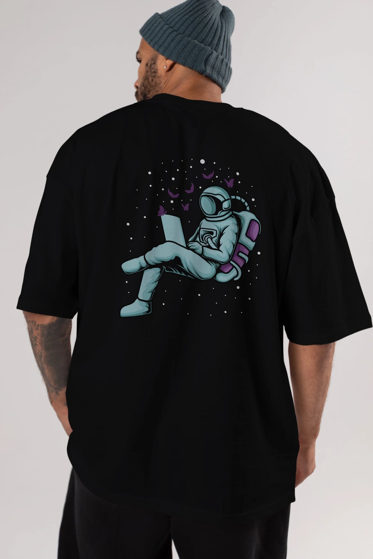 Work with Butterflies in Space Arka Baskılı Oversize t-shirt Erkek Kadın Unisex