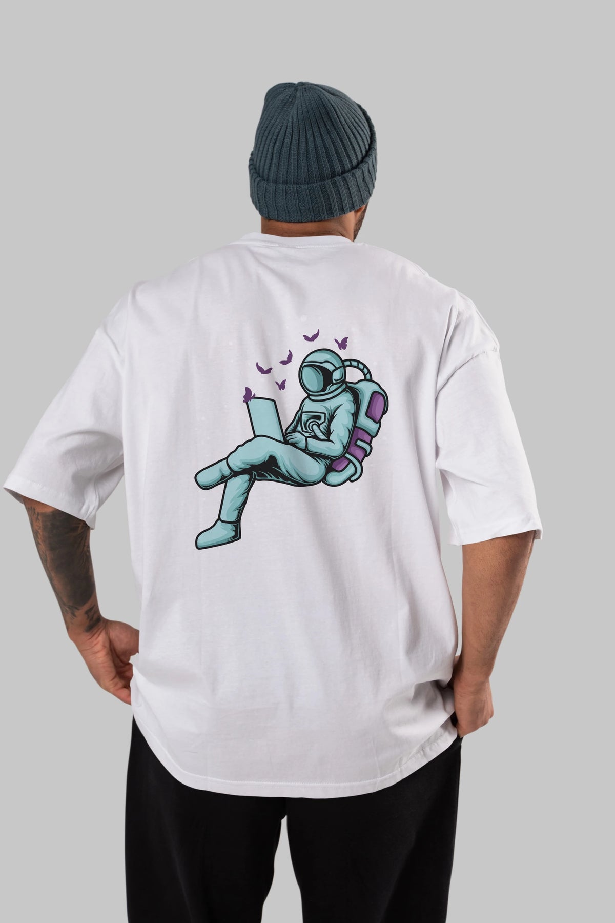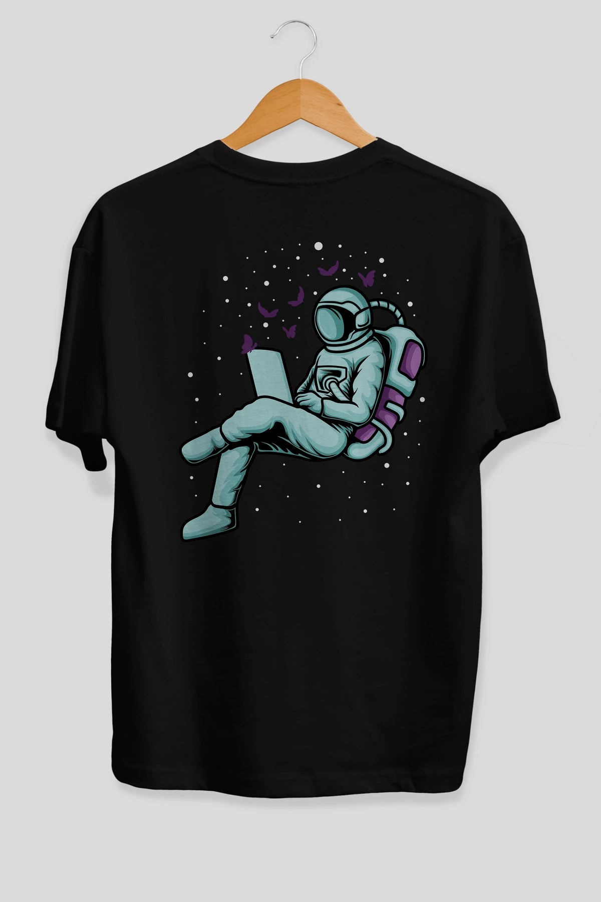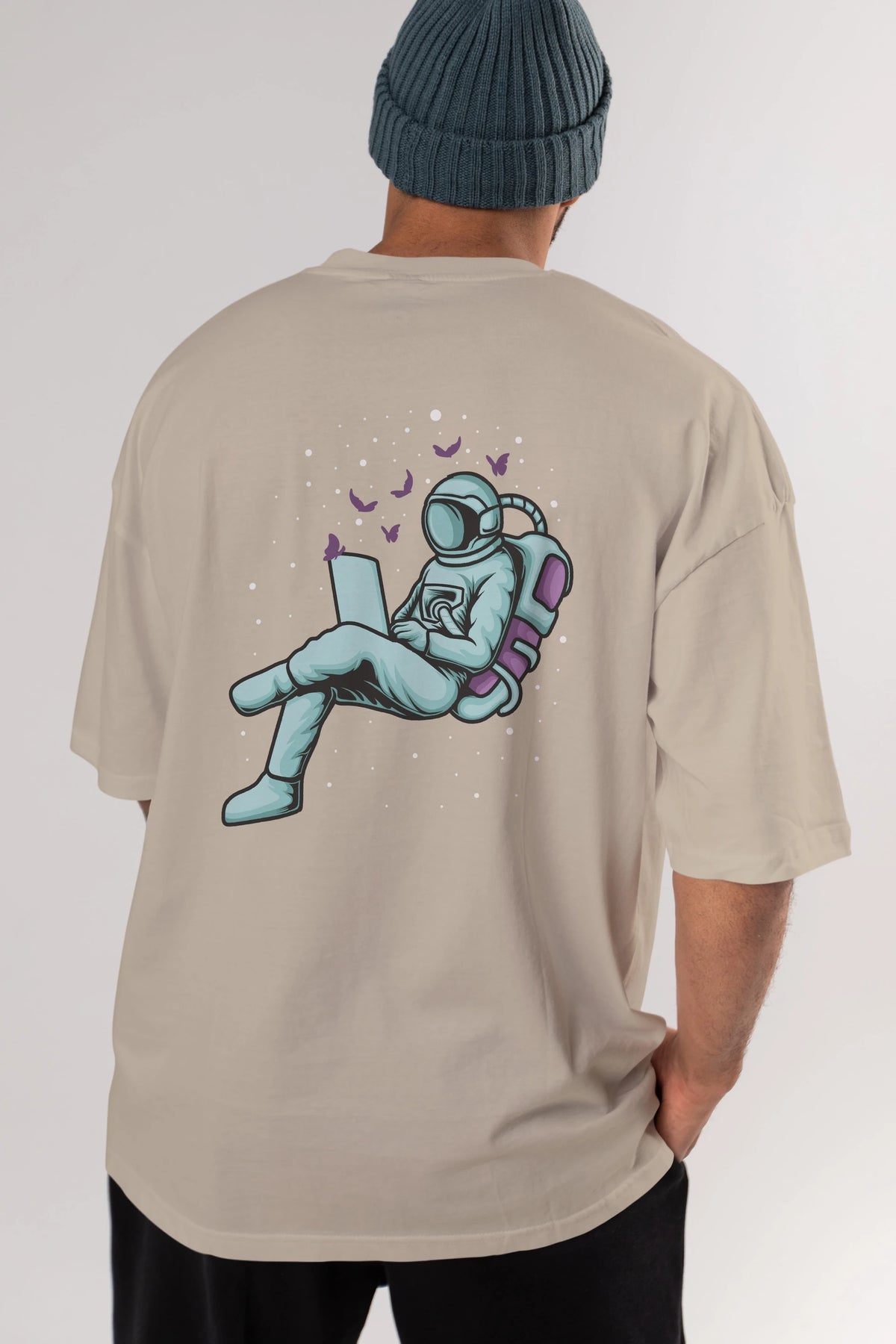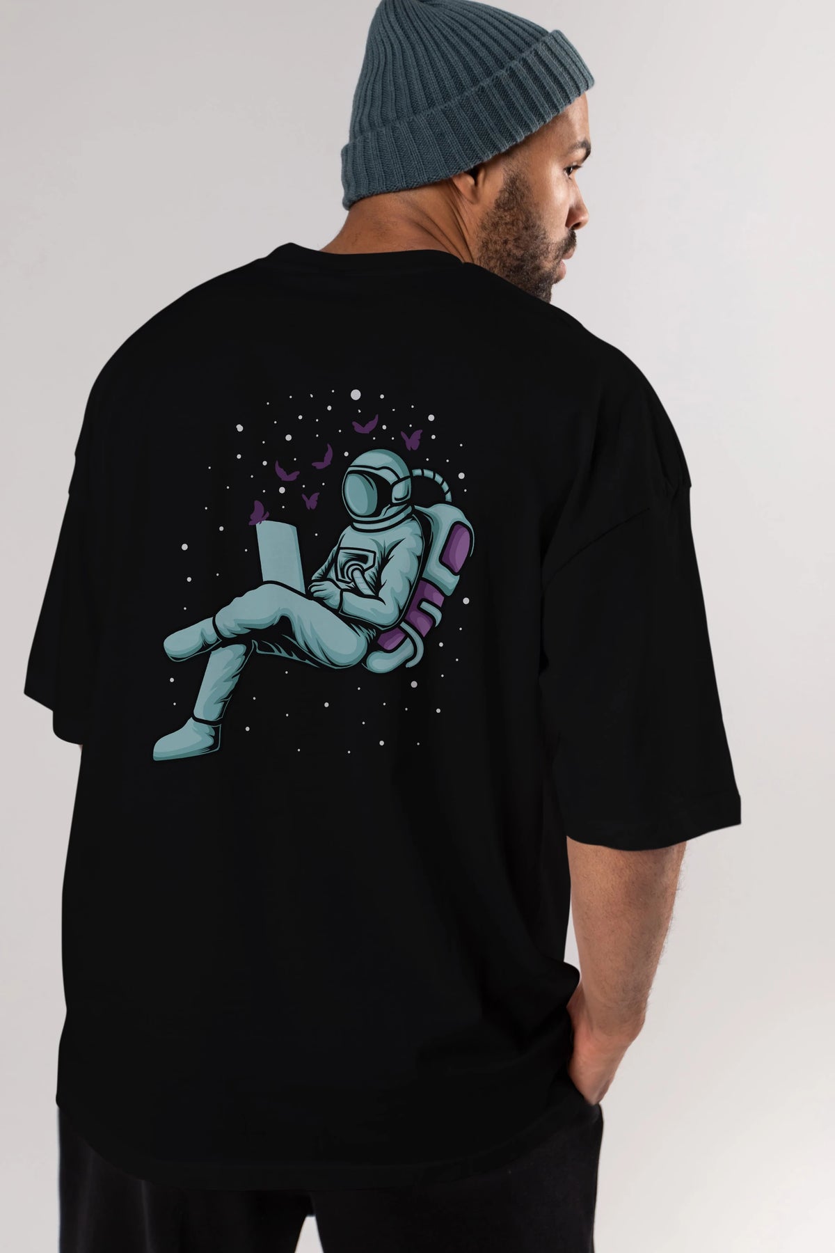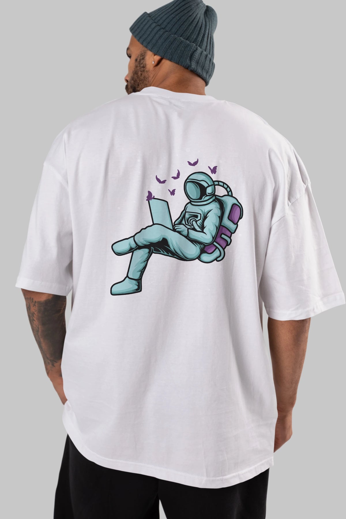 Work with Butterflies in Space Arka Baskılı Oversize t-shirt Erkek Kadın Unisex
