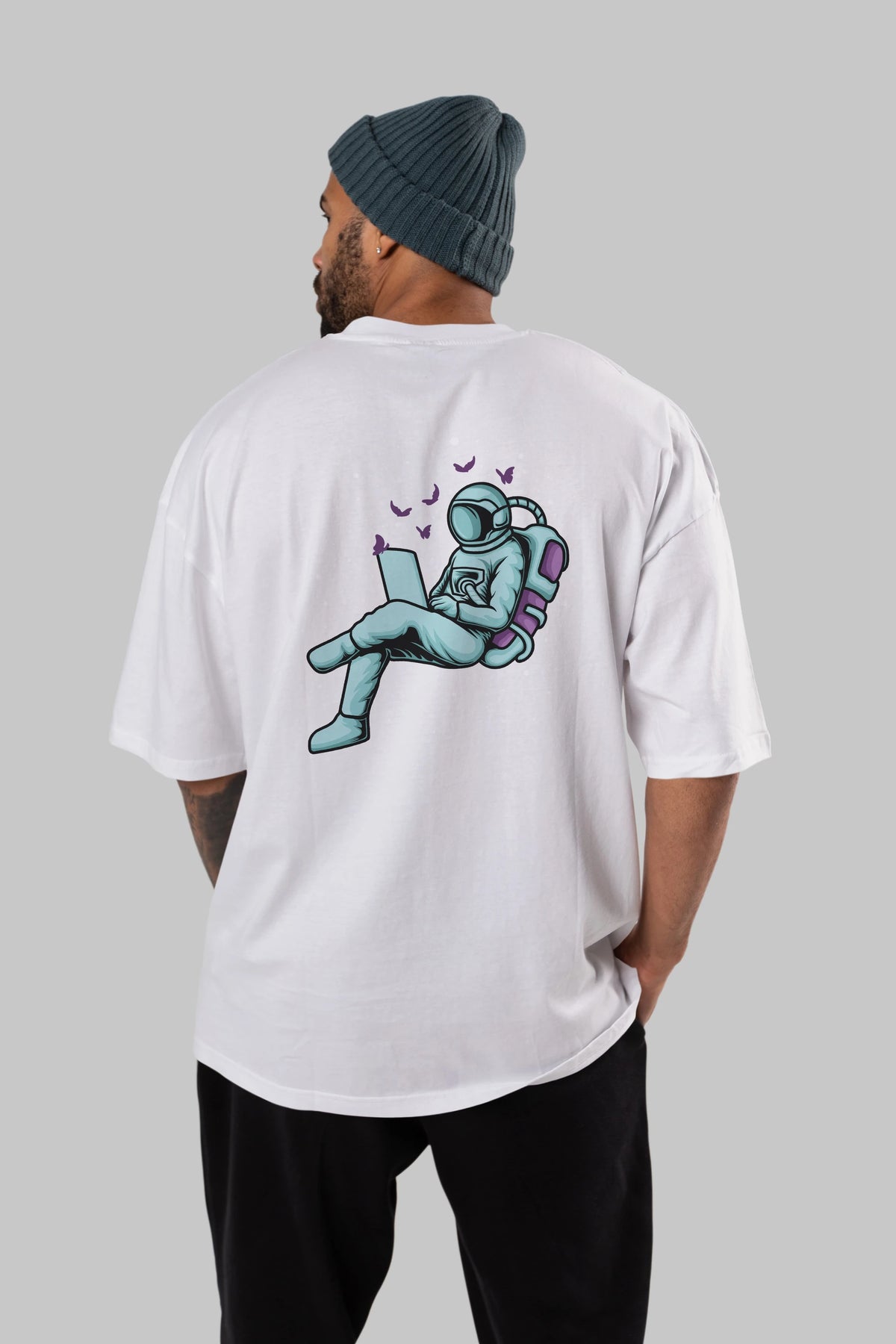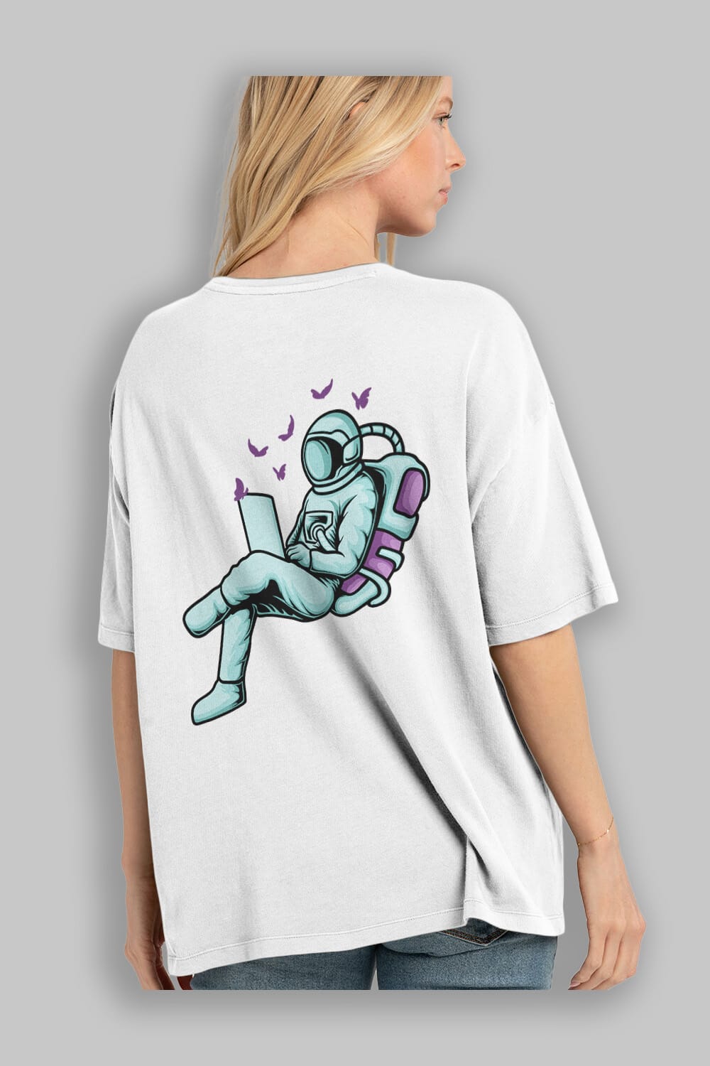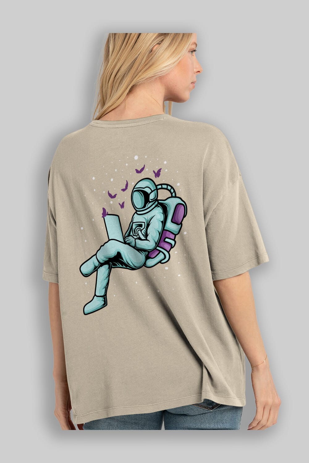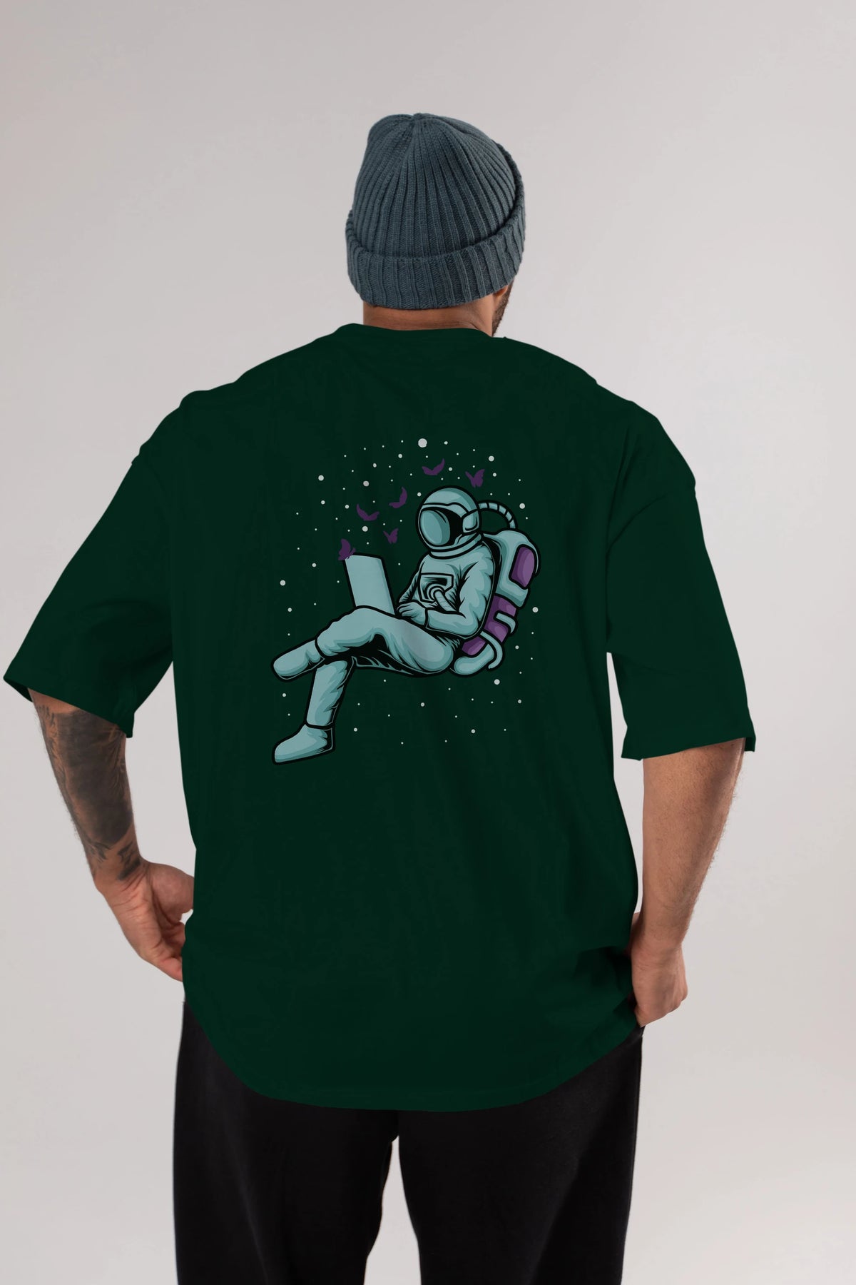 Work with Butterflies in Space Arka Baskılı Oversize t-shirt Erkek Kadın Unisex