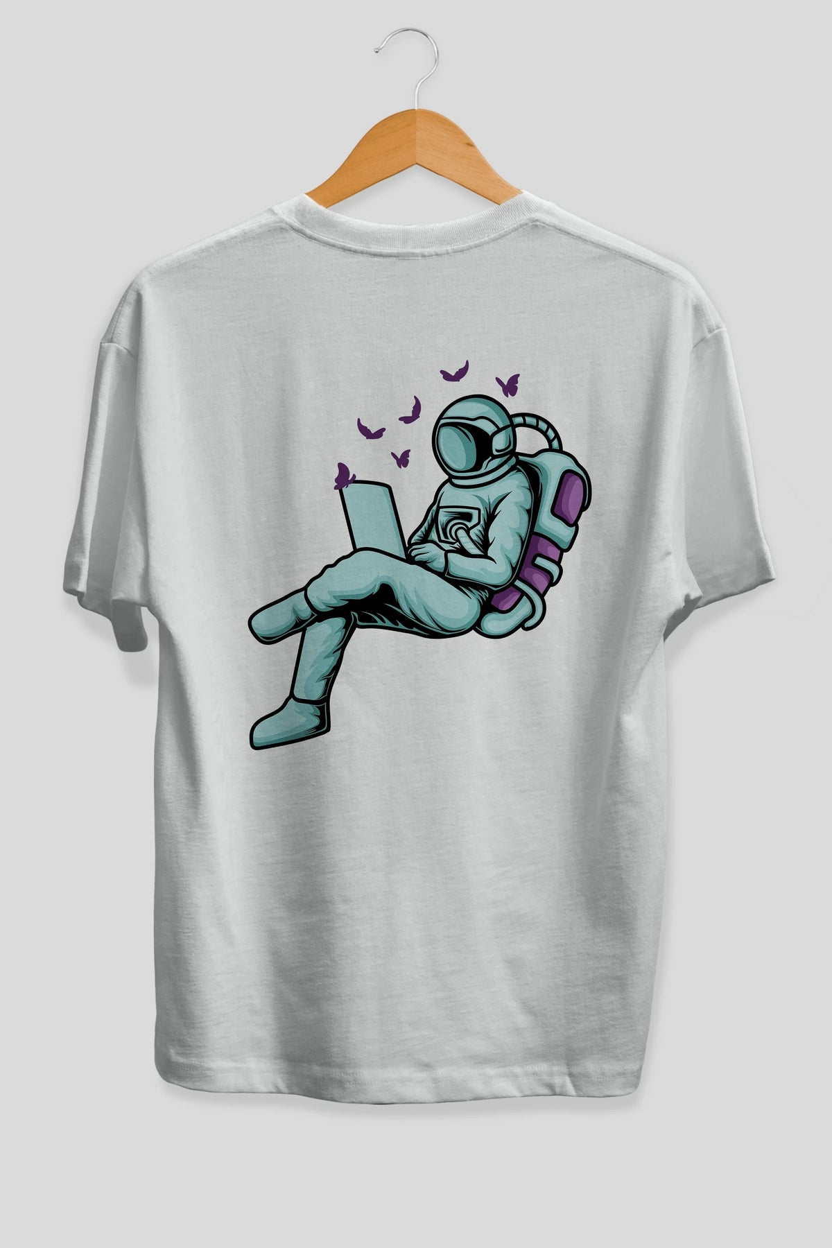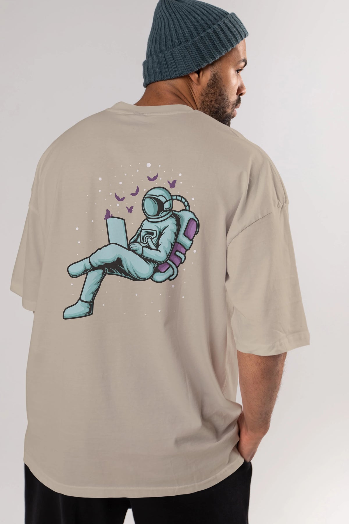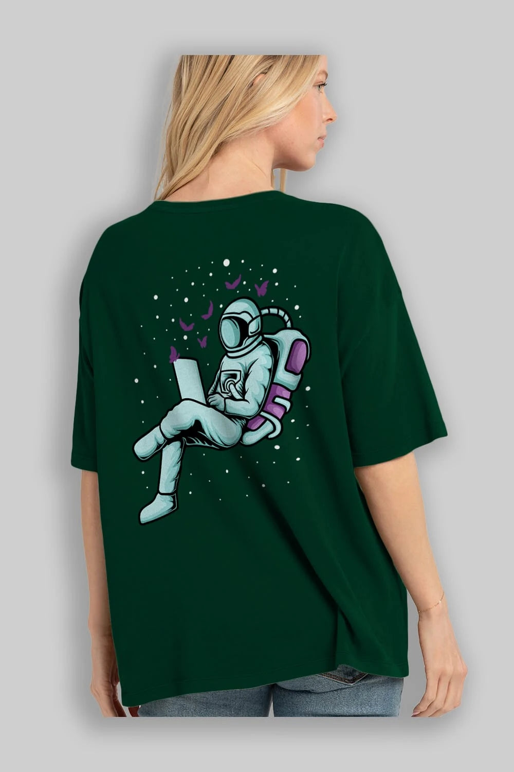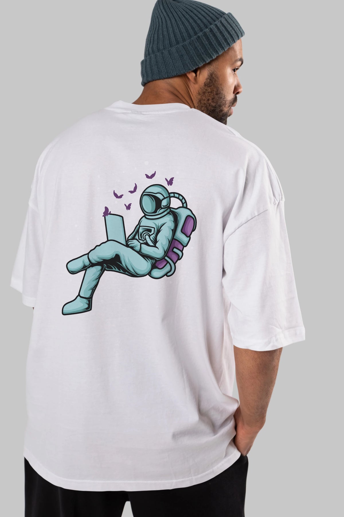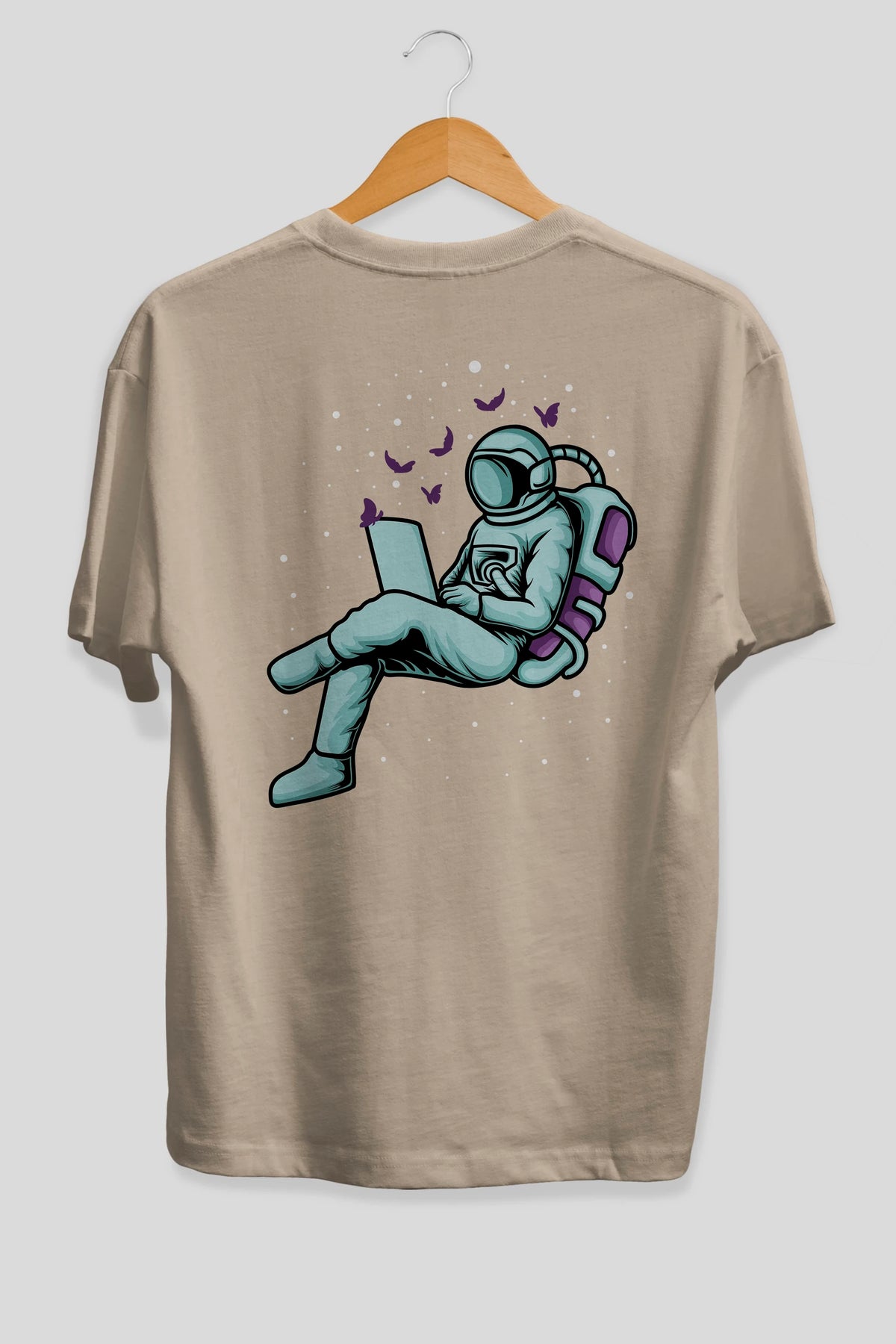 Work with Butterflies in Space Arka Baskılı Oversize t-shirt Erkek Kadın Unisex