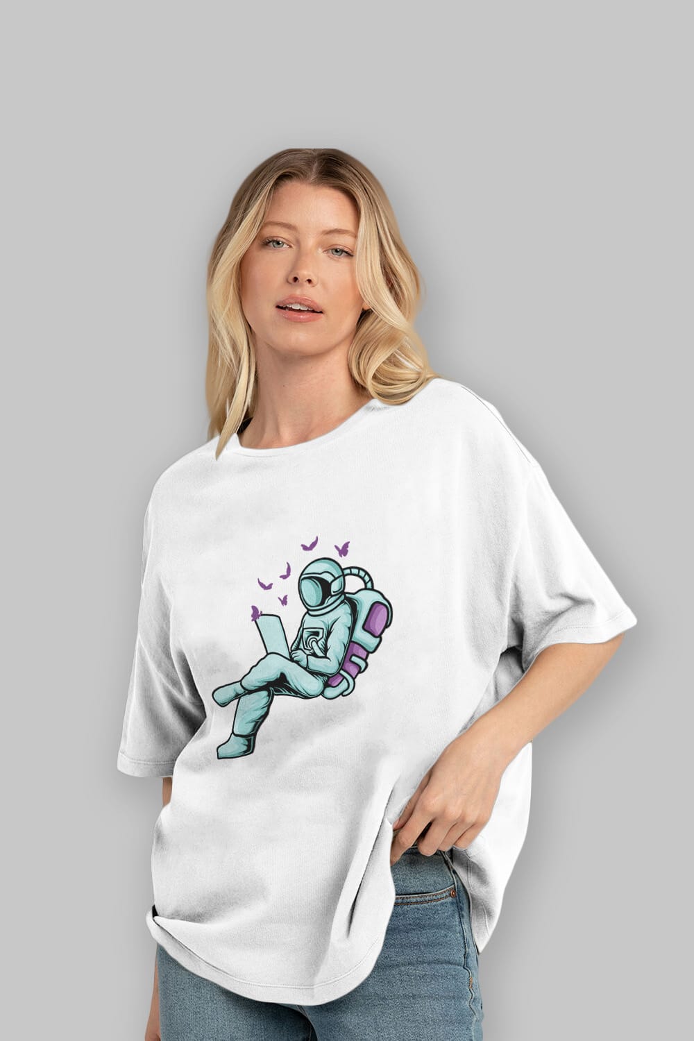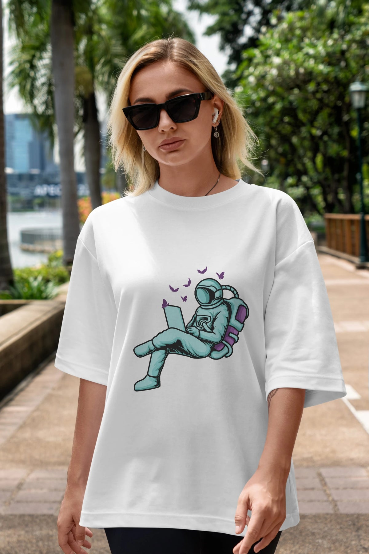 Work with Butterflies in Space Ön Baskılı Oversize t-shirt Erkek Kadın Unisex
