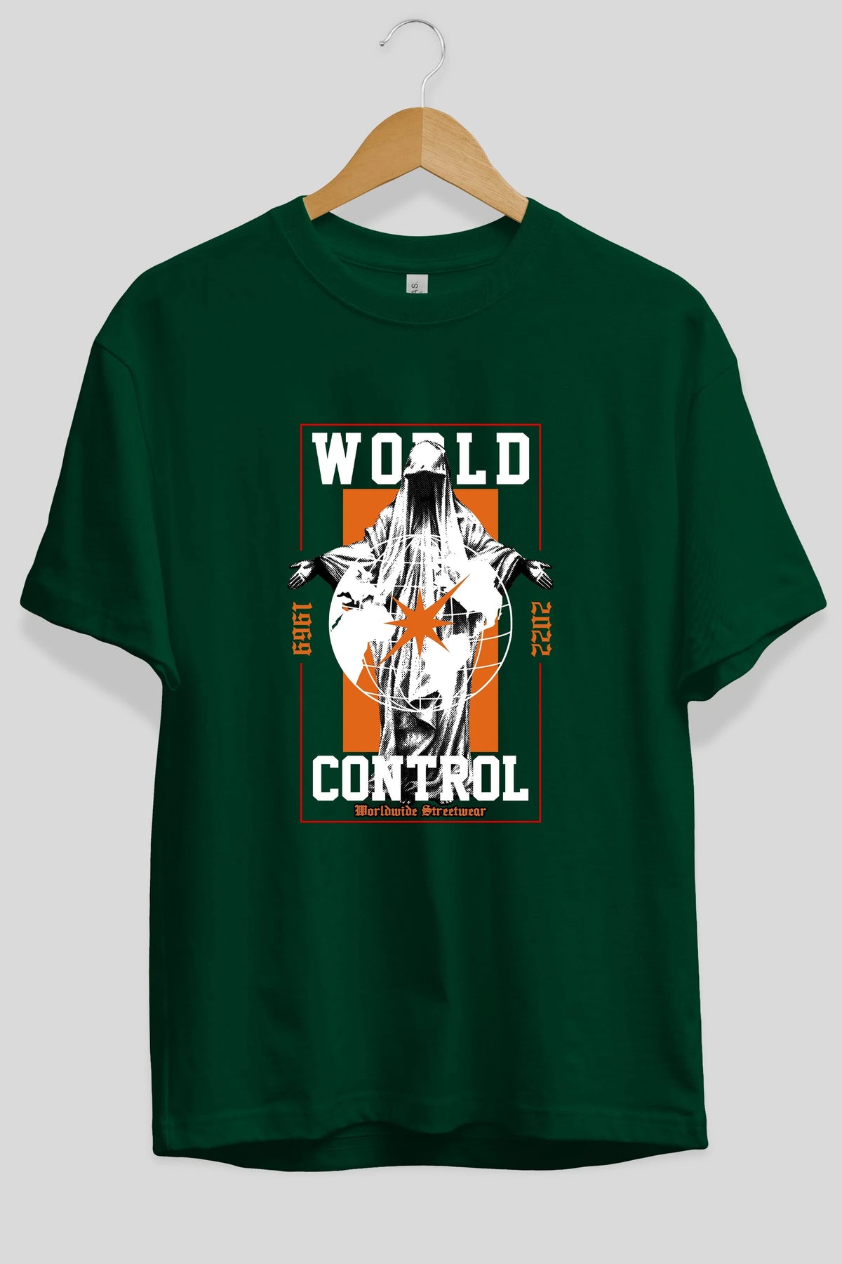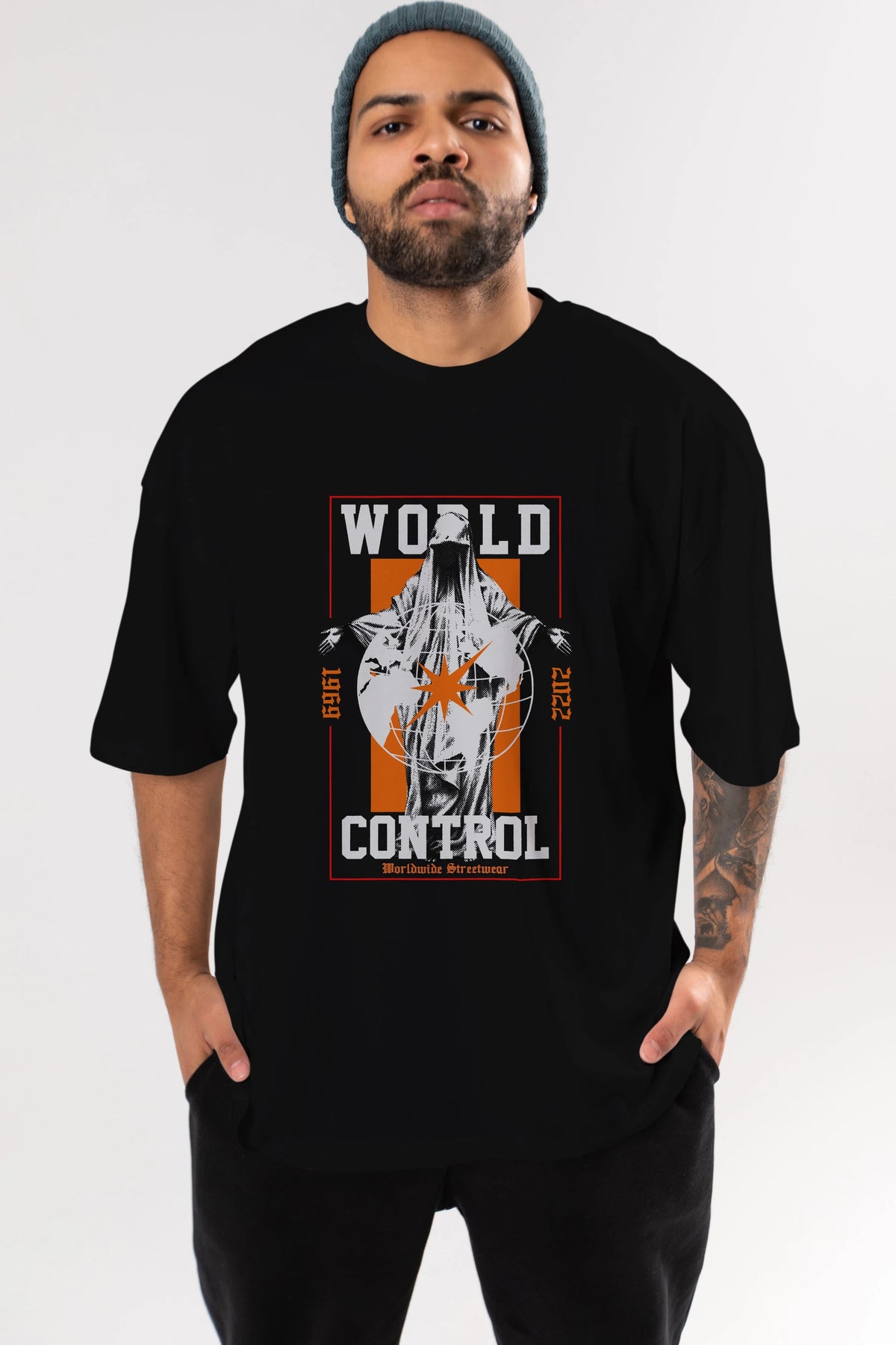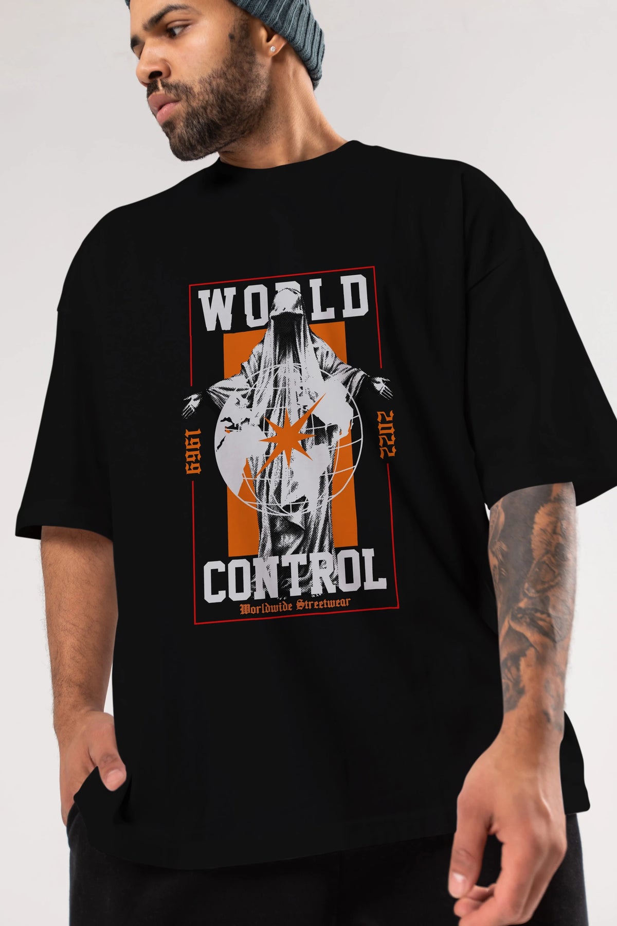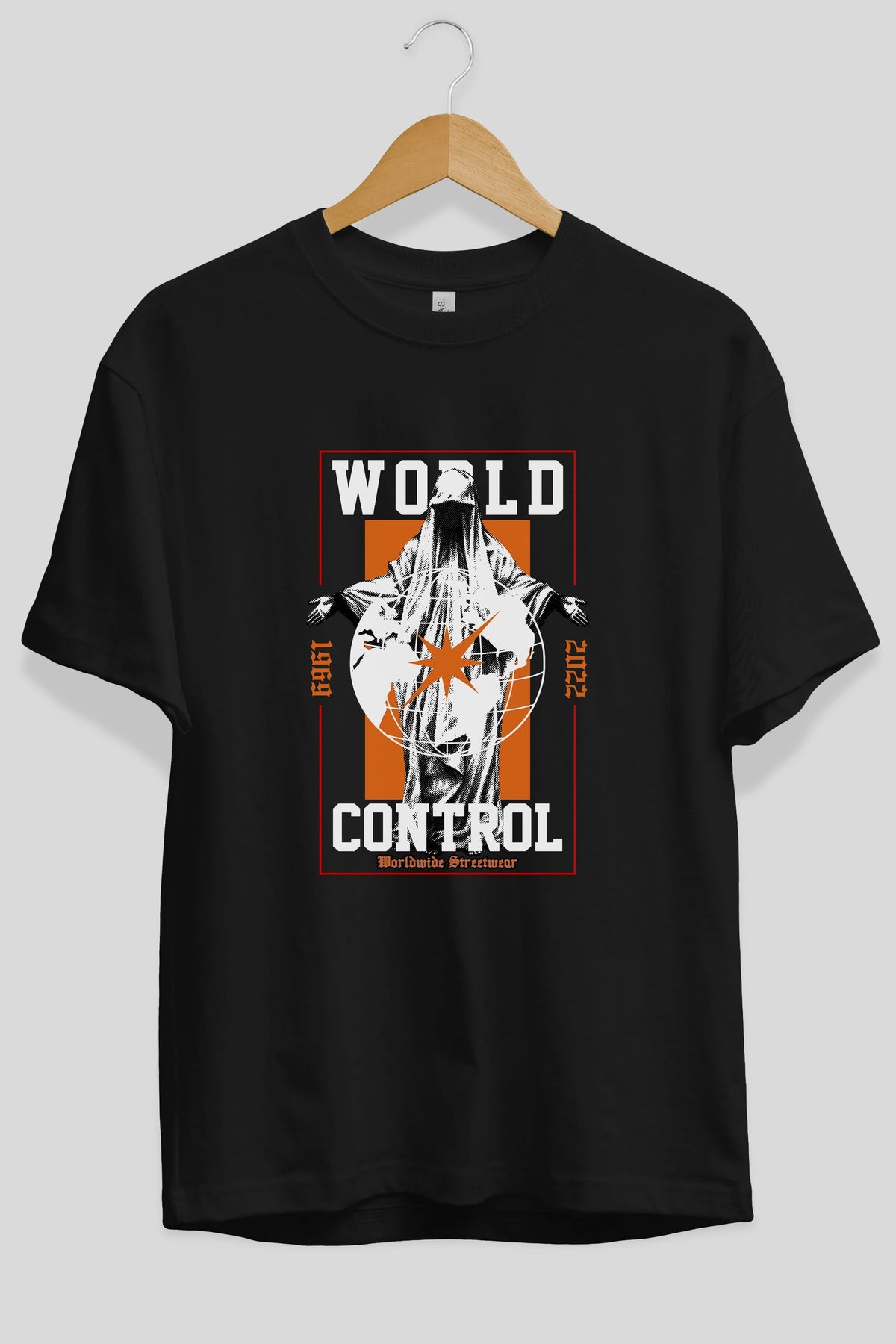 World Control Ön Baskılı Oversize t-shirt Erkek Kadın Unisex