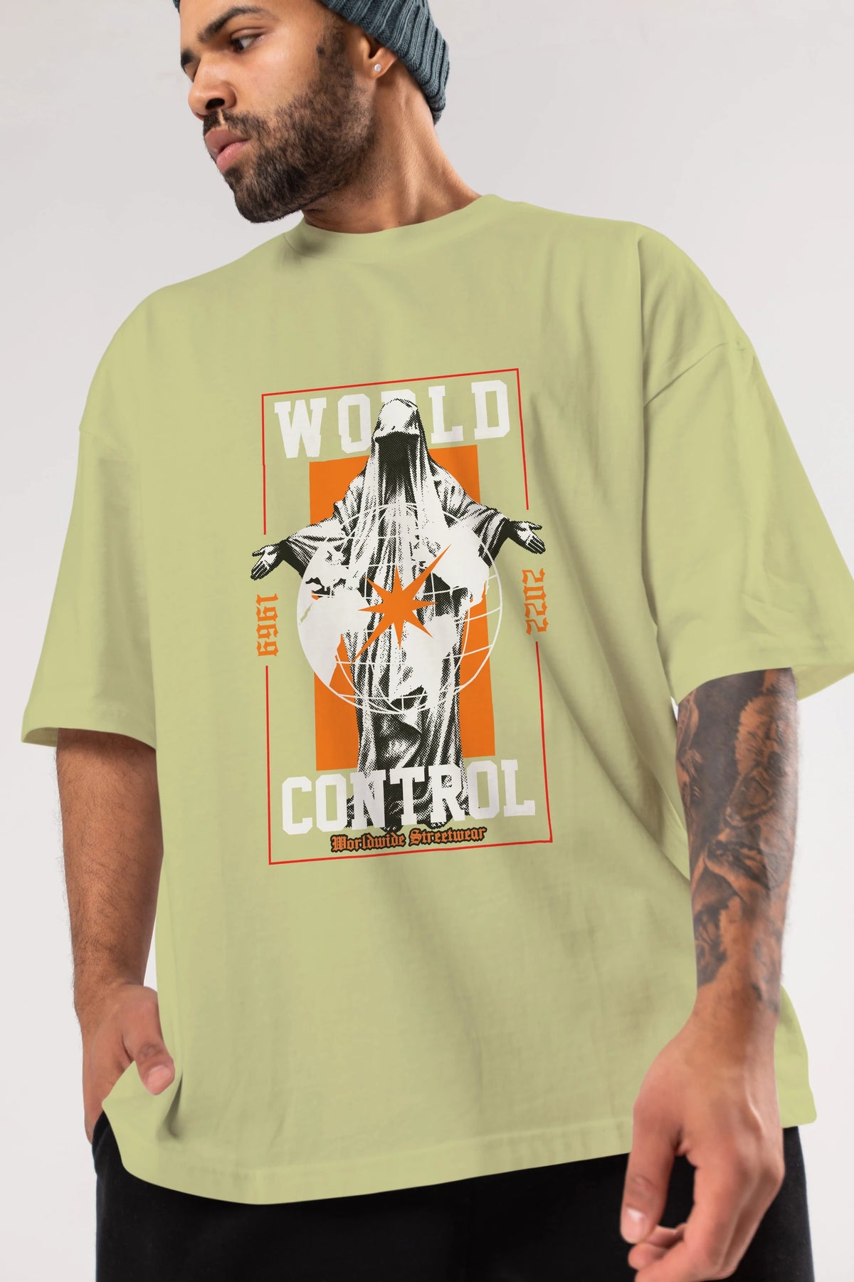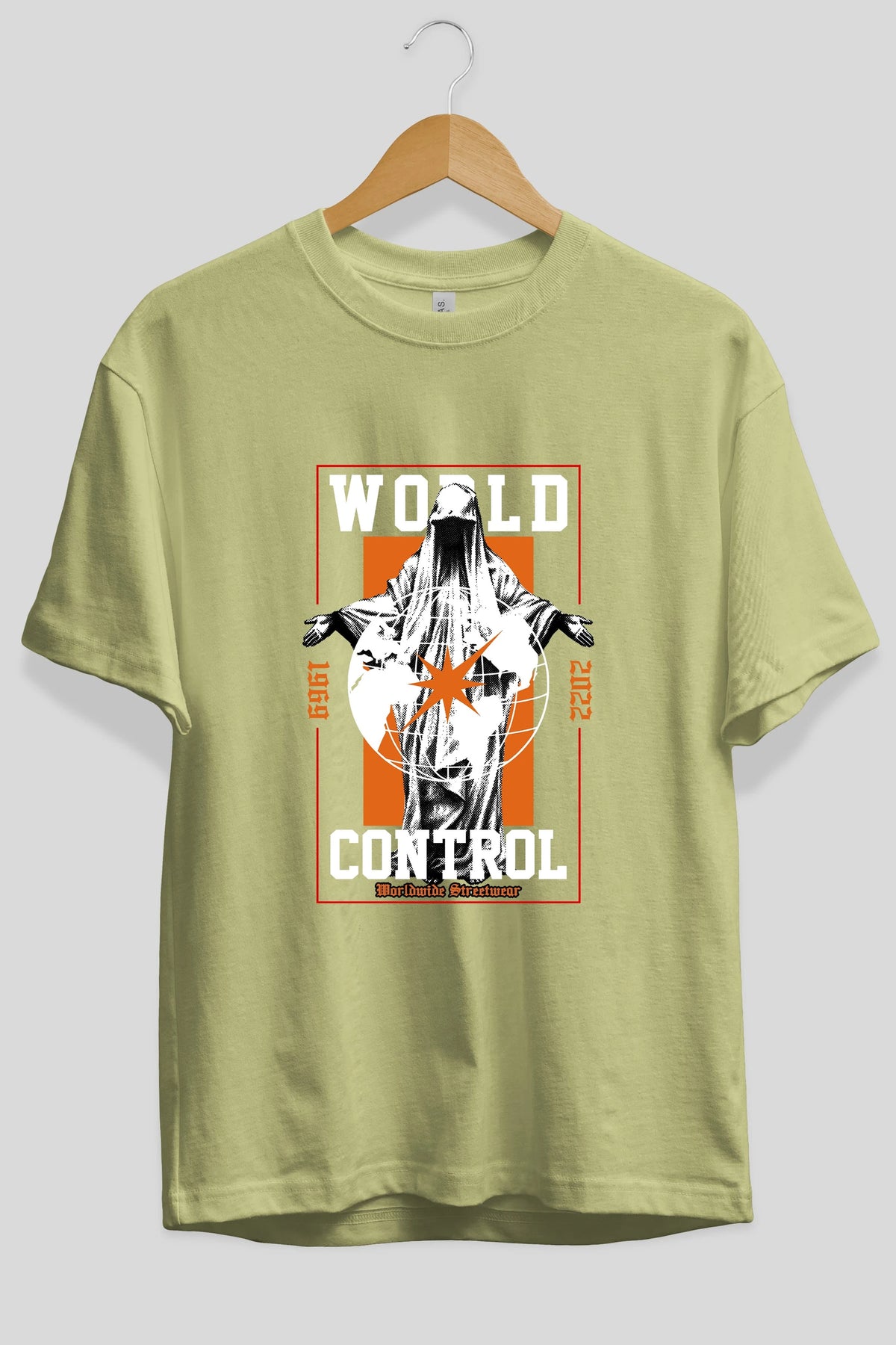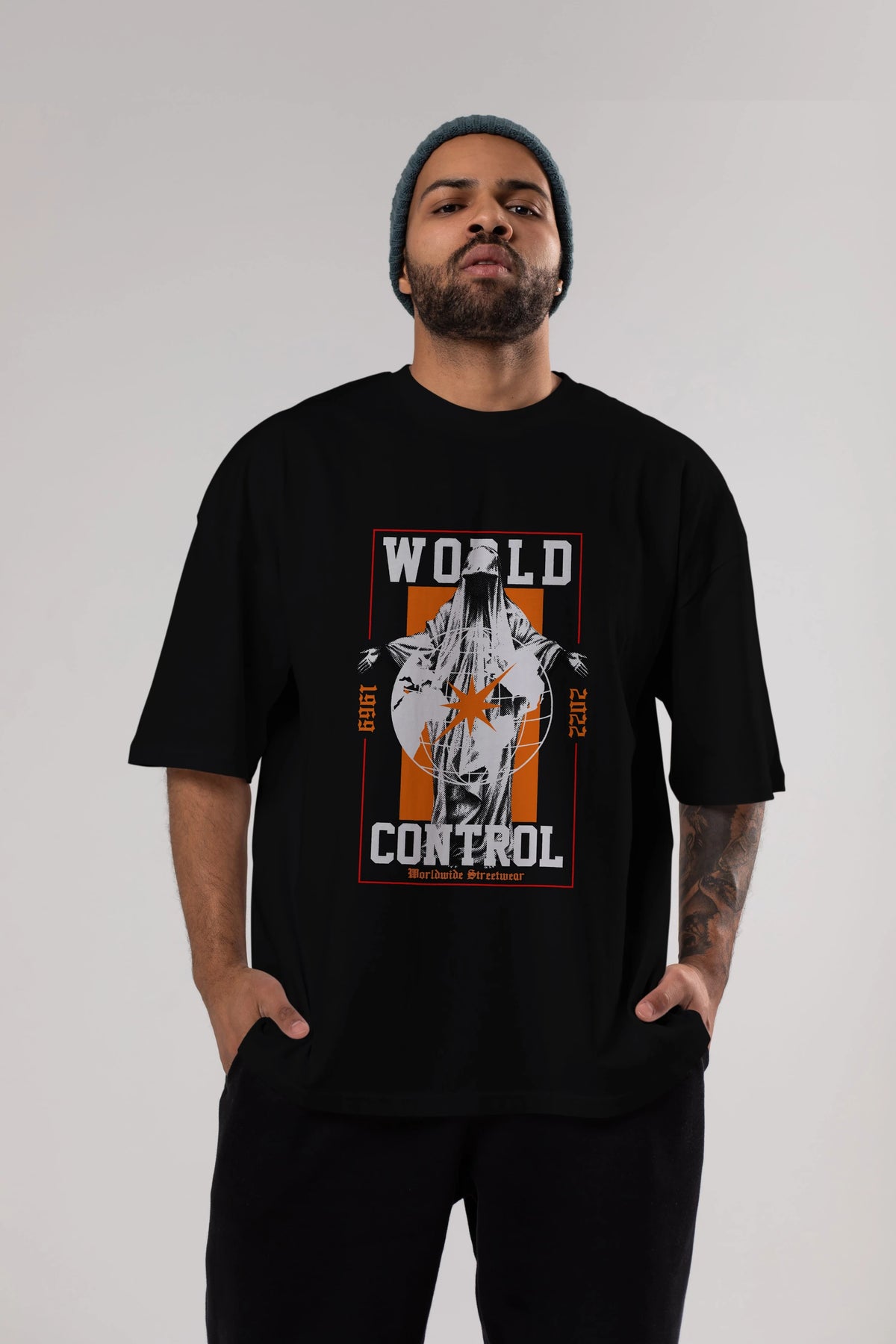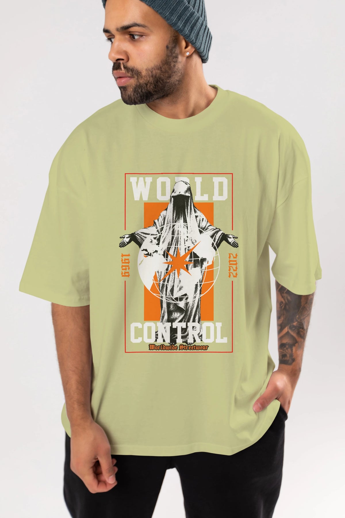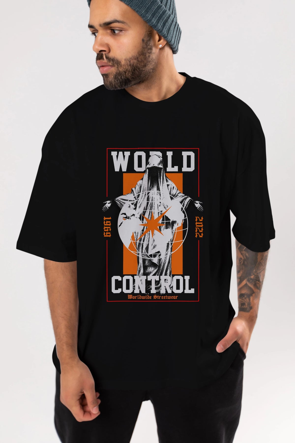 World Control Ön Baskılı Oversize t-shirt Erkek Kadın Unisex